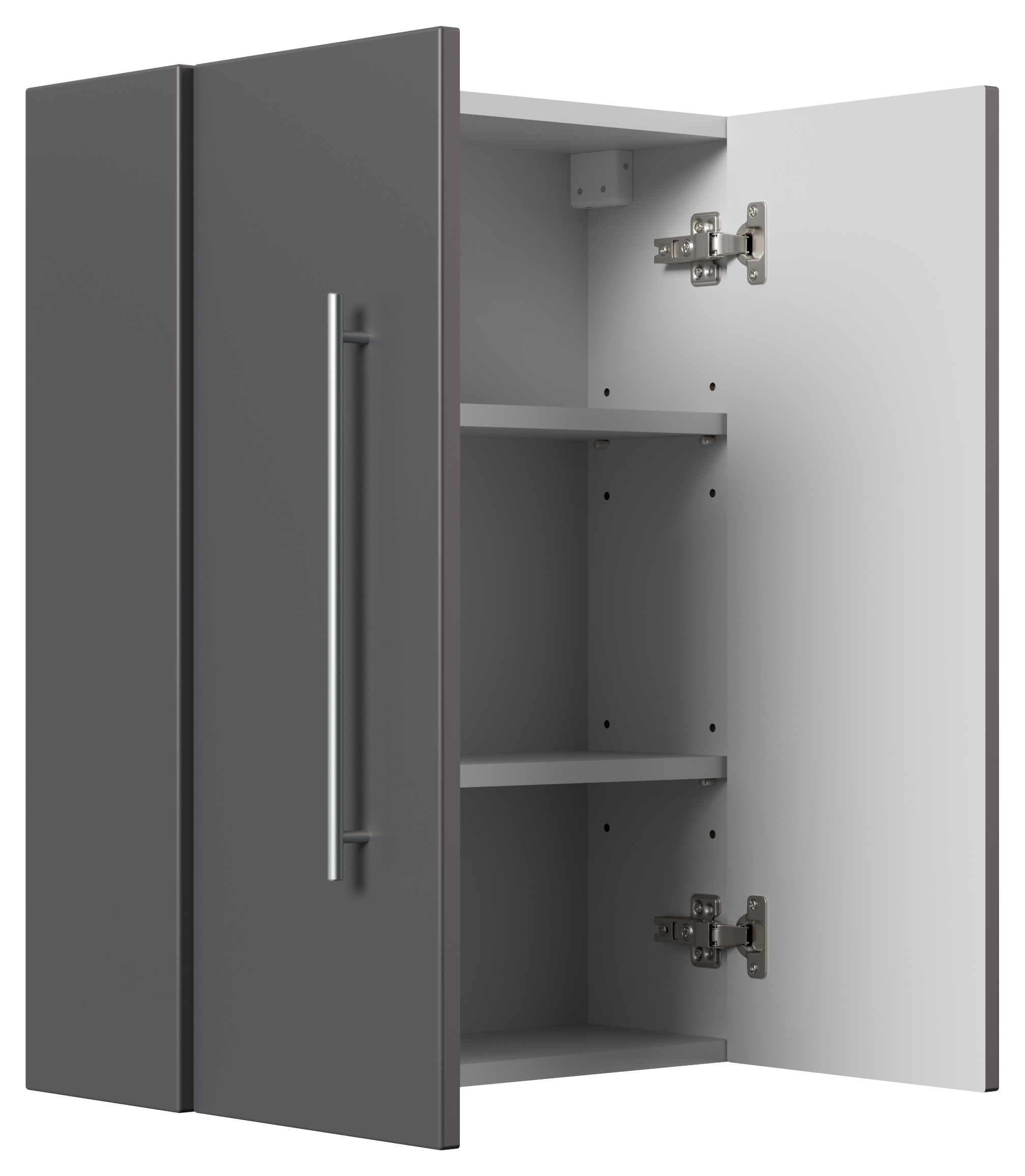 Badschrank mit Softclose-Tür/en, Regalböden, Edelstahl-Griffe.Montage-Empfehlung: