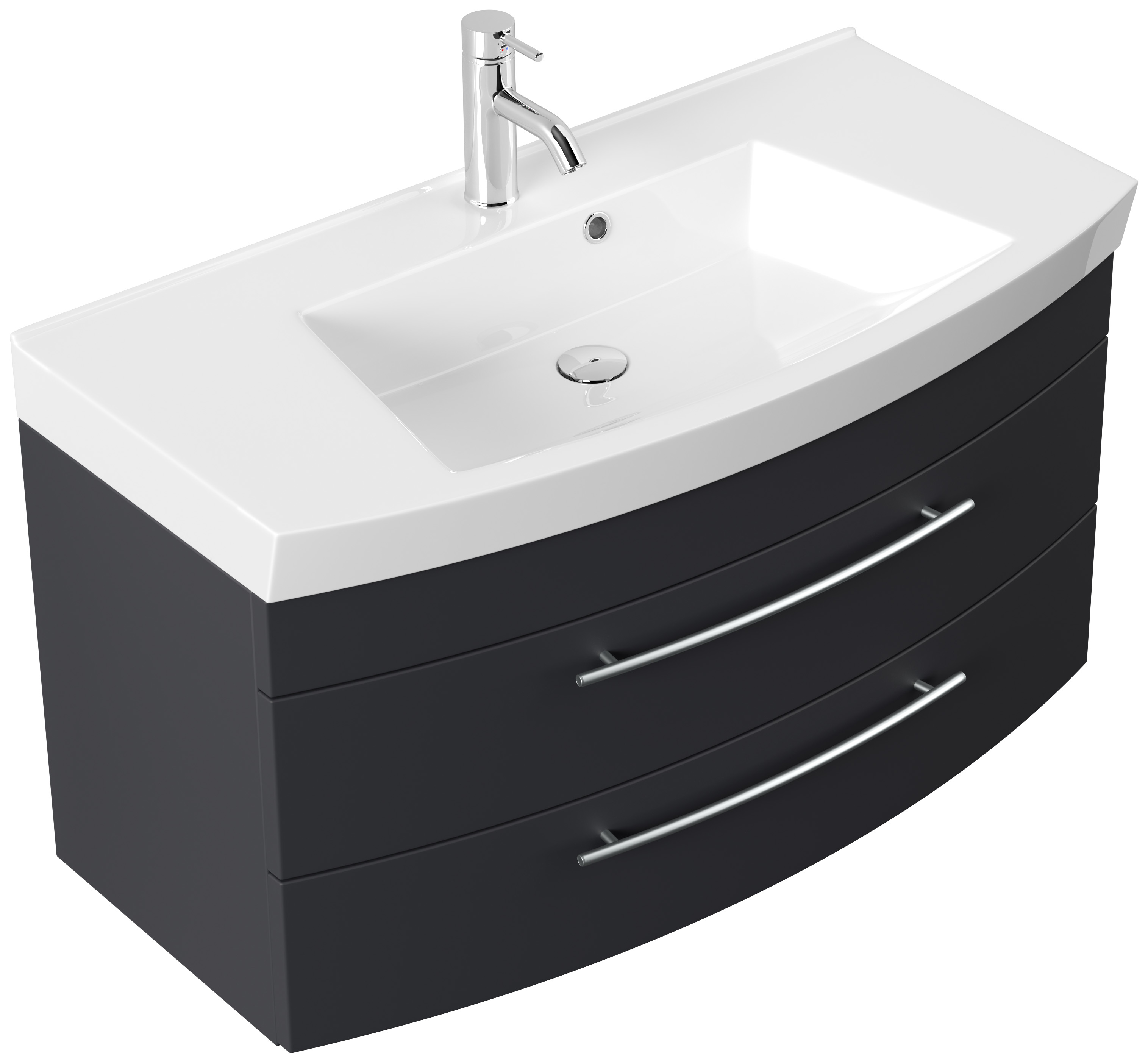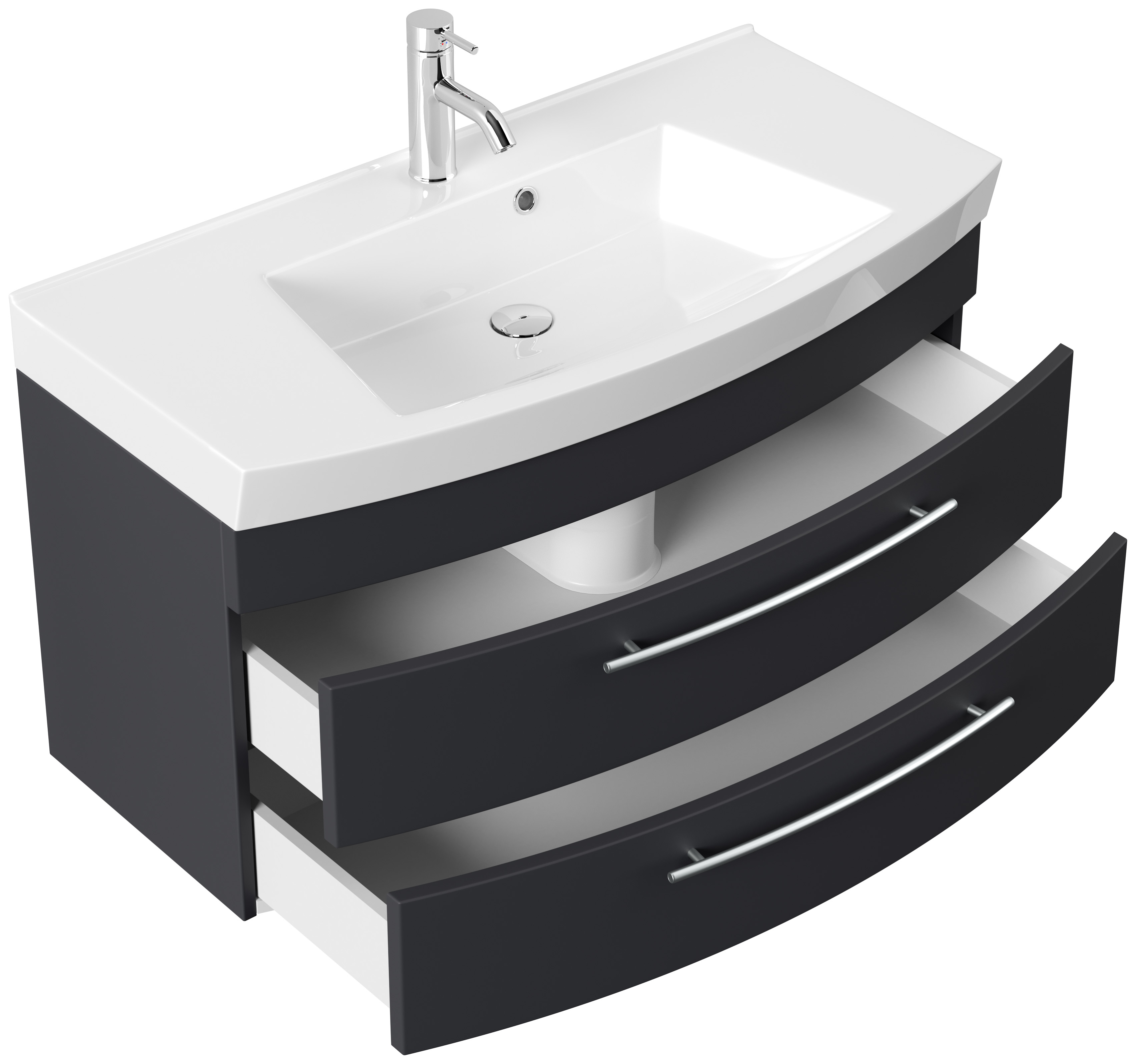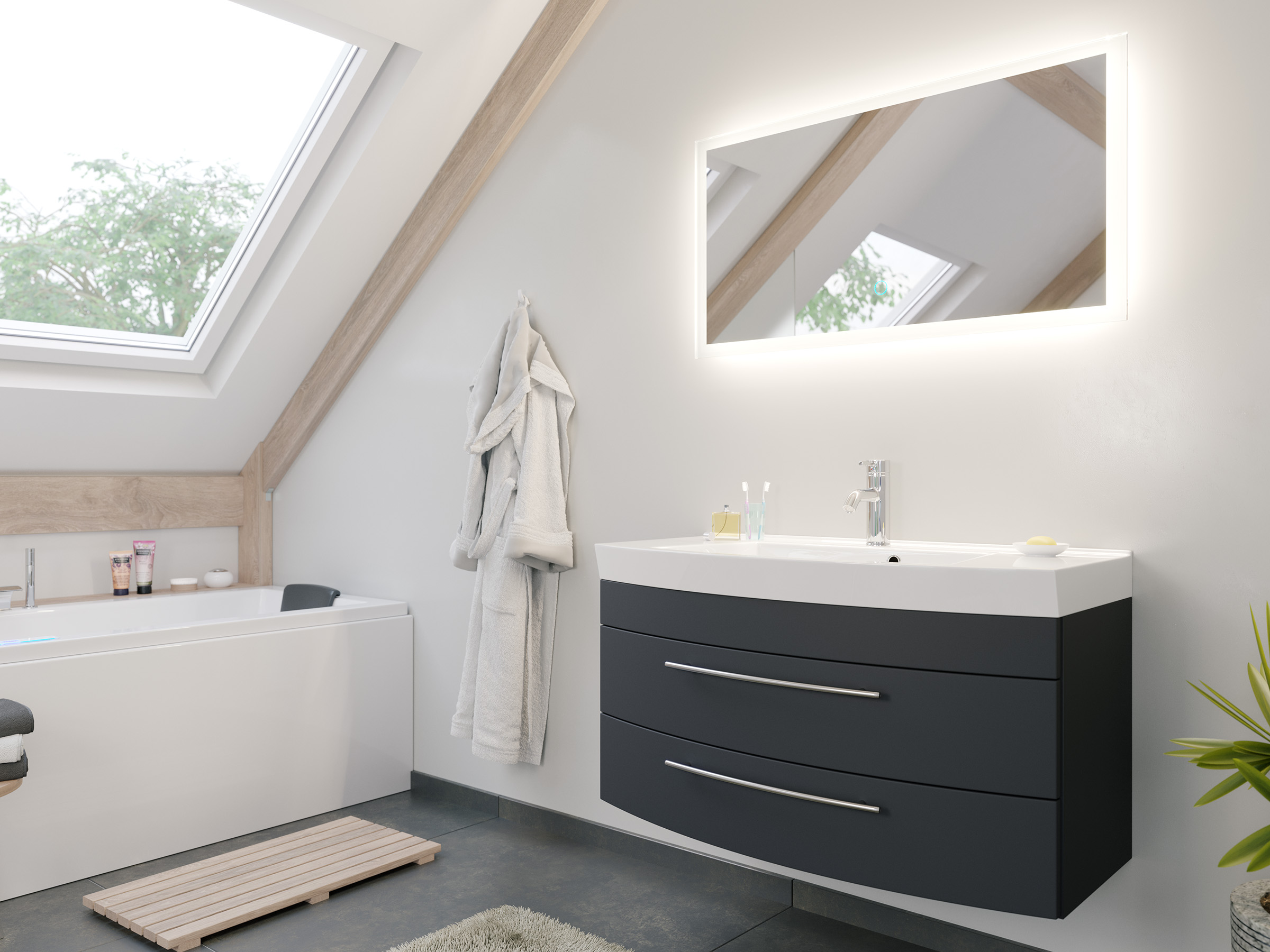 Badmöbel Bella 100 mit runder Front SoftClose lackiert grafit matt LED Spiegel
