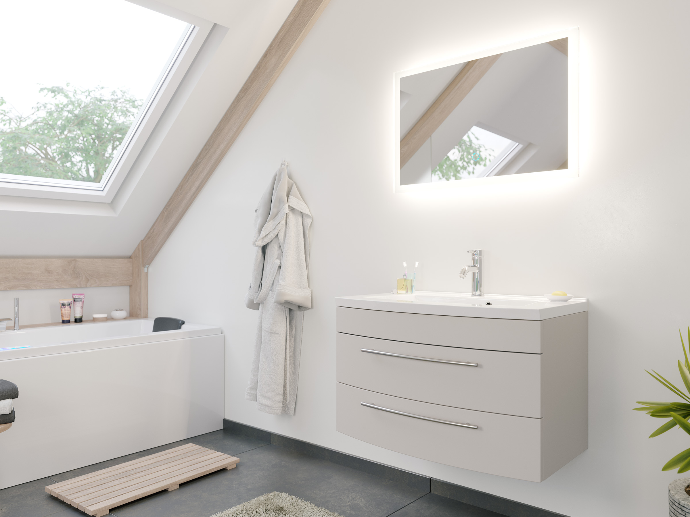 Badmöbel Bella 80 mit runder Front SoftClose lackiert kaschmir matt LED Spiegel