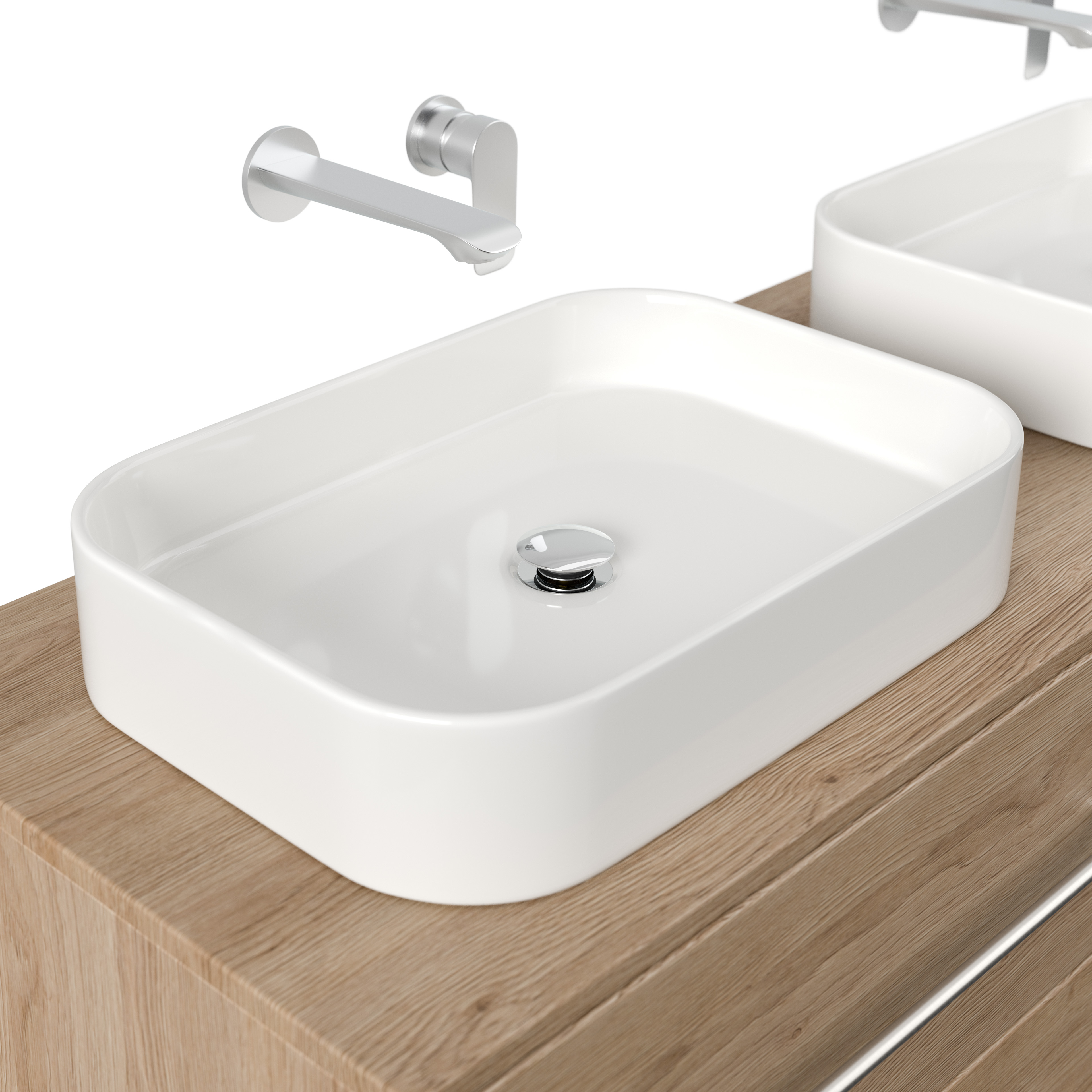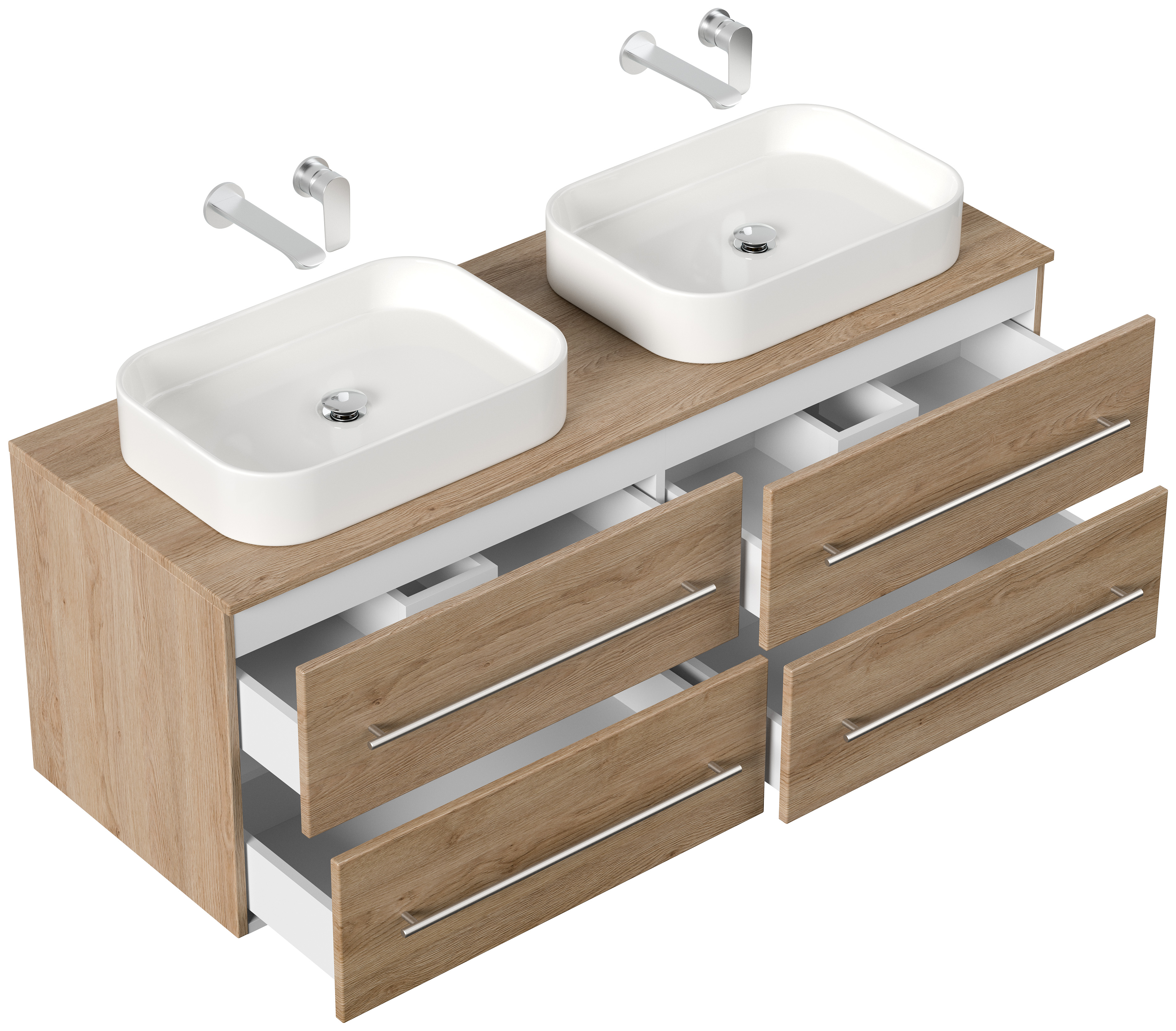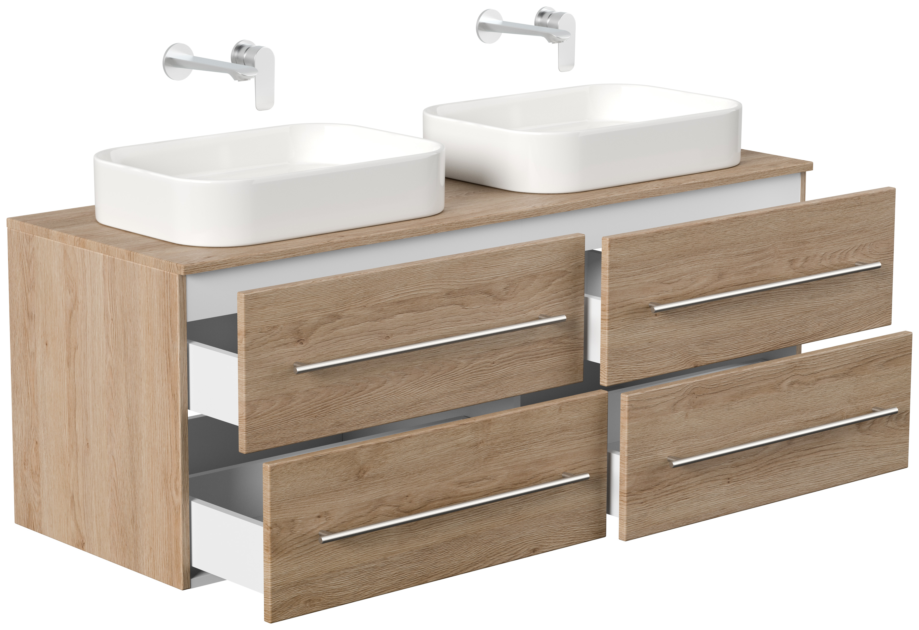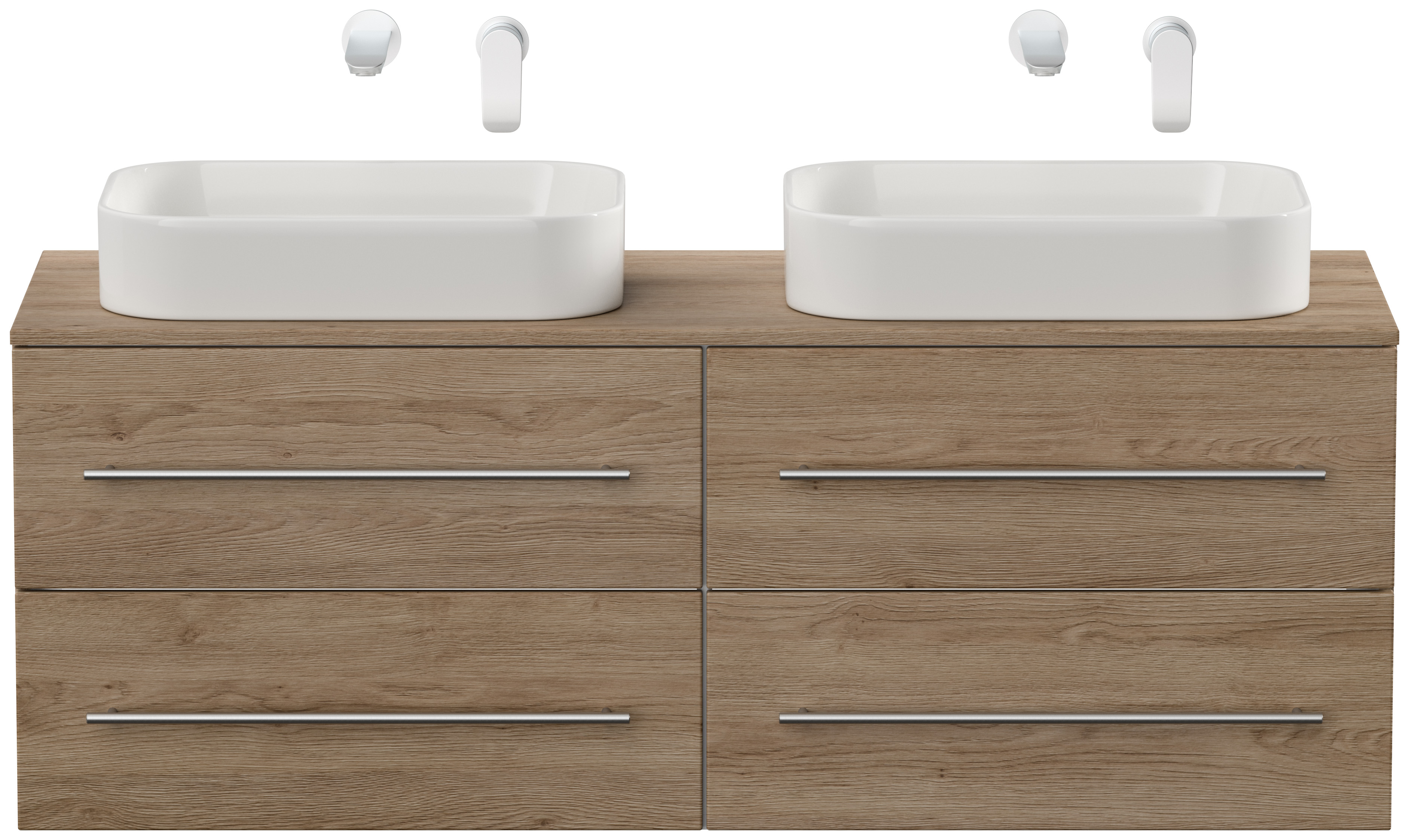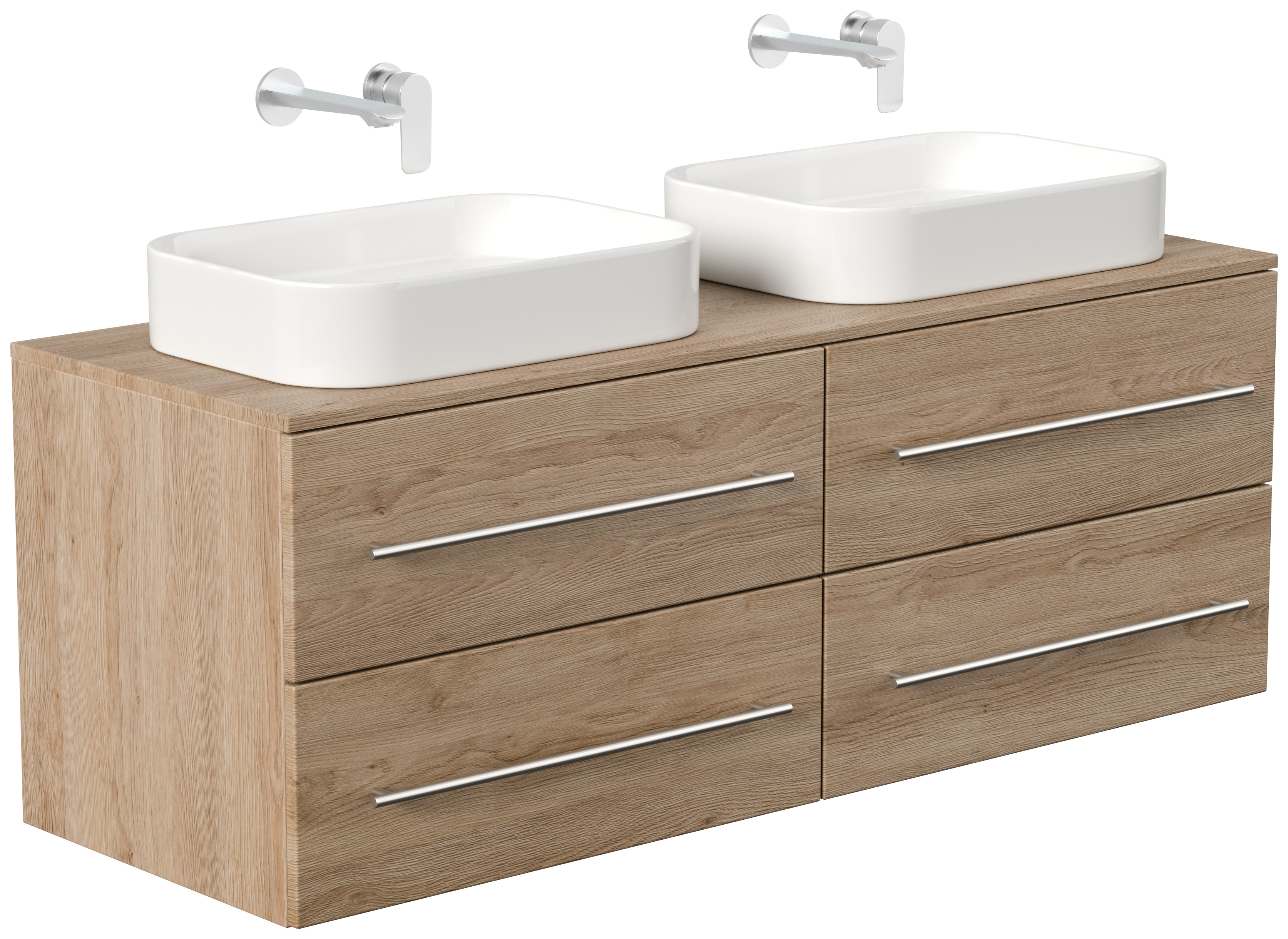 Badmöbel CHARLIE C 143cm mit zwei Aufsatzwaschbecken eiche hell