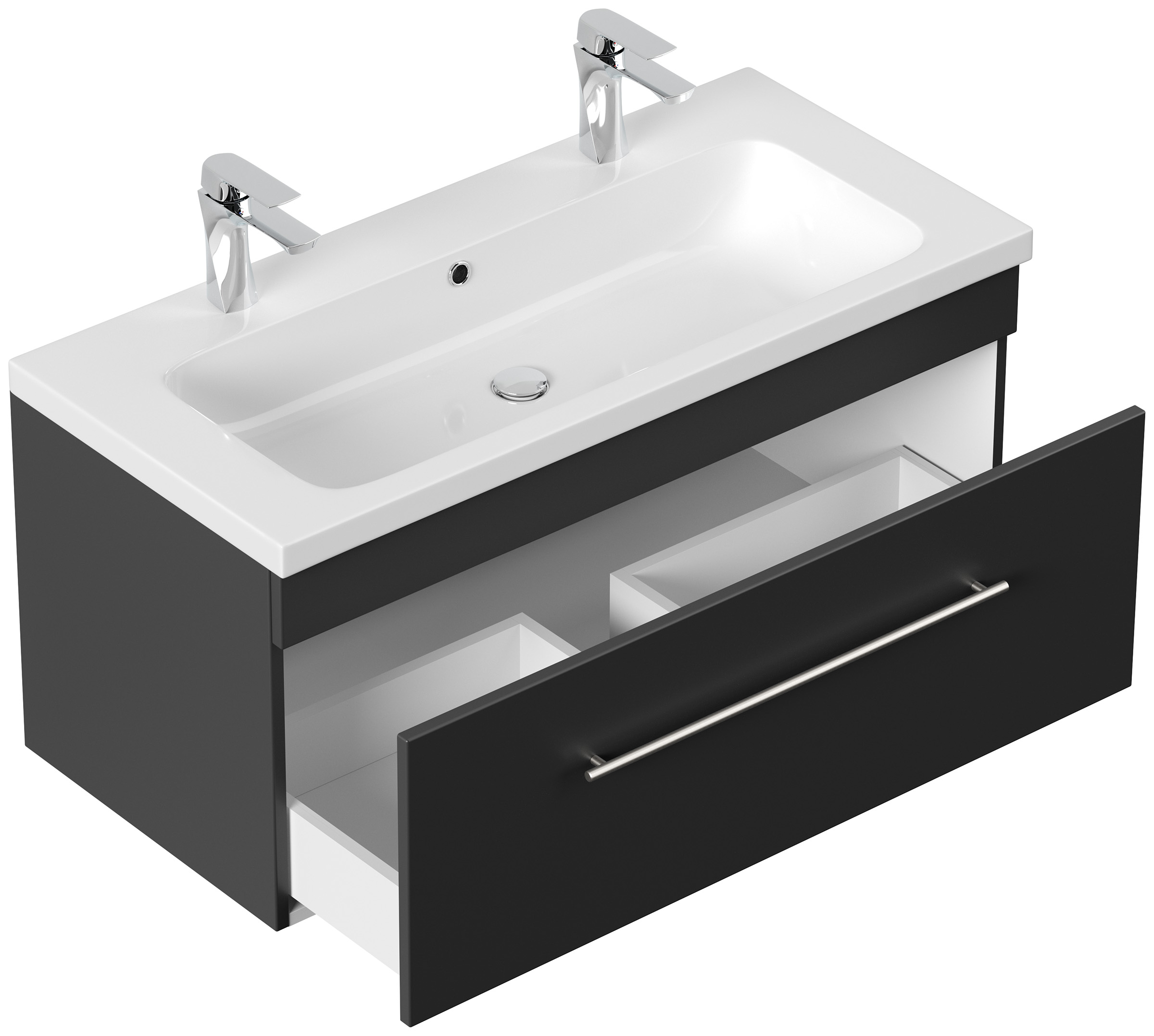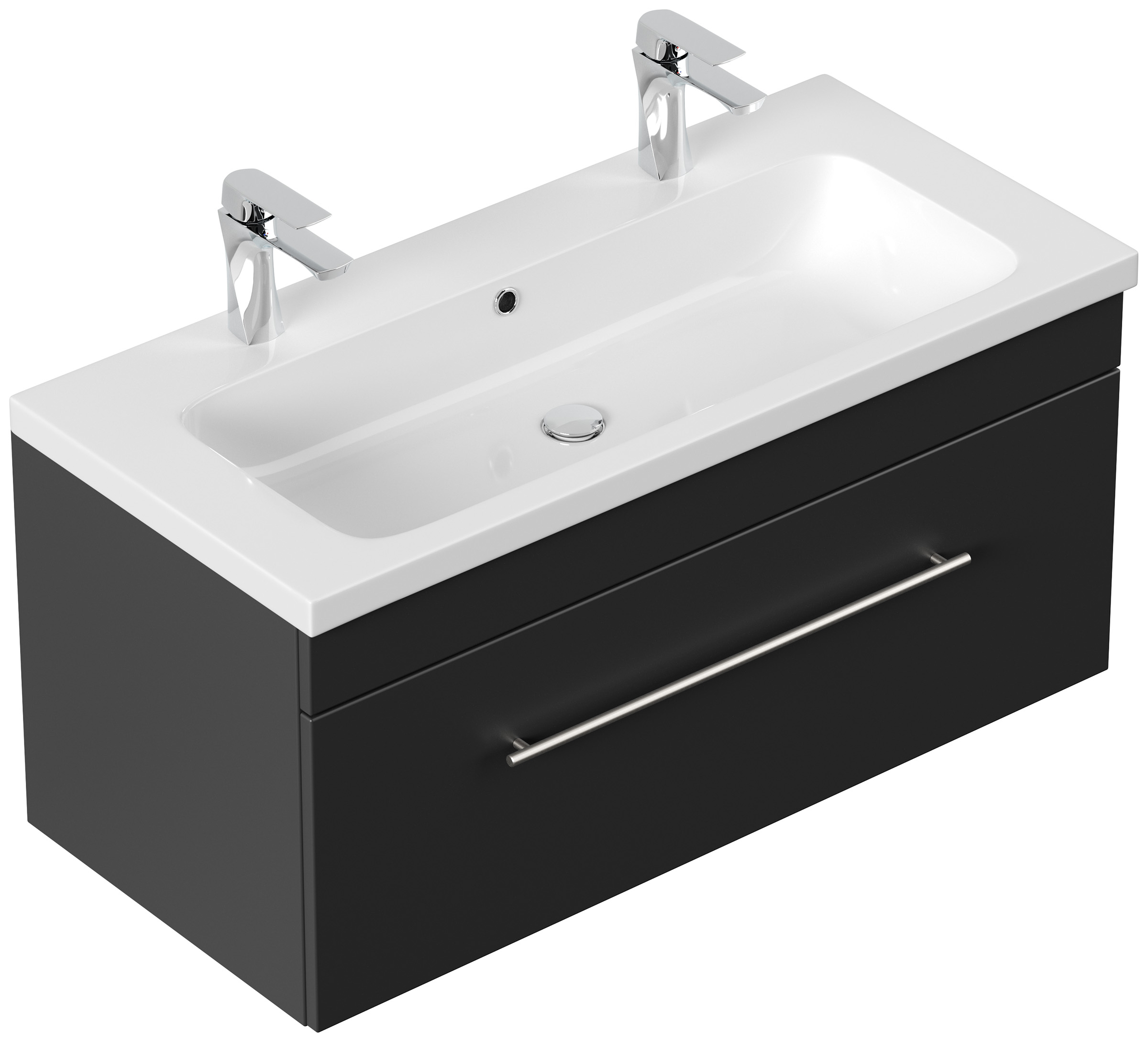 Badmöbel Diora 100cm Doppelbadmöbel Softclose schwarz