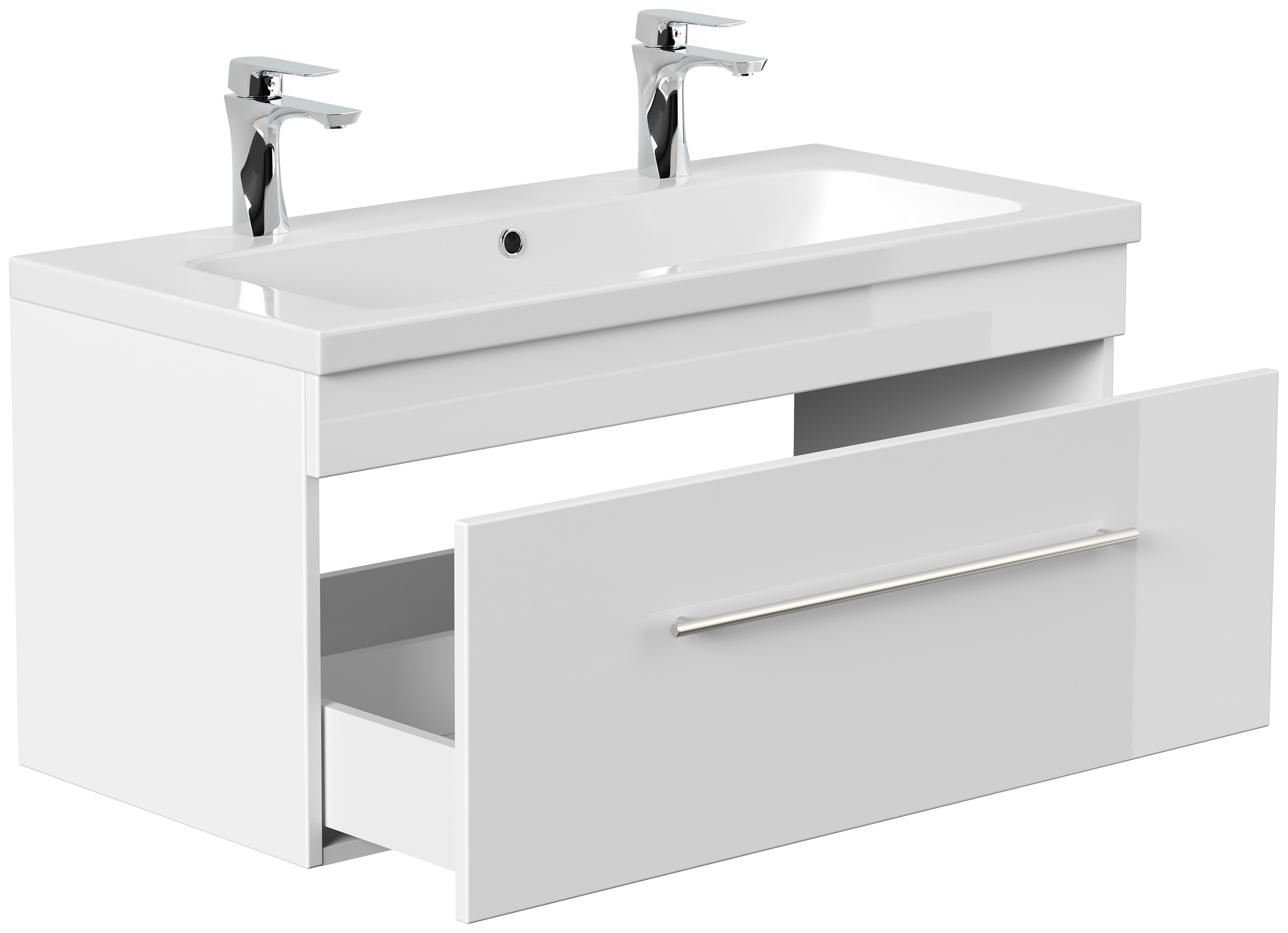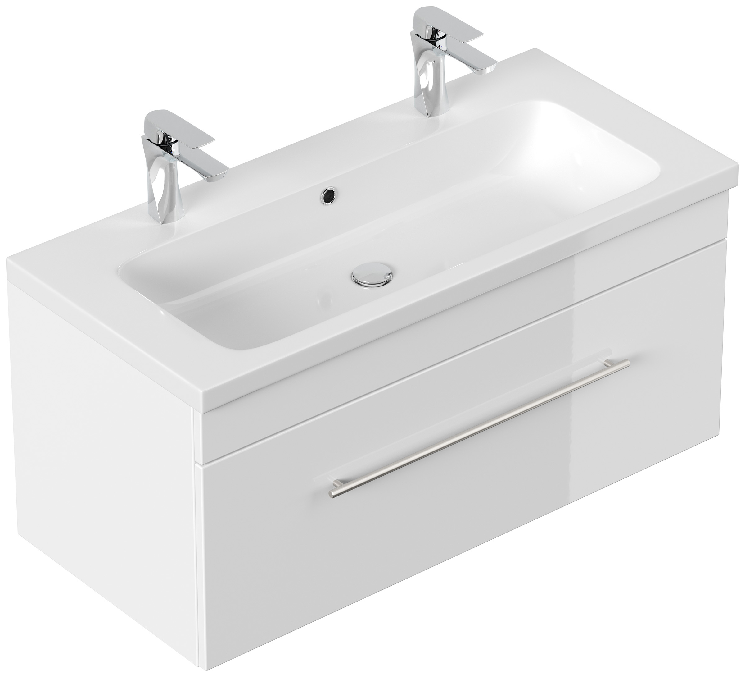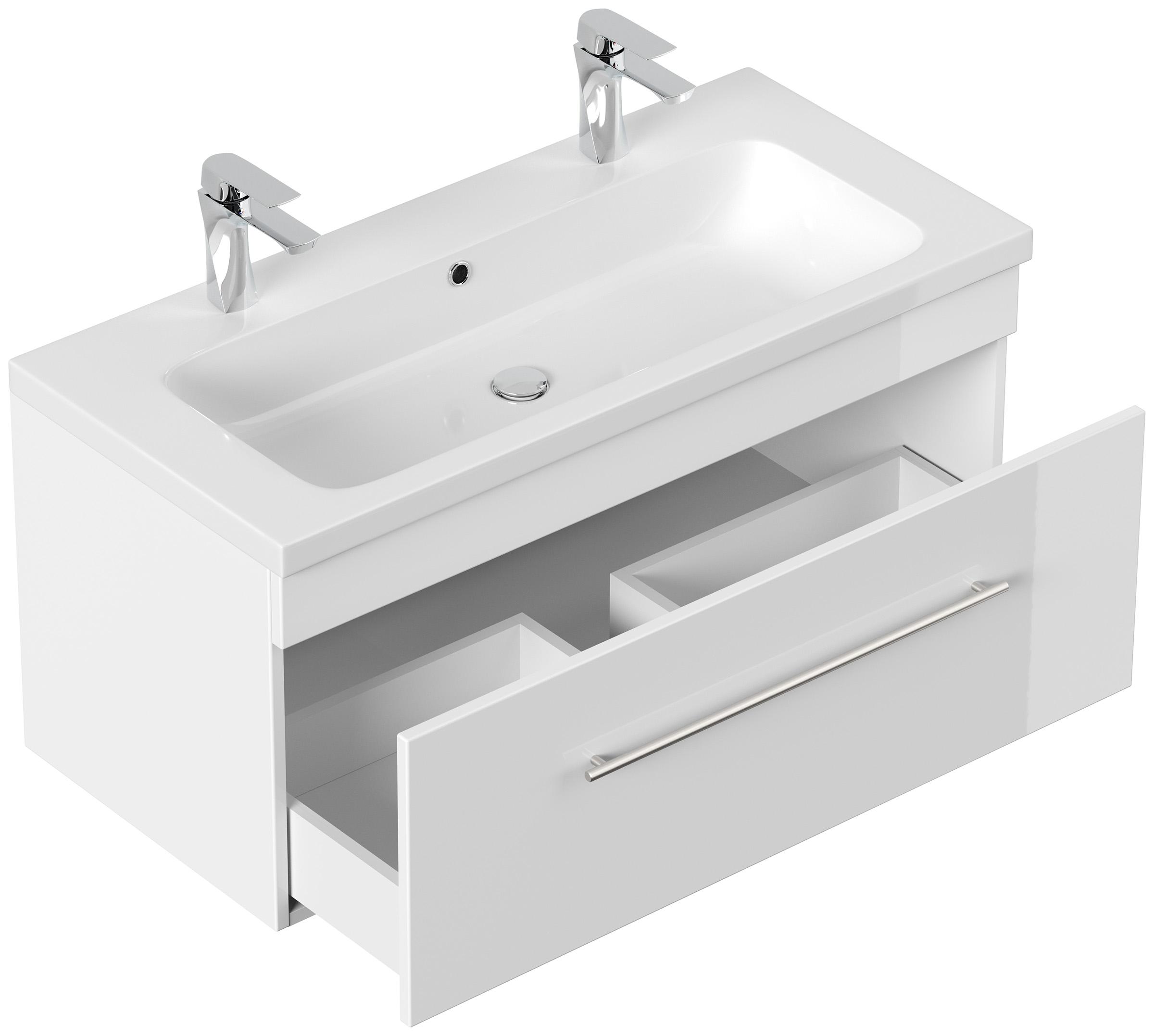 Badmöbel Diora 100cm Doppelbadmöbel Softclose weiss hochglanz