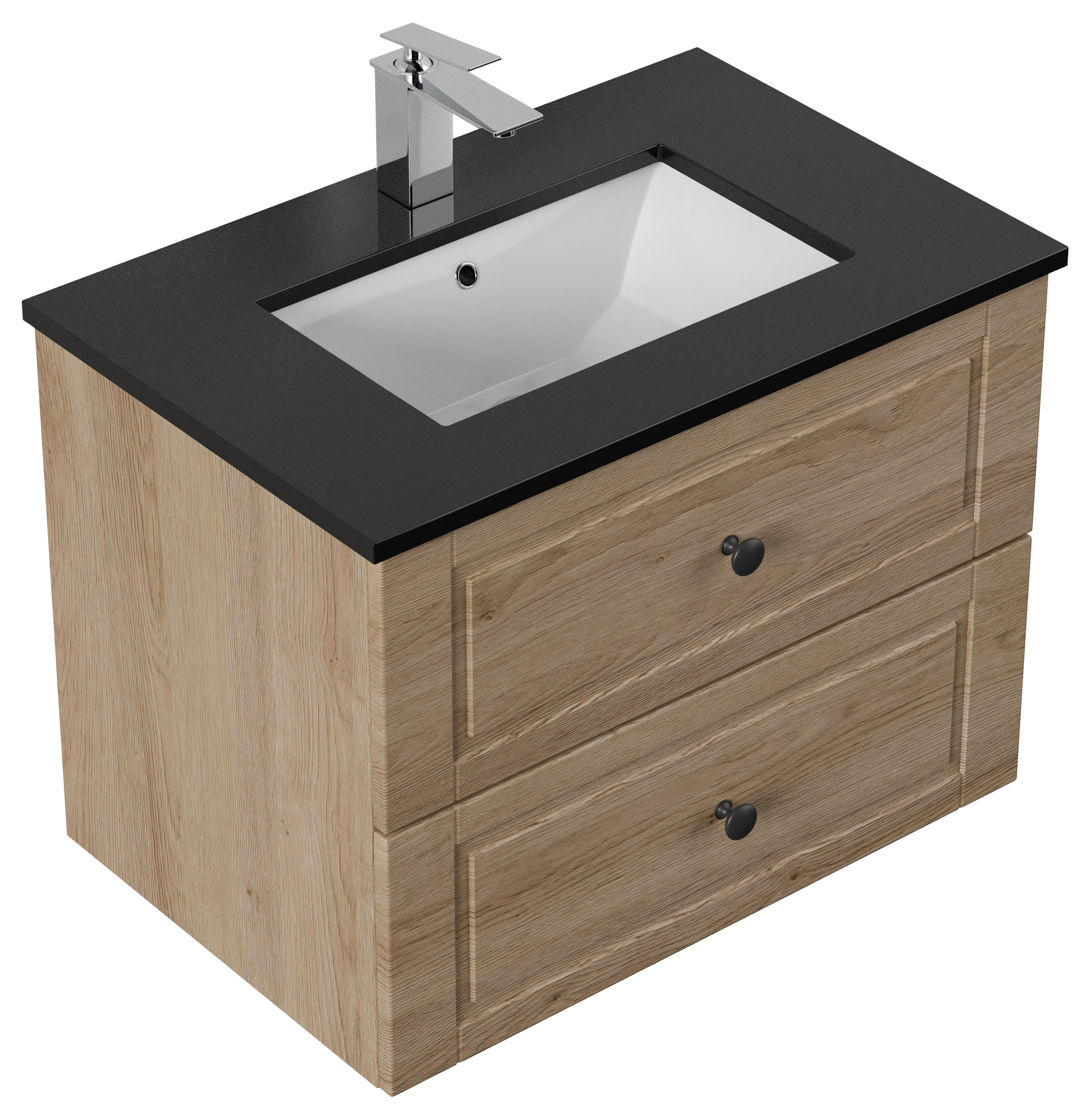 Badmöbel Ely 70 Cottage schwarzes Quarz SoftClose eiche hell