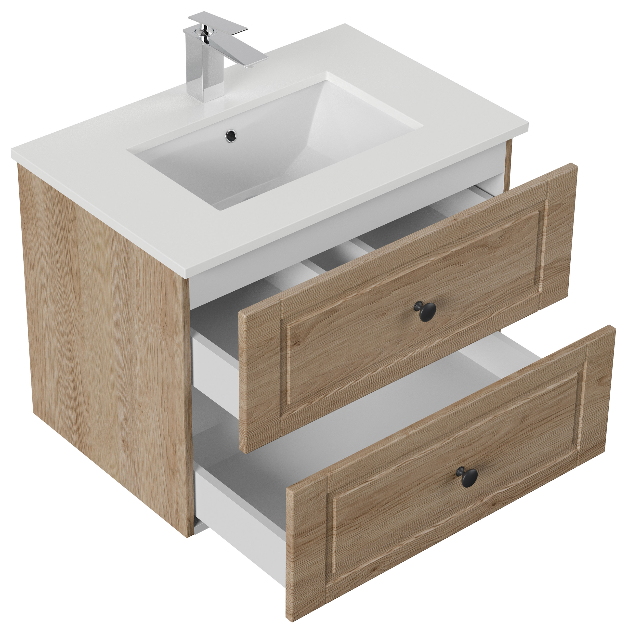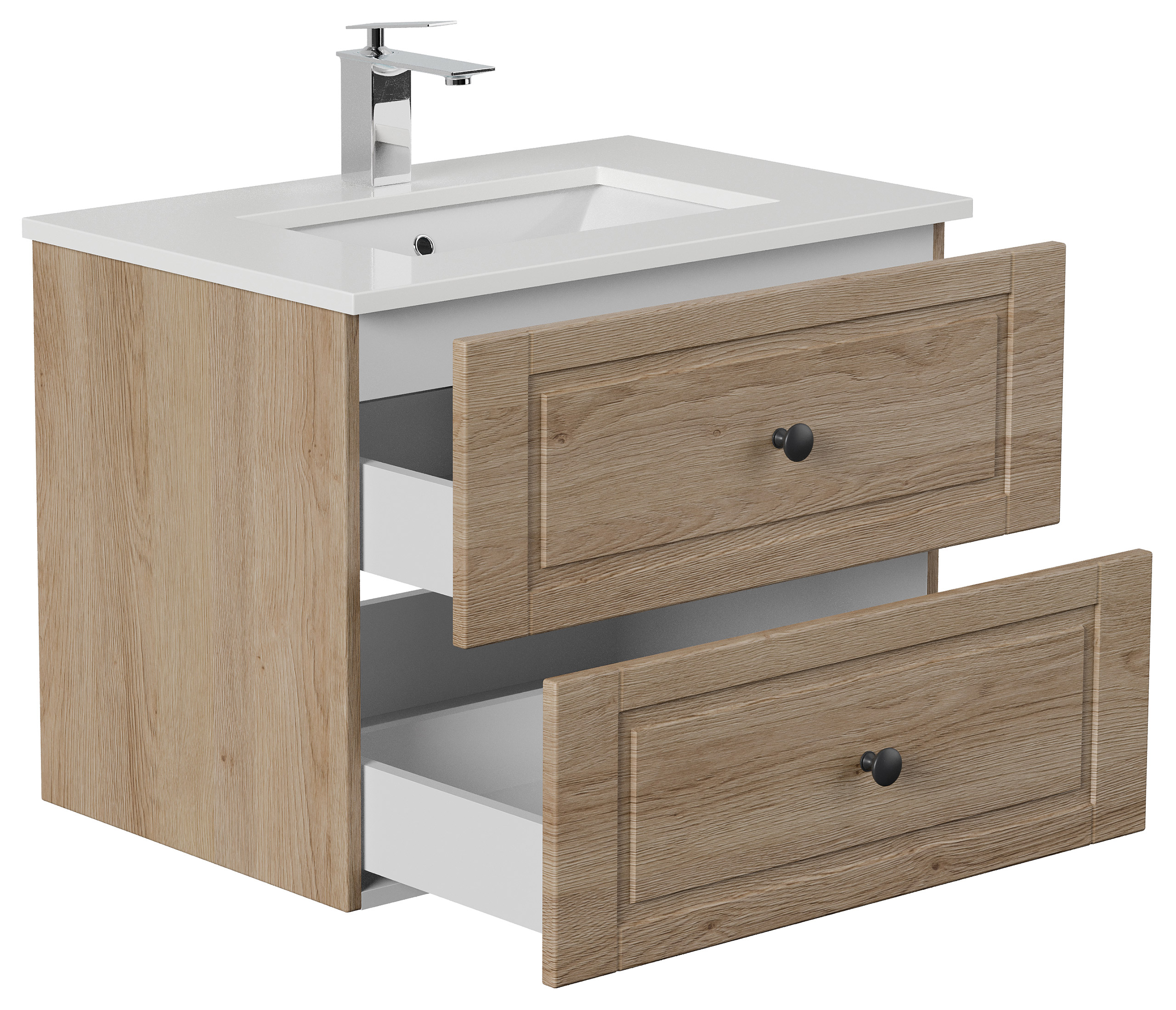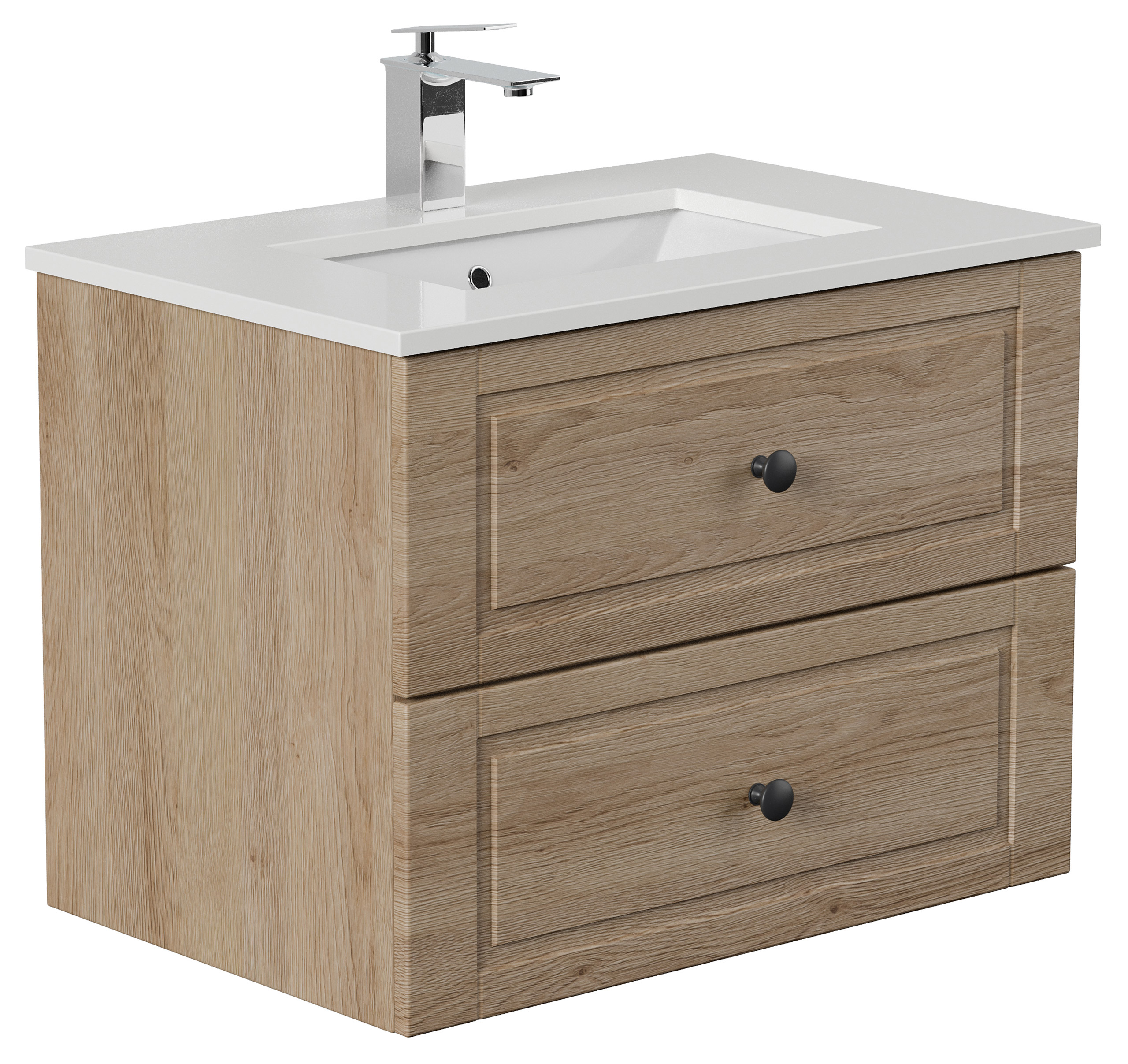 Badmöbel Ely 70 Cottage weißes Quarz SoftClose eiche hell
