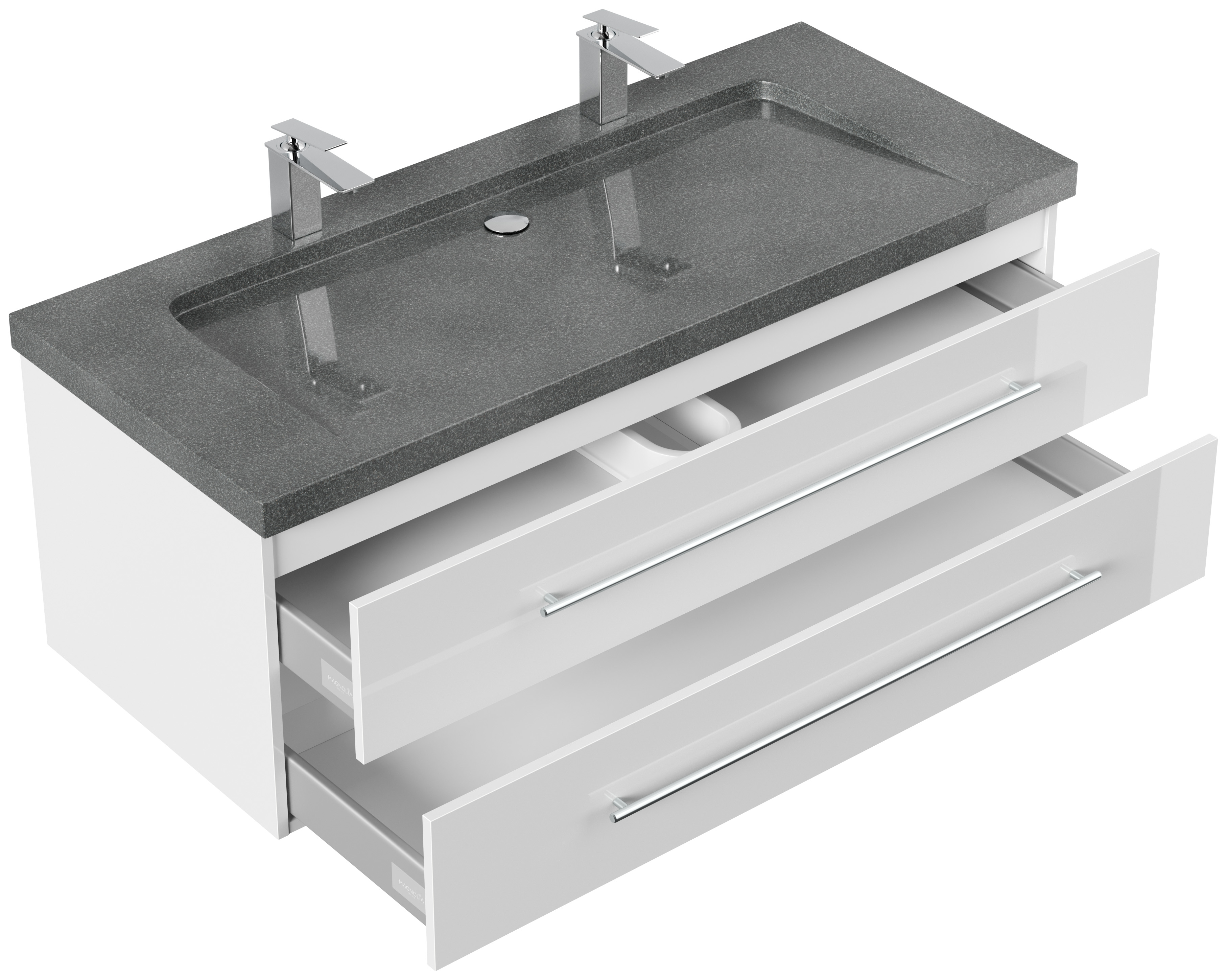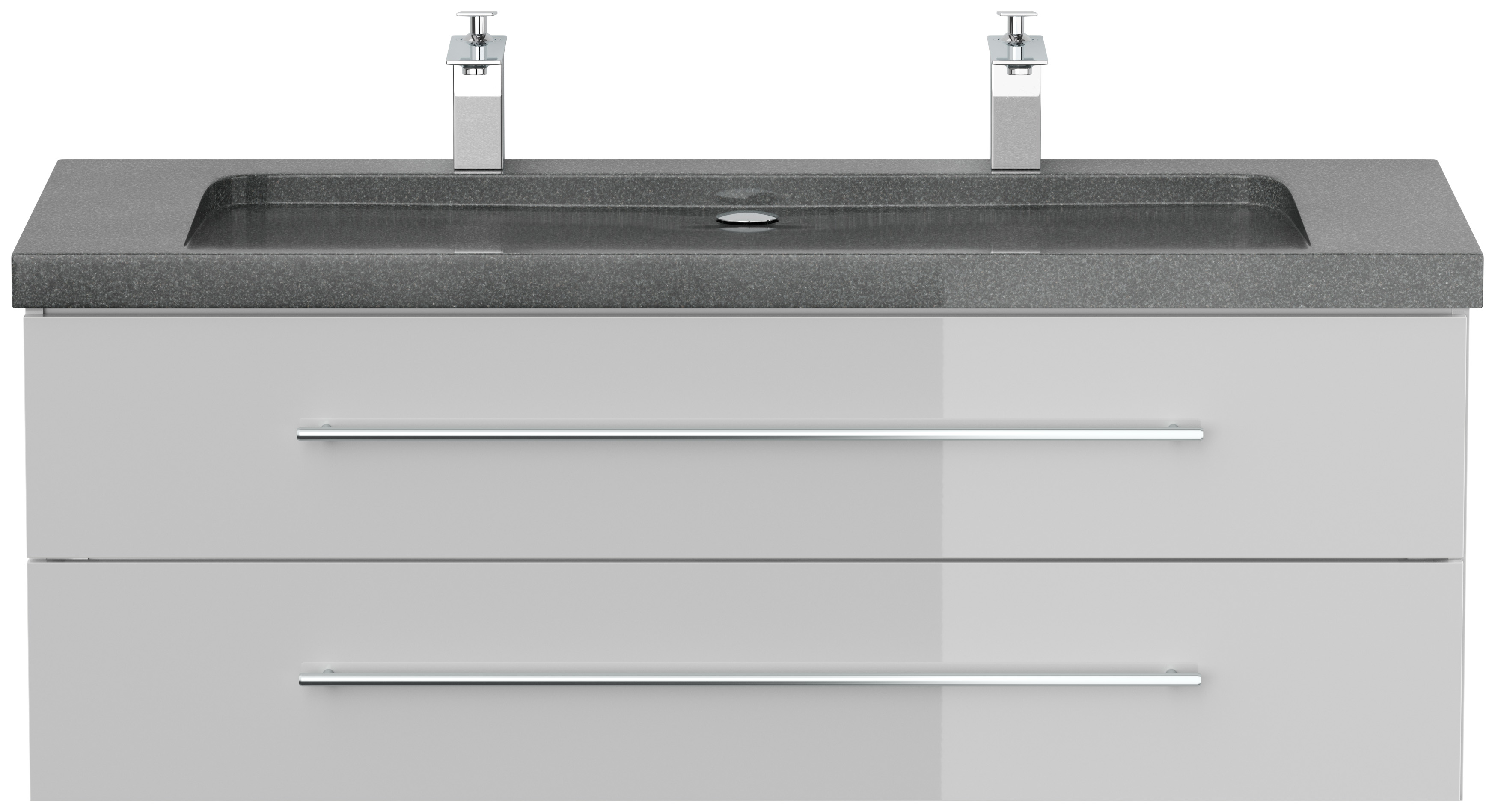 Badmöbel Granit G654 Damo 130 cm 2 Hahnlöcher SoftClose weiß hochglanz