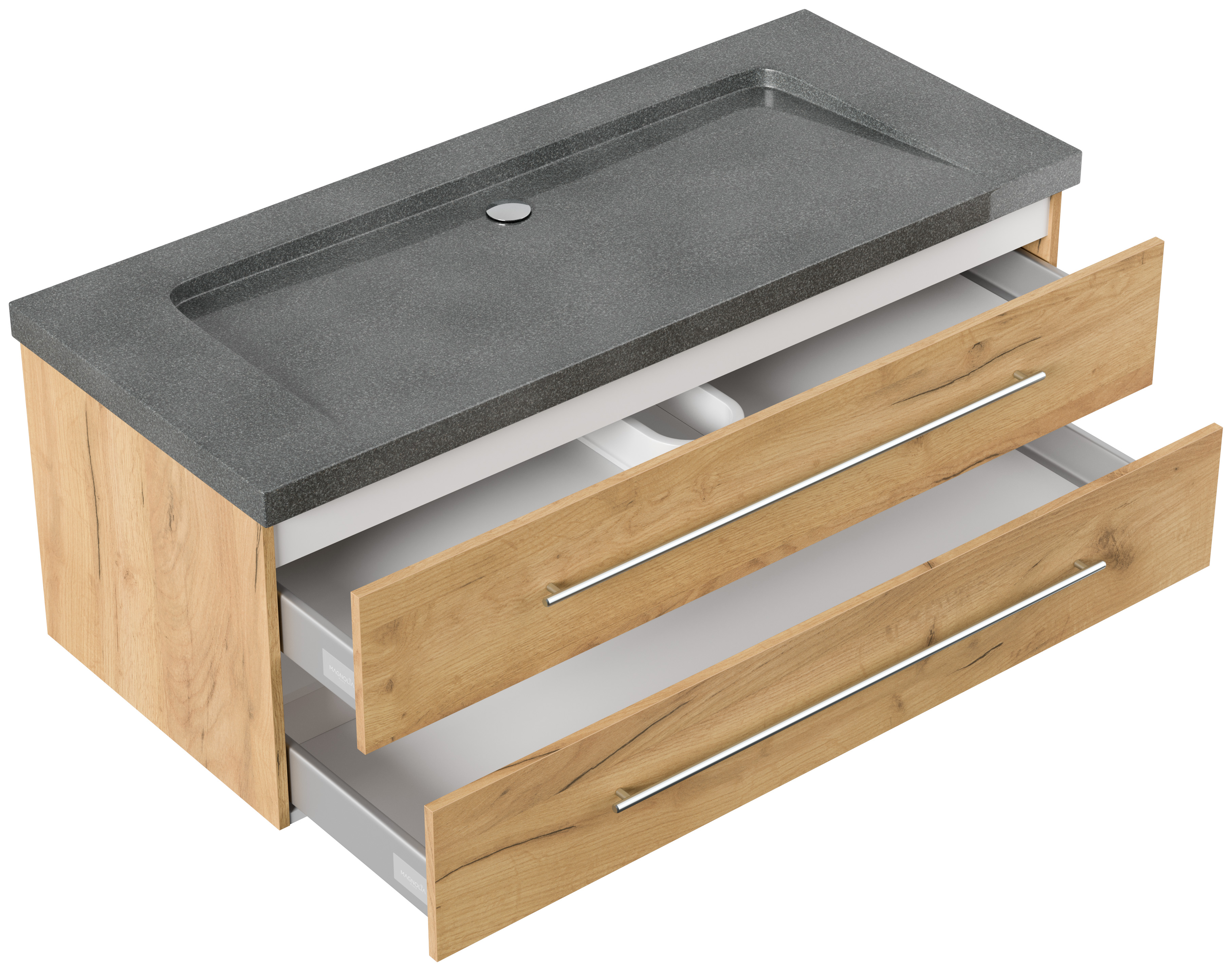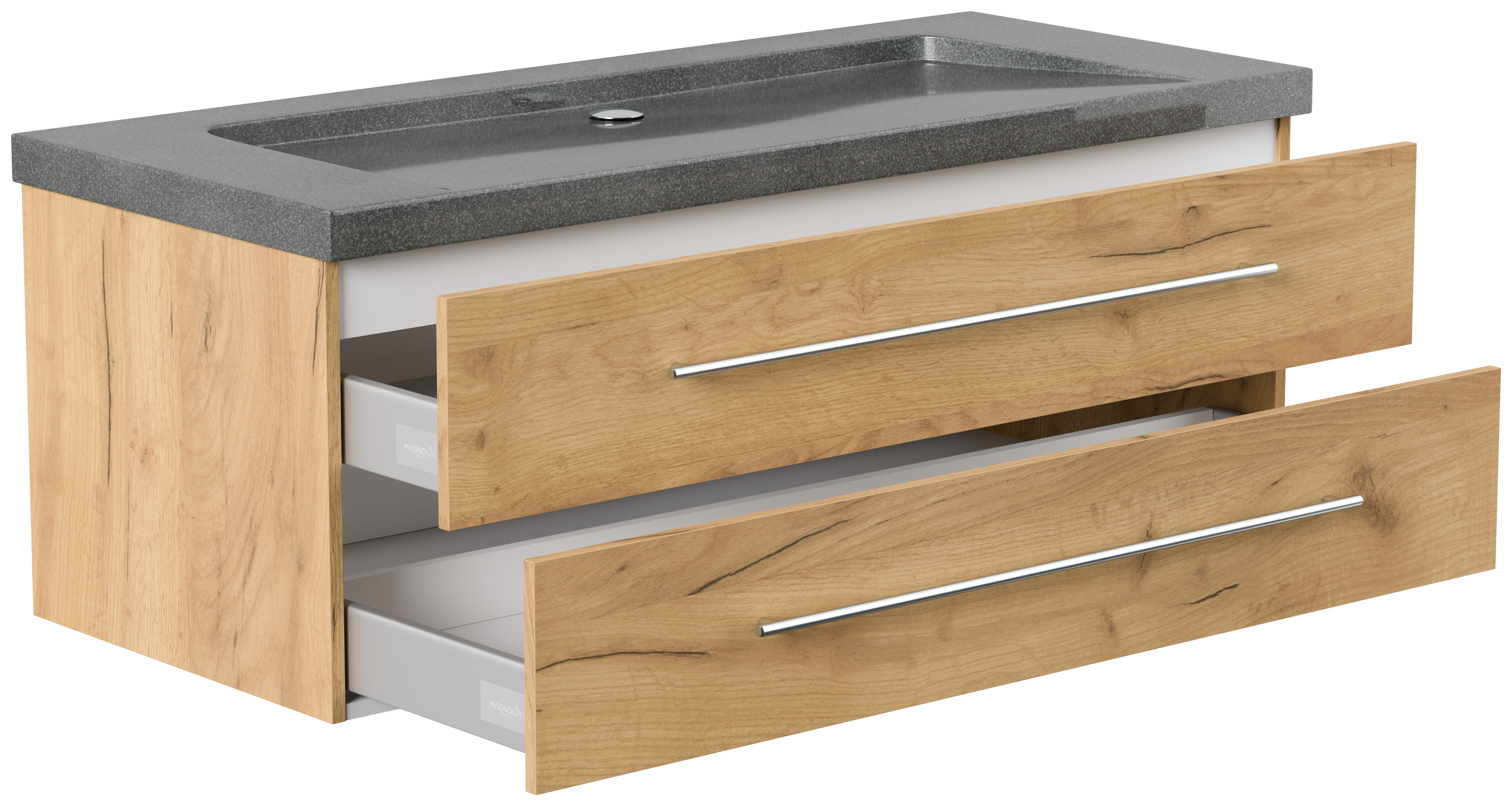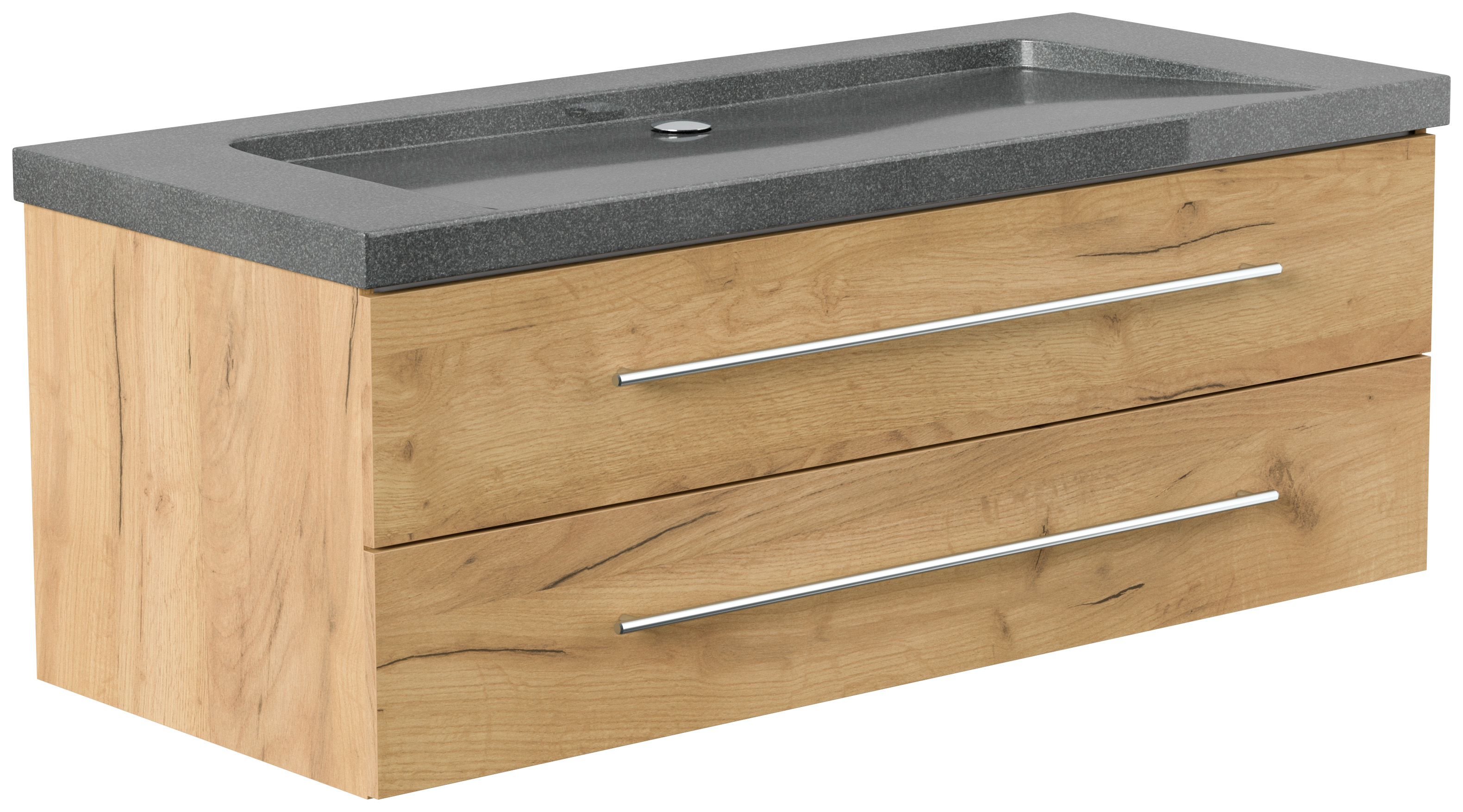 Badmöbel Granit G654 Damo 130 cm ohne Hahnloch SoftClose eiche gold