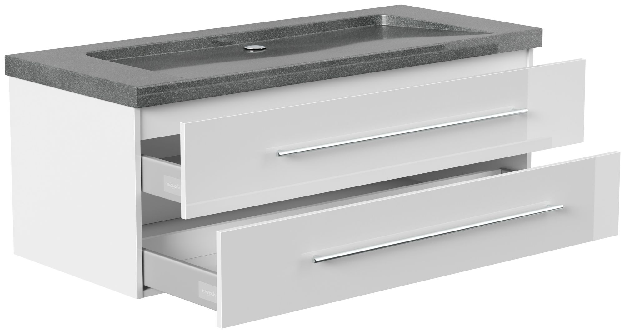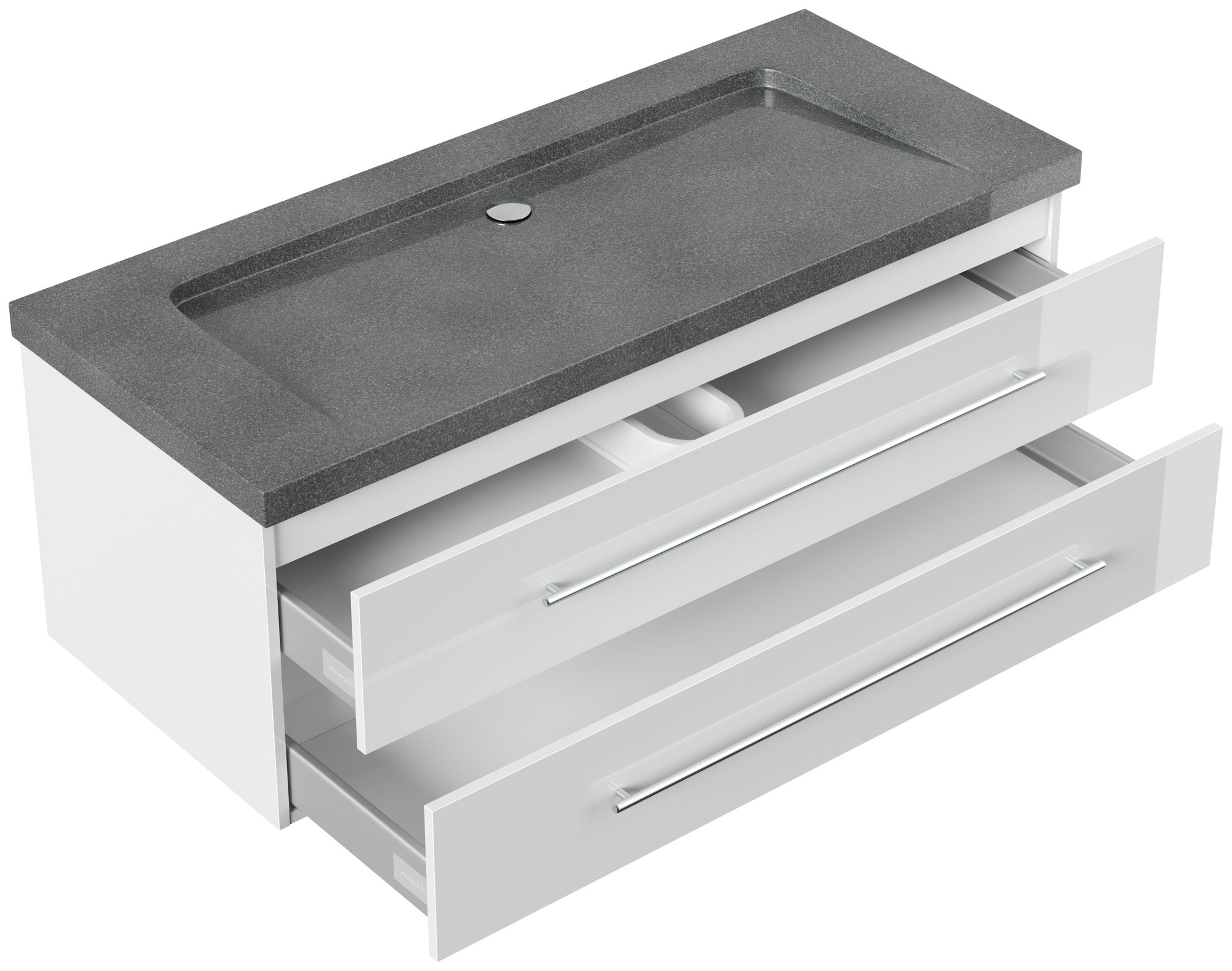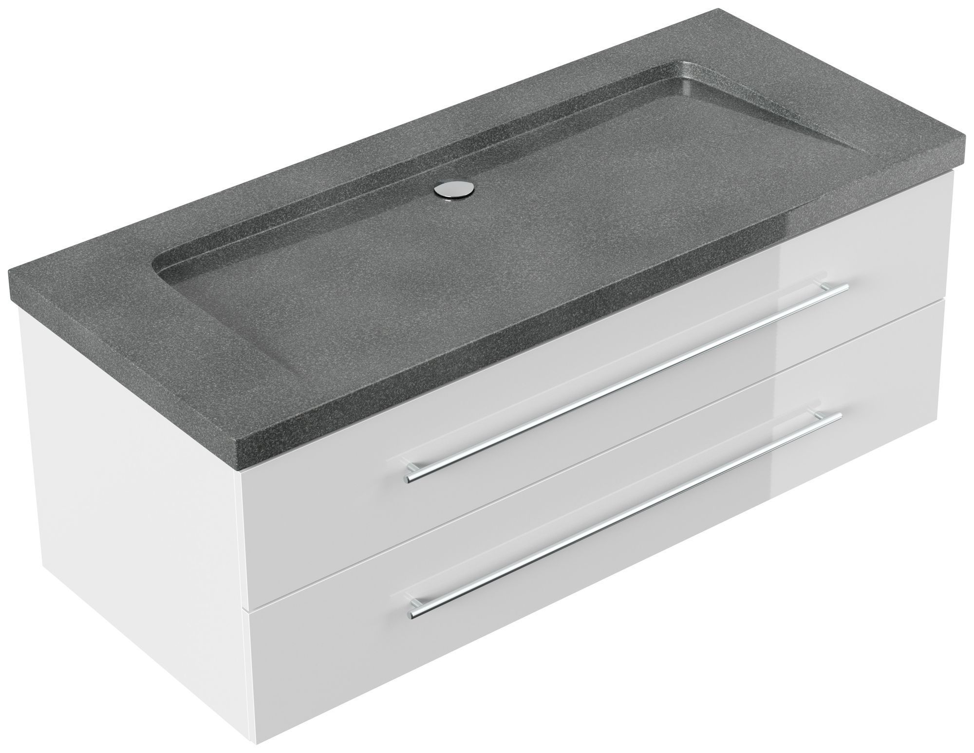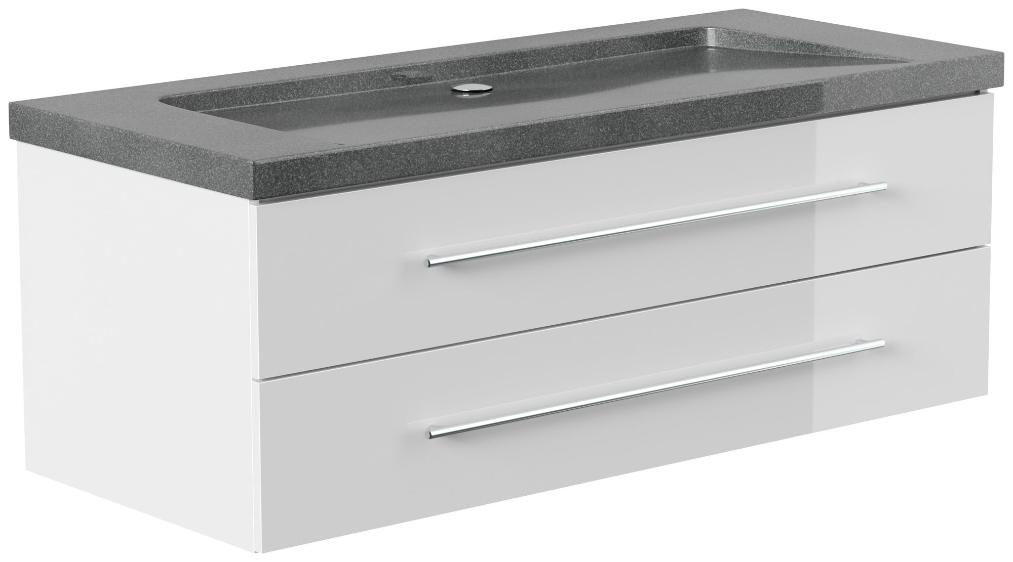 Badmöbel Granit G654 Damo 130 cm ohne Hahnloch SoftClose weiß hochglanz