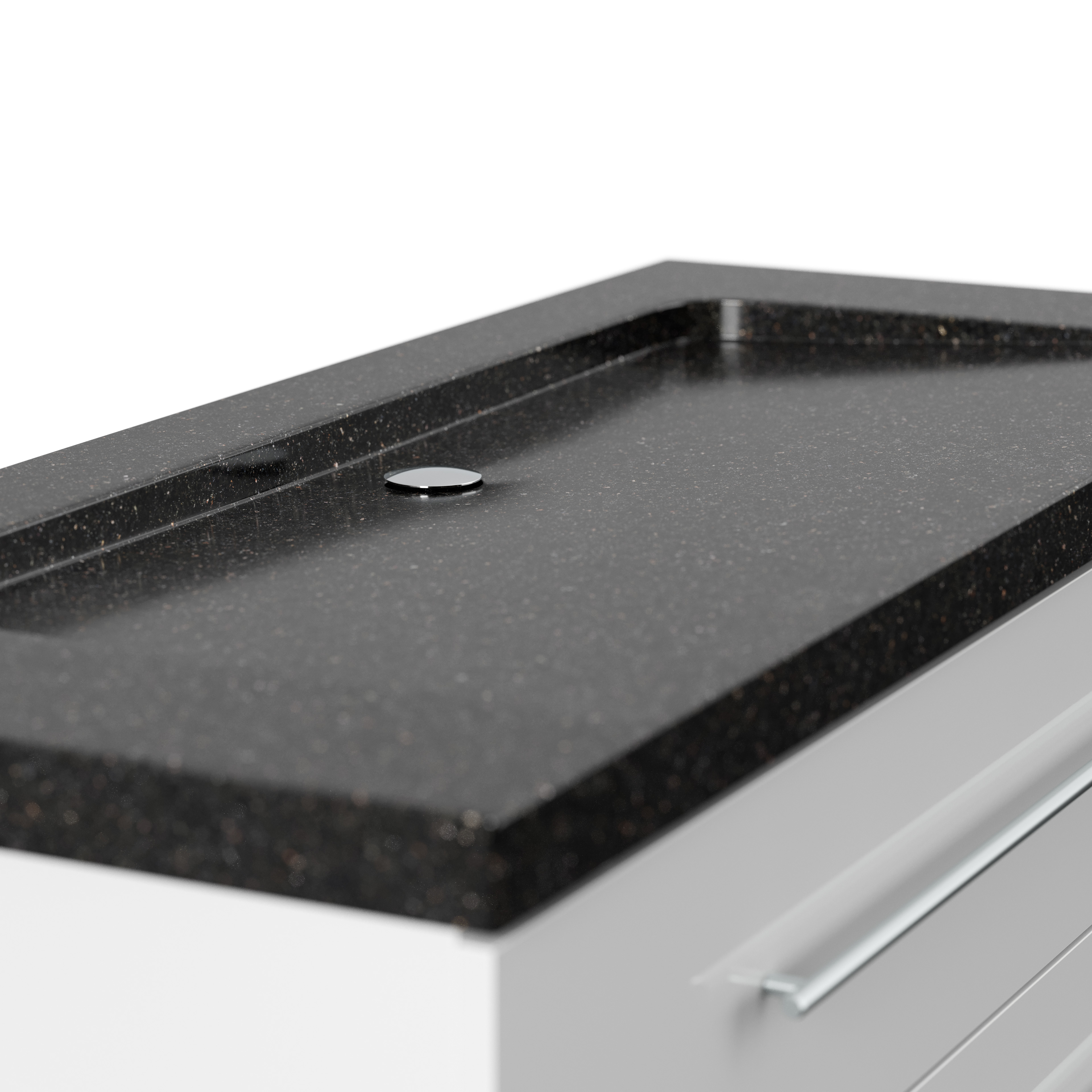 Badmöbel Granit Galaxy Black Damo 130 cm ohne Hahnloch SoftClose weiß hochglanz