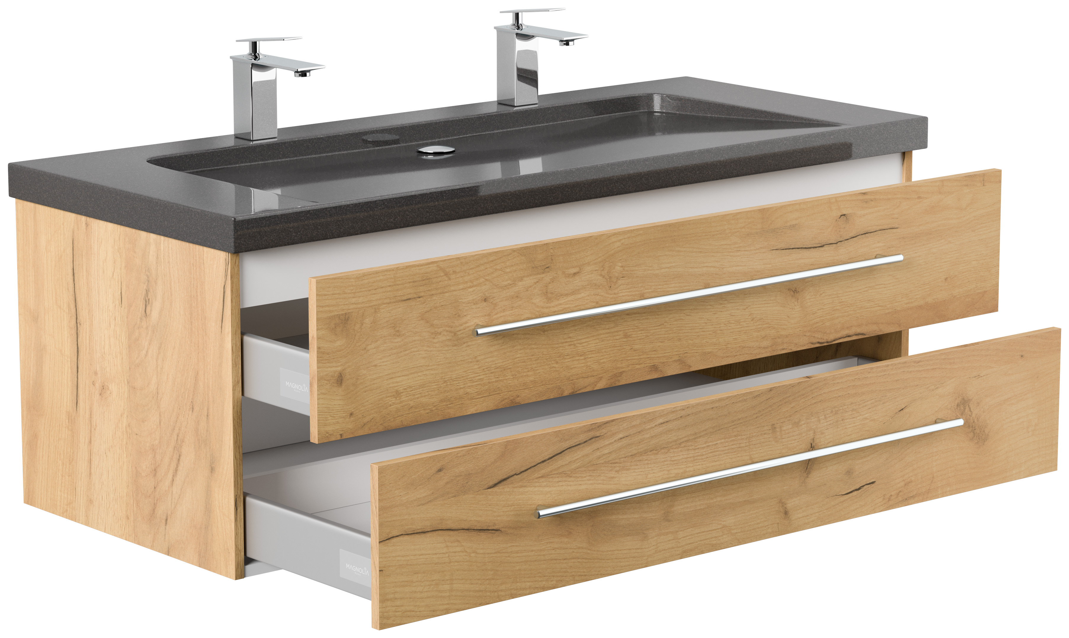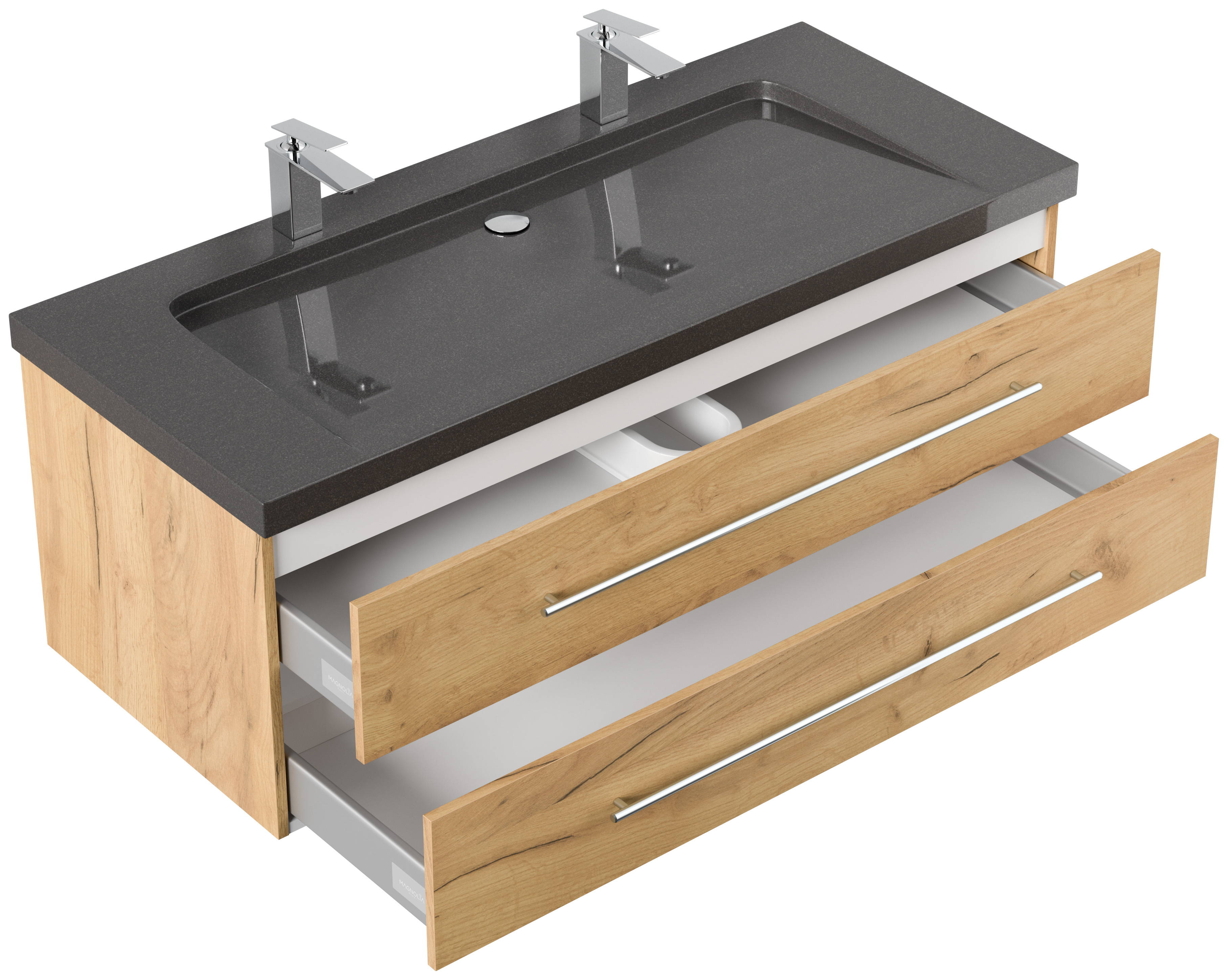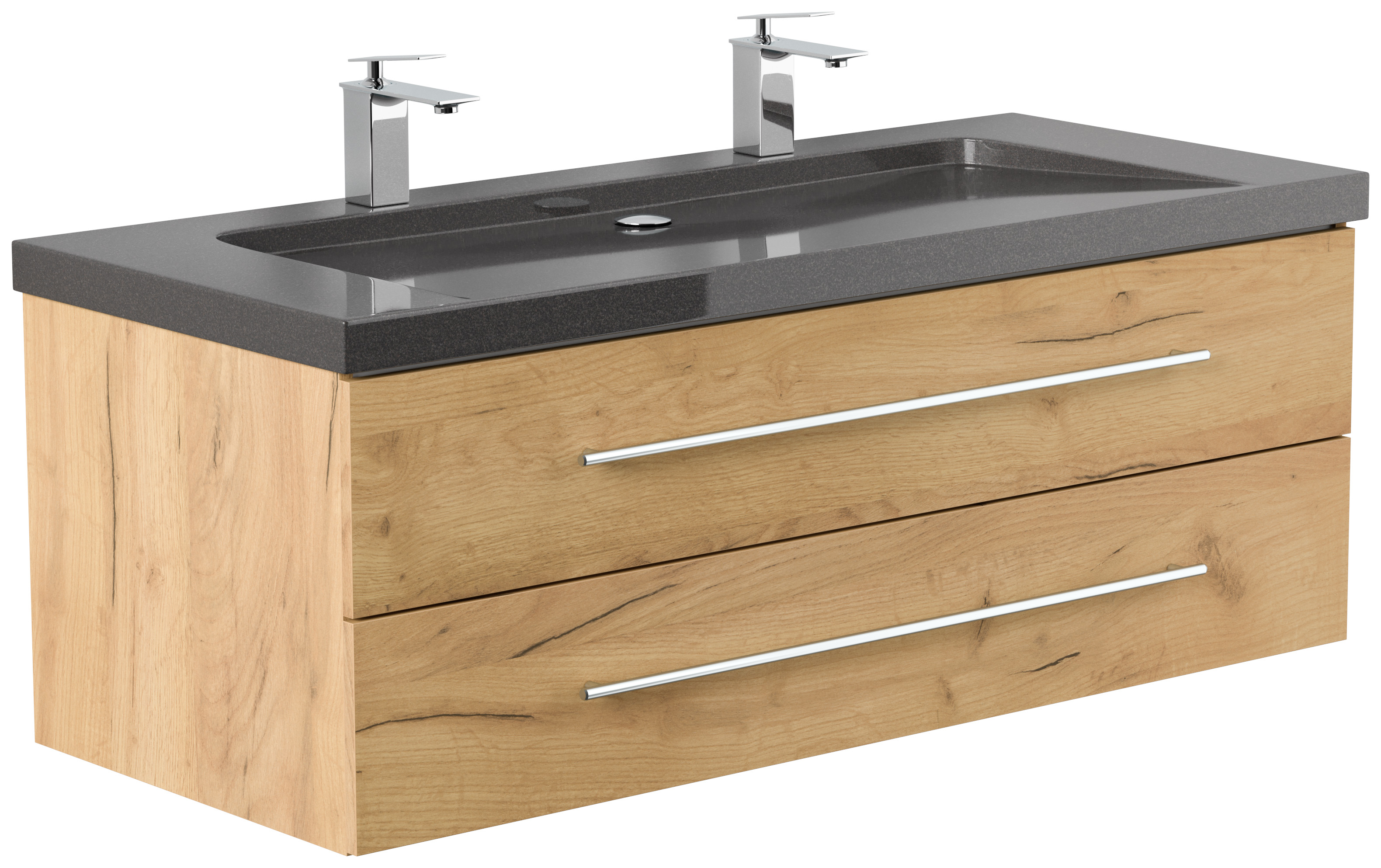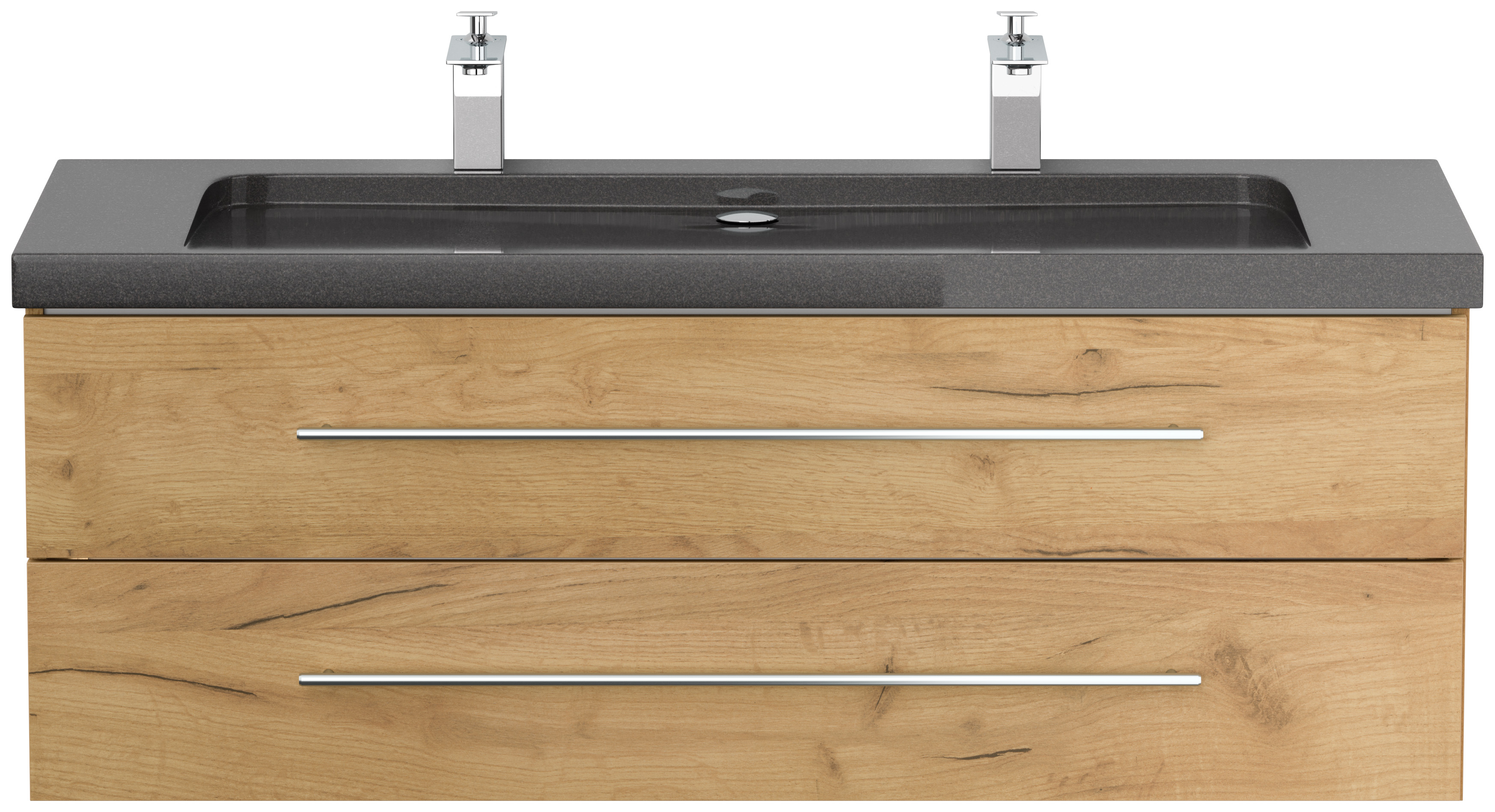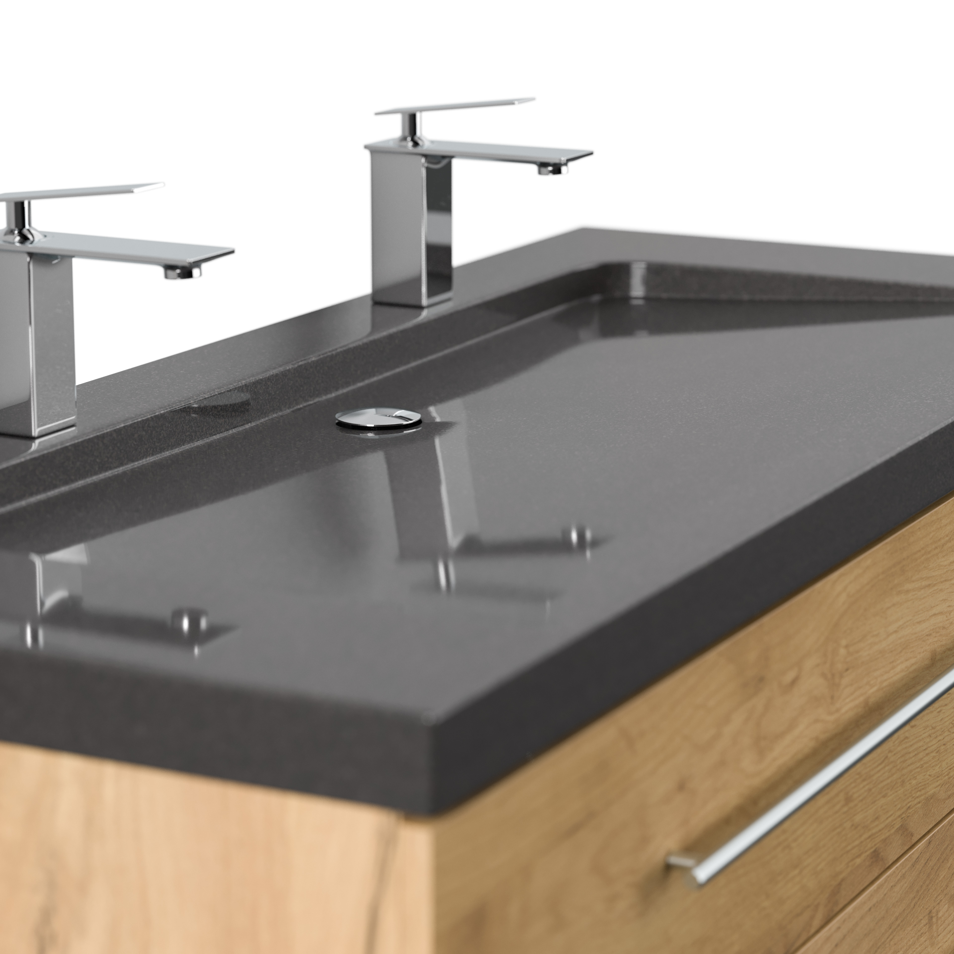 Badmöbel Granit India Black Damo 130 cm 2 Hahnlöcher SoftClose eiche gold