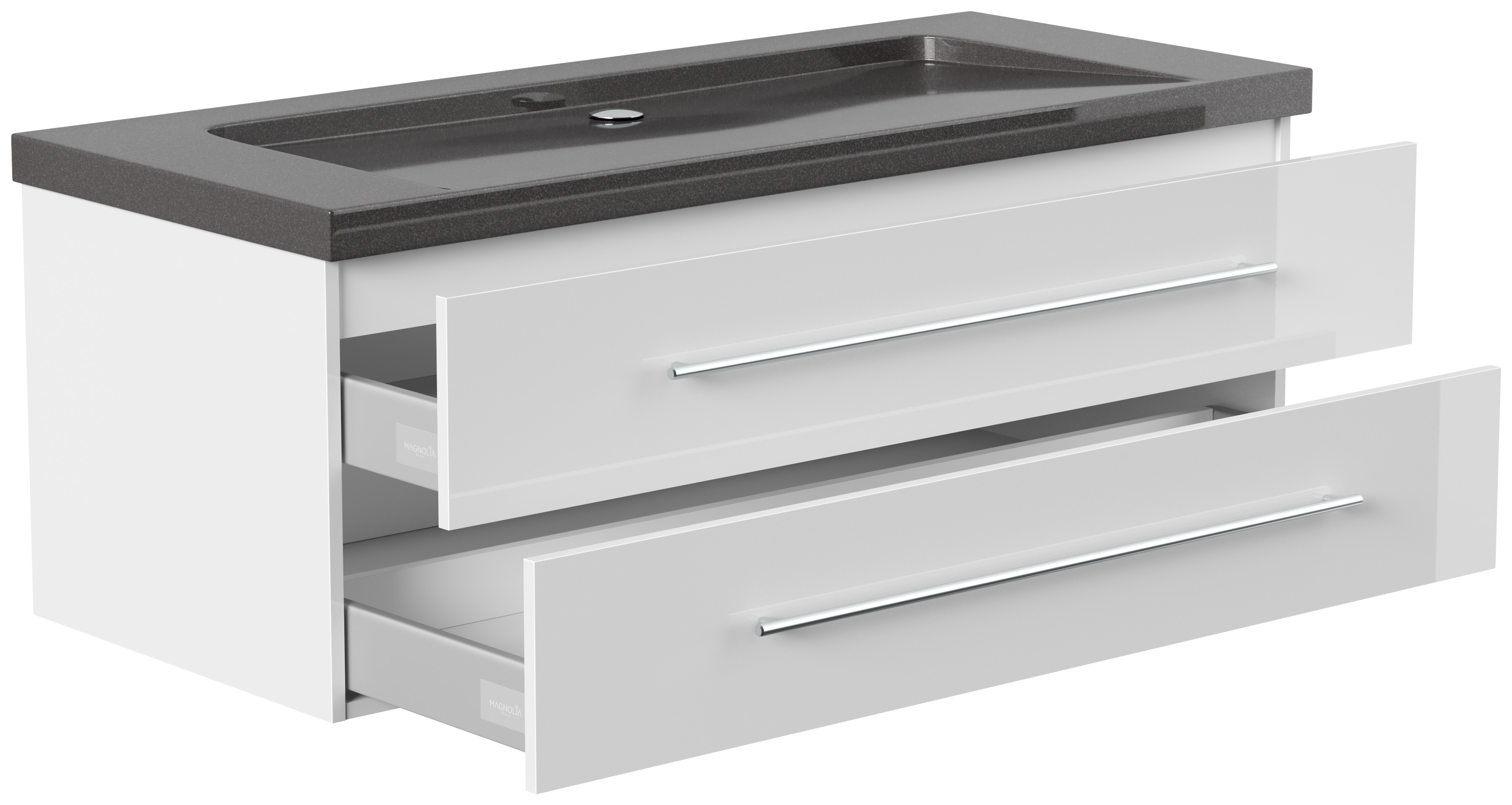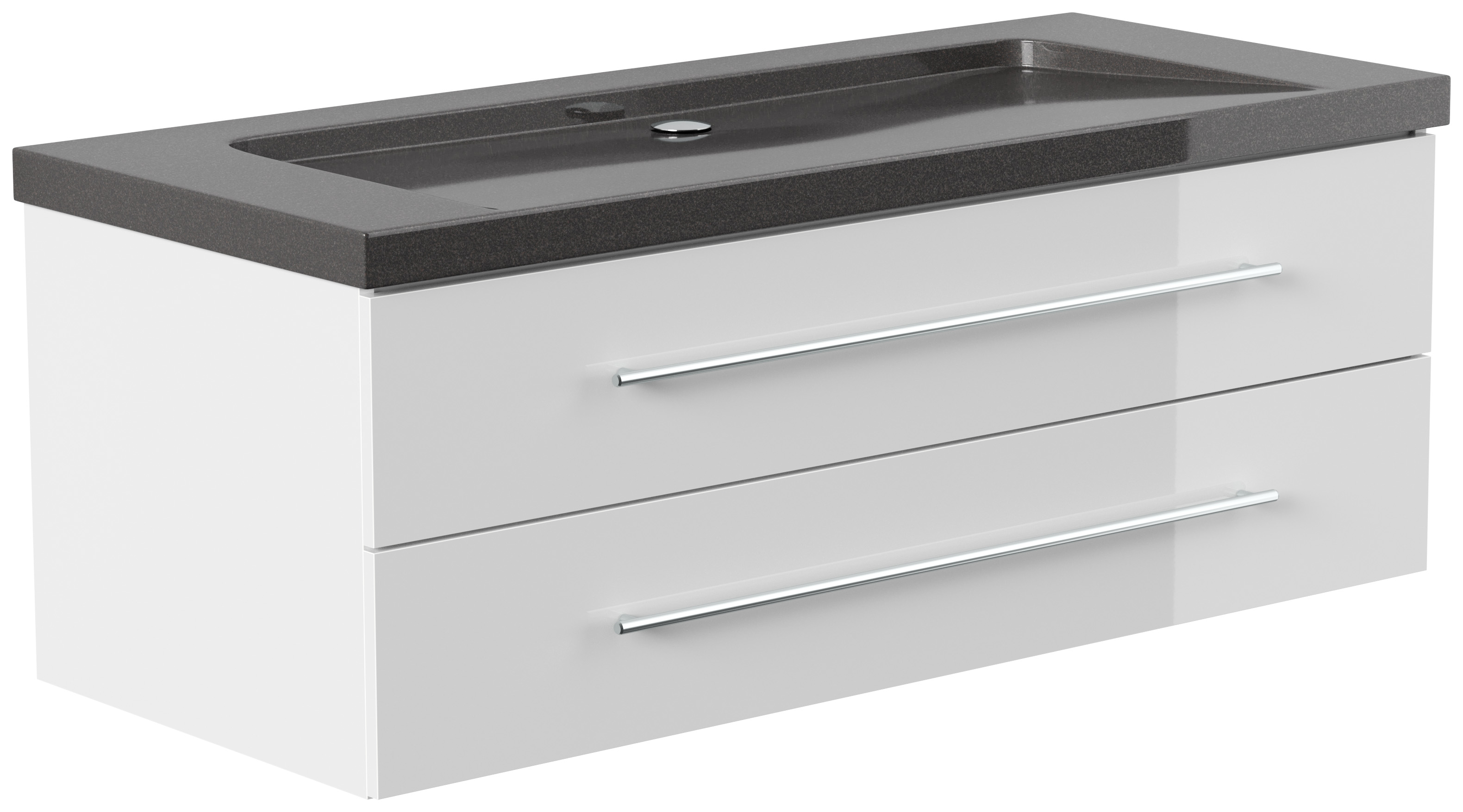 Badmöbel Granit India Black Damo 130 cm ohne Hahnloch SoftClose weiß hochglanz