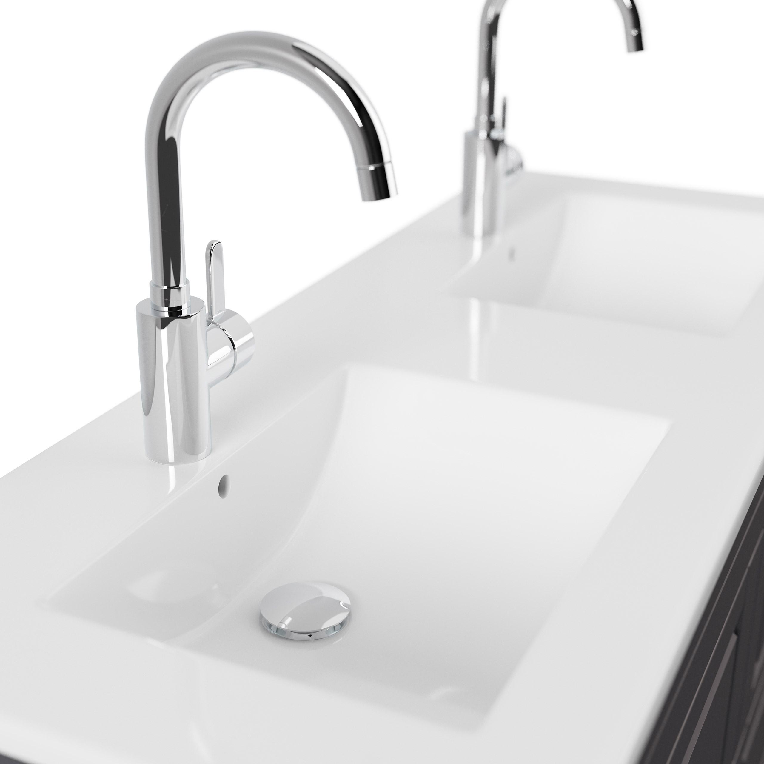 Doppelwaschbecken aus Keramik mit Überlauf (B/H/T) 120/2/46 cm.