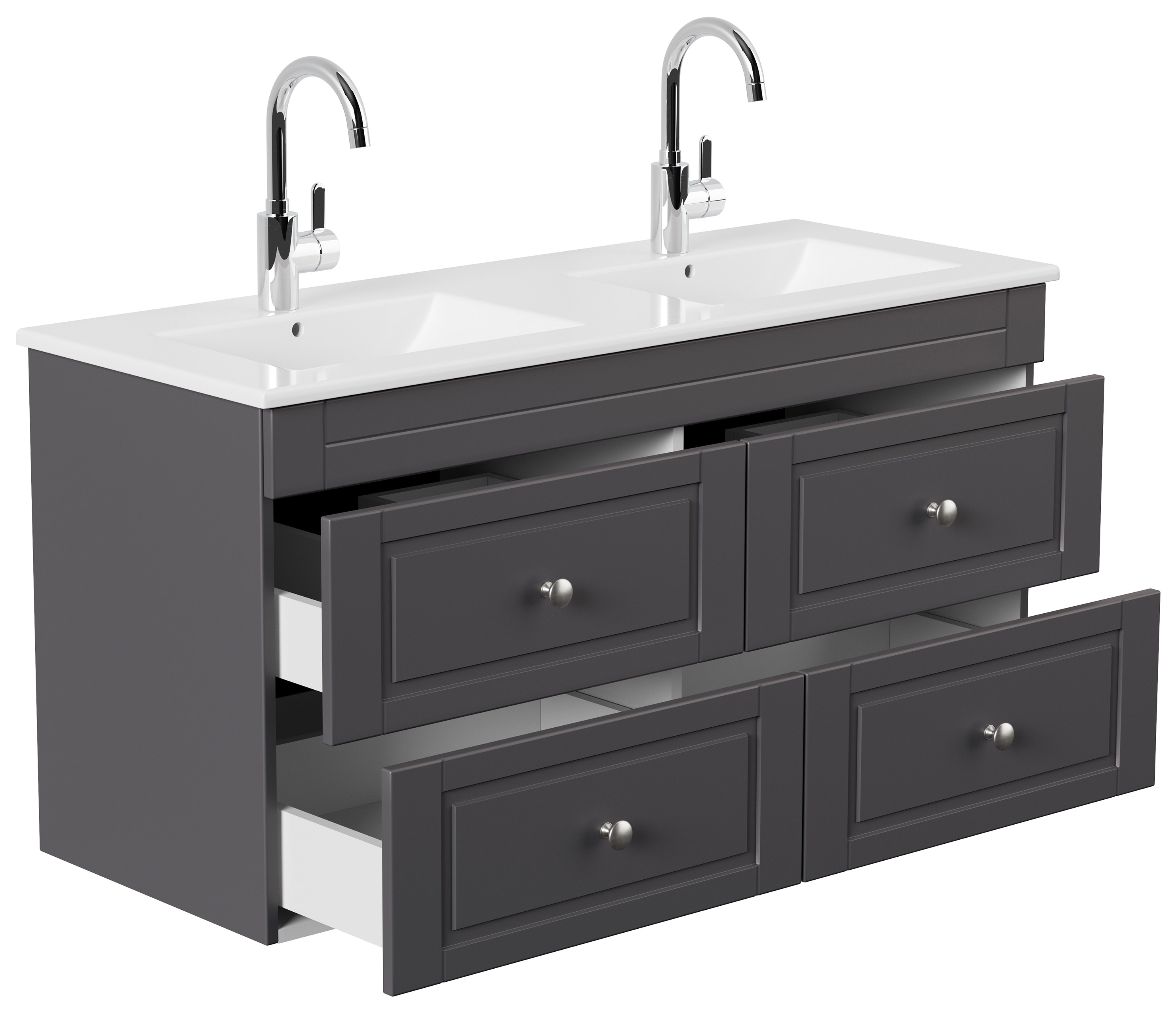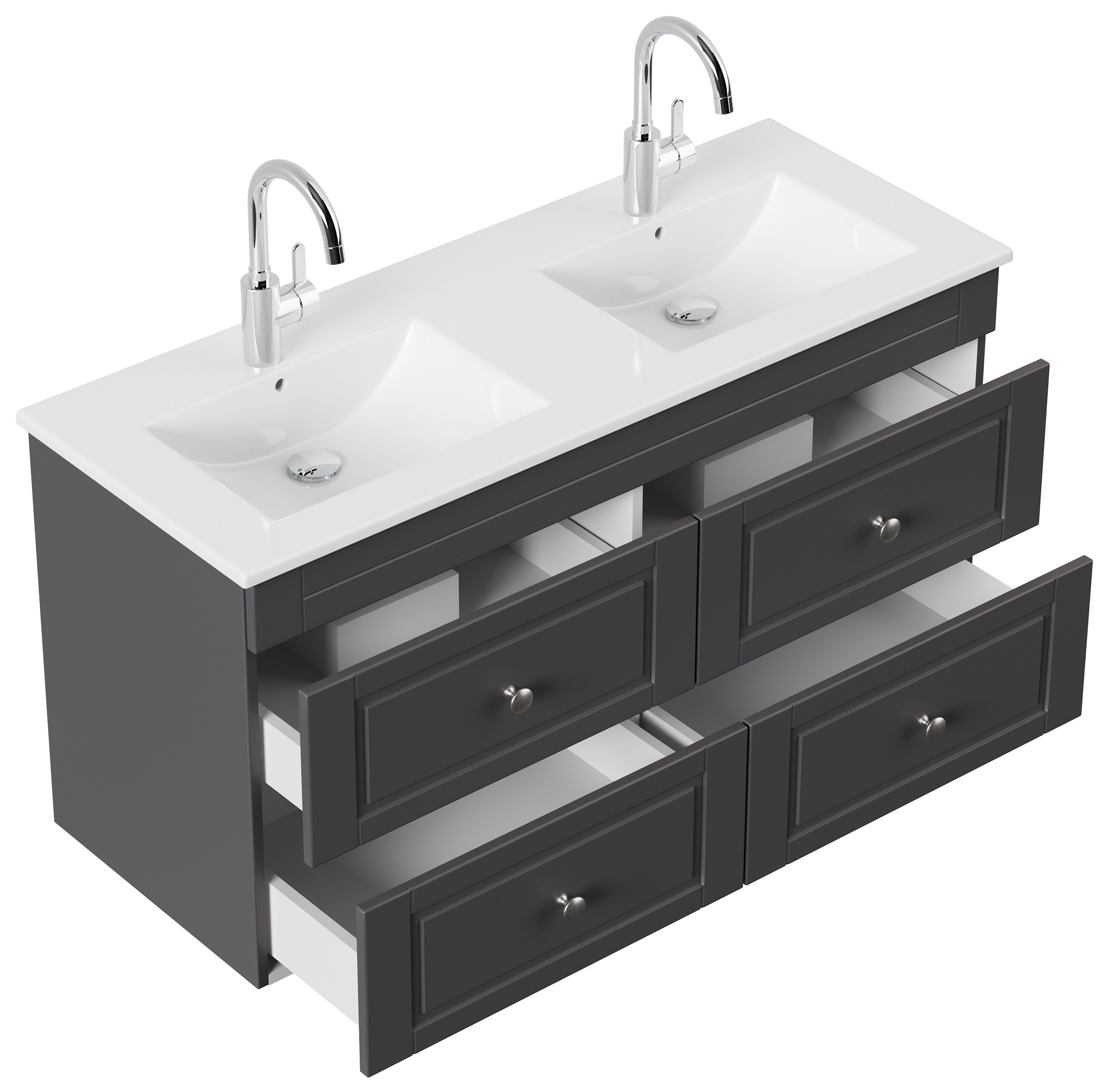 Badmöbel Helios Cottage Doppel-Waschbecken SoftClose anthrazit