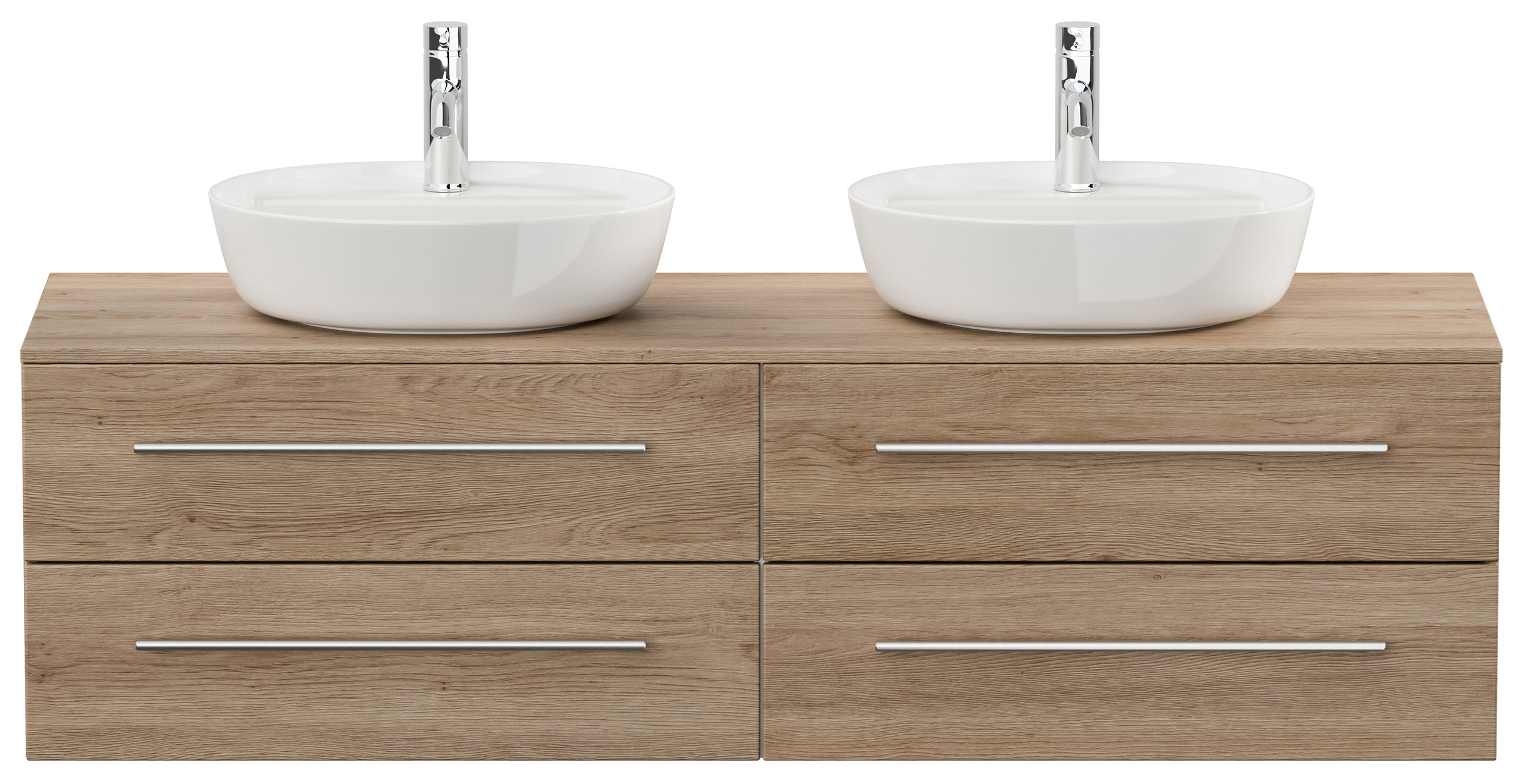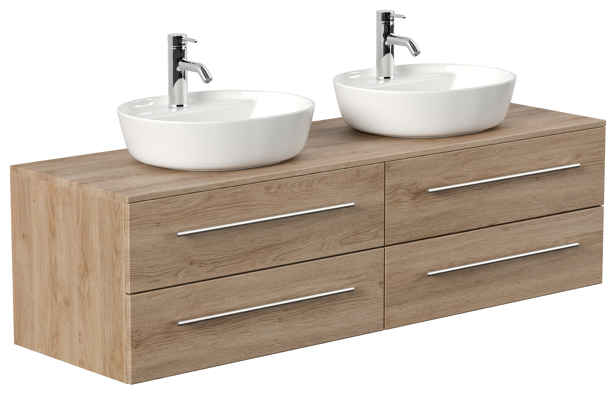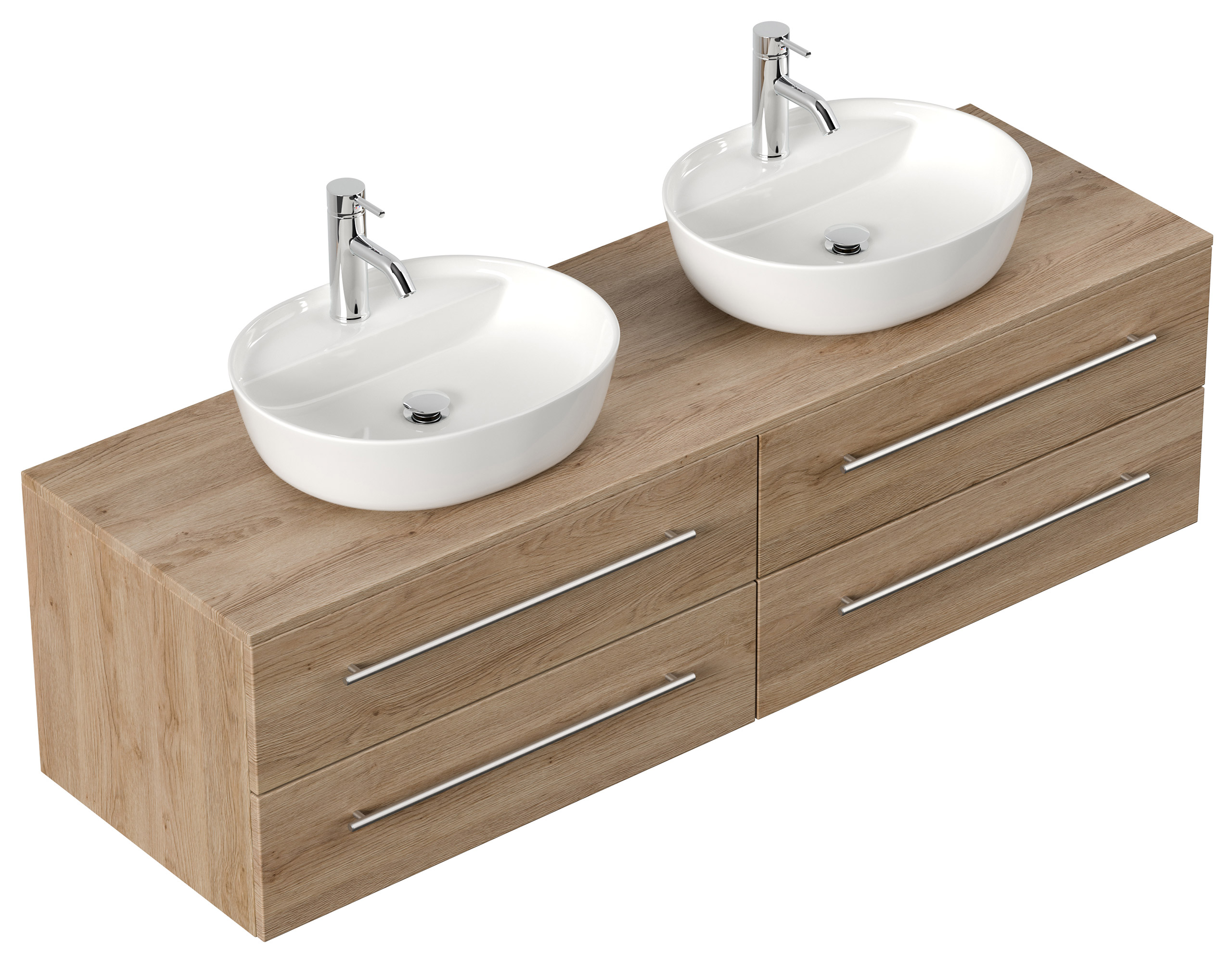 Badmöbel MORGAN A 160cm mit zwei Aufsatzwaschbecken eiche hell