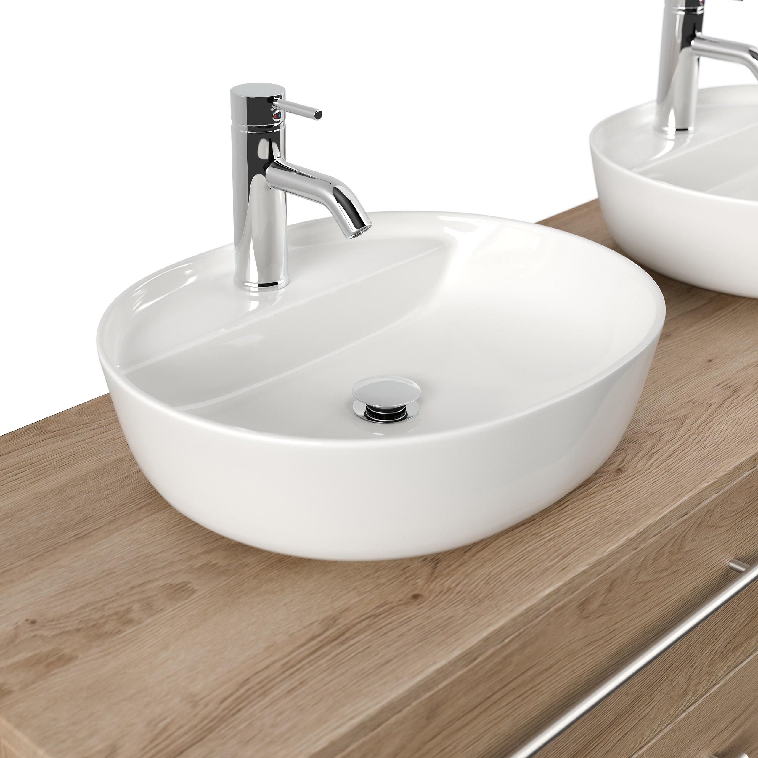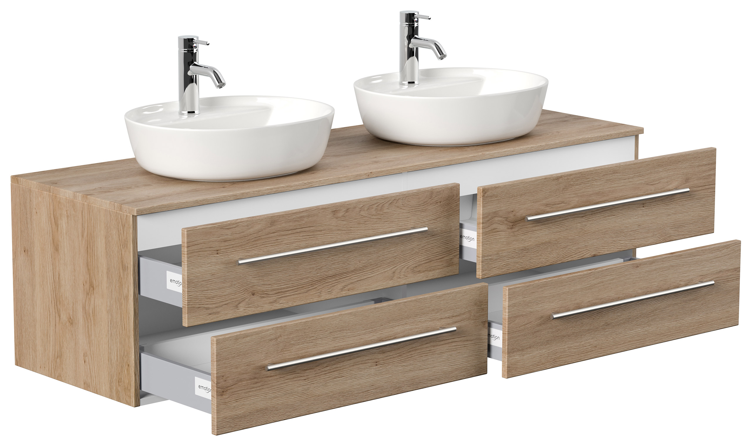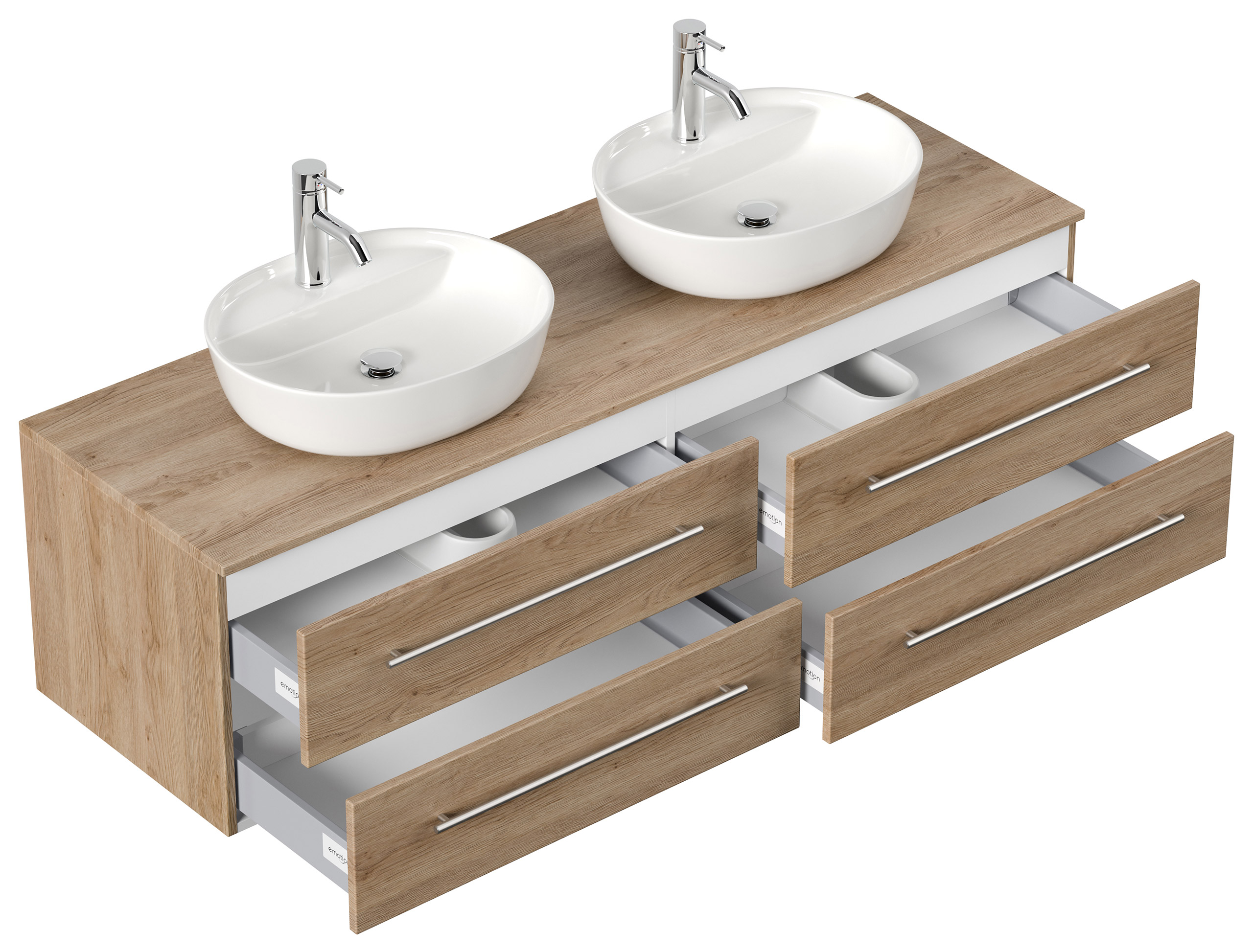 Badmöbel MORGAN A 160cm mit zwei Aufsatzwaschbecken eiche hell