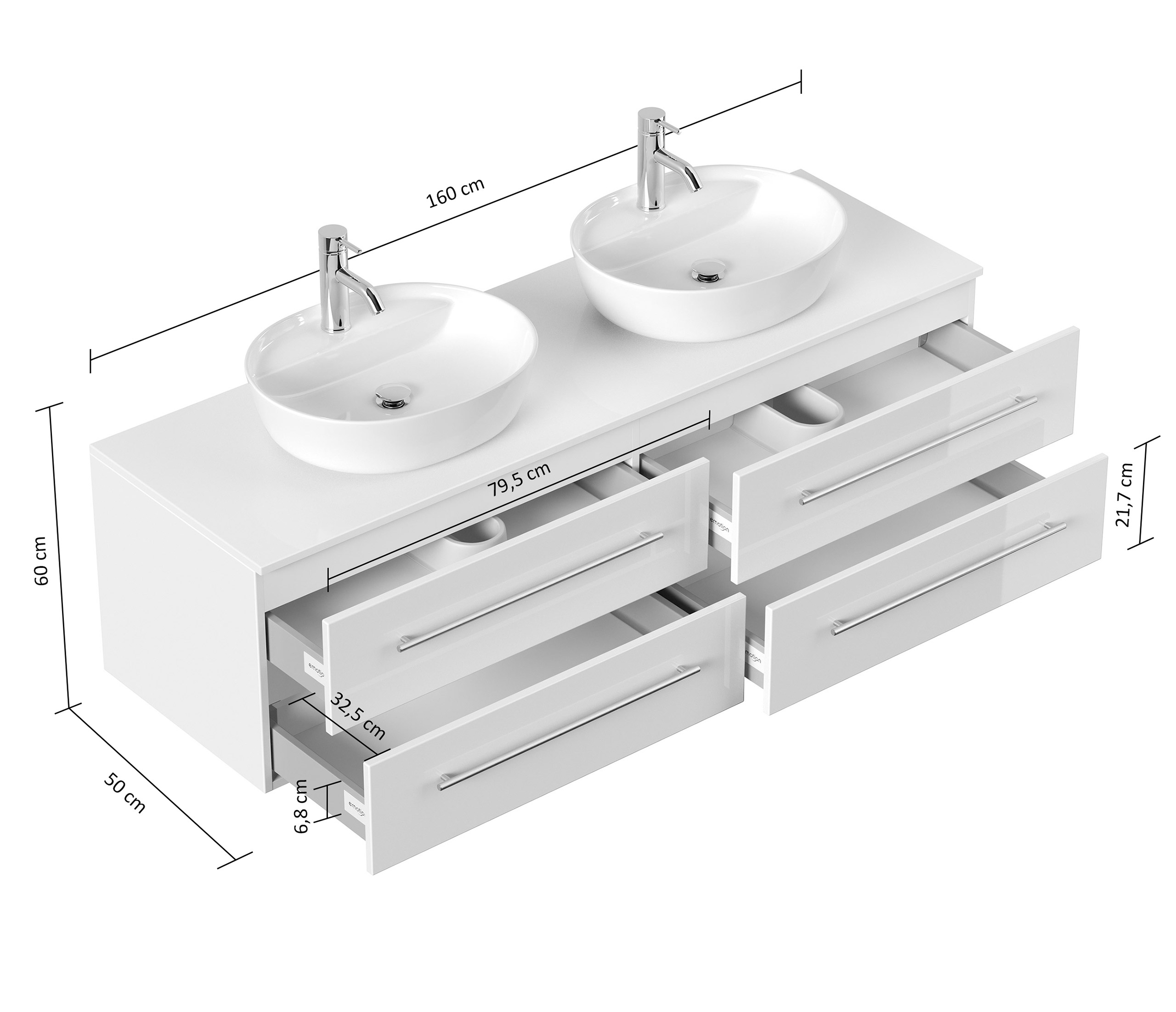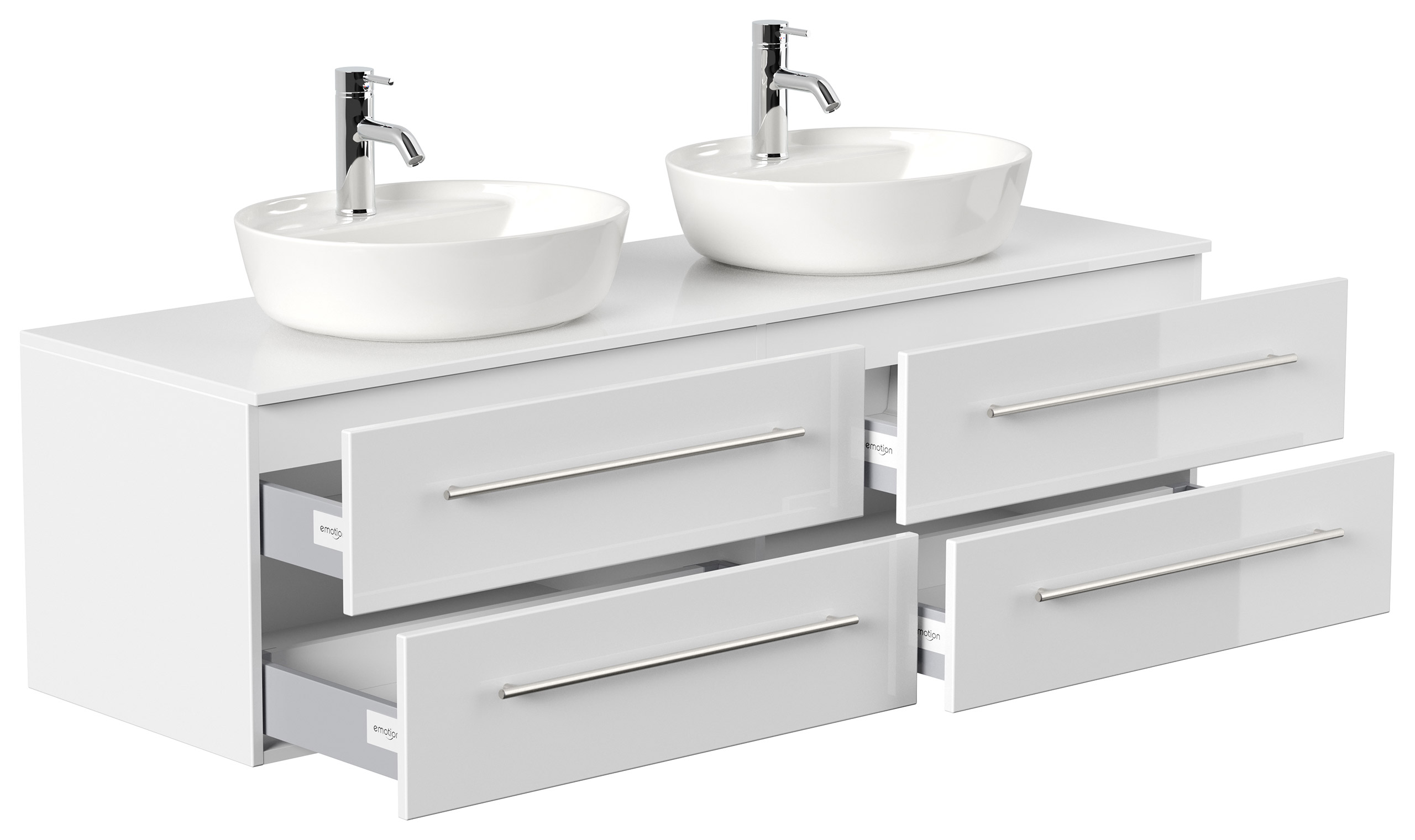 Badmöbel MORGAN A 160cm mit zwei Aufsatzwaschbecken weiß hochglanz