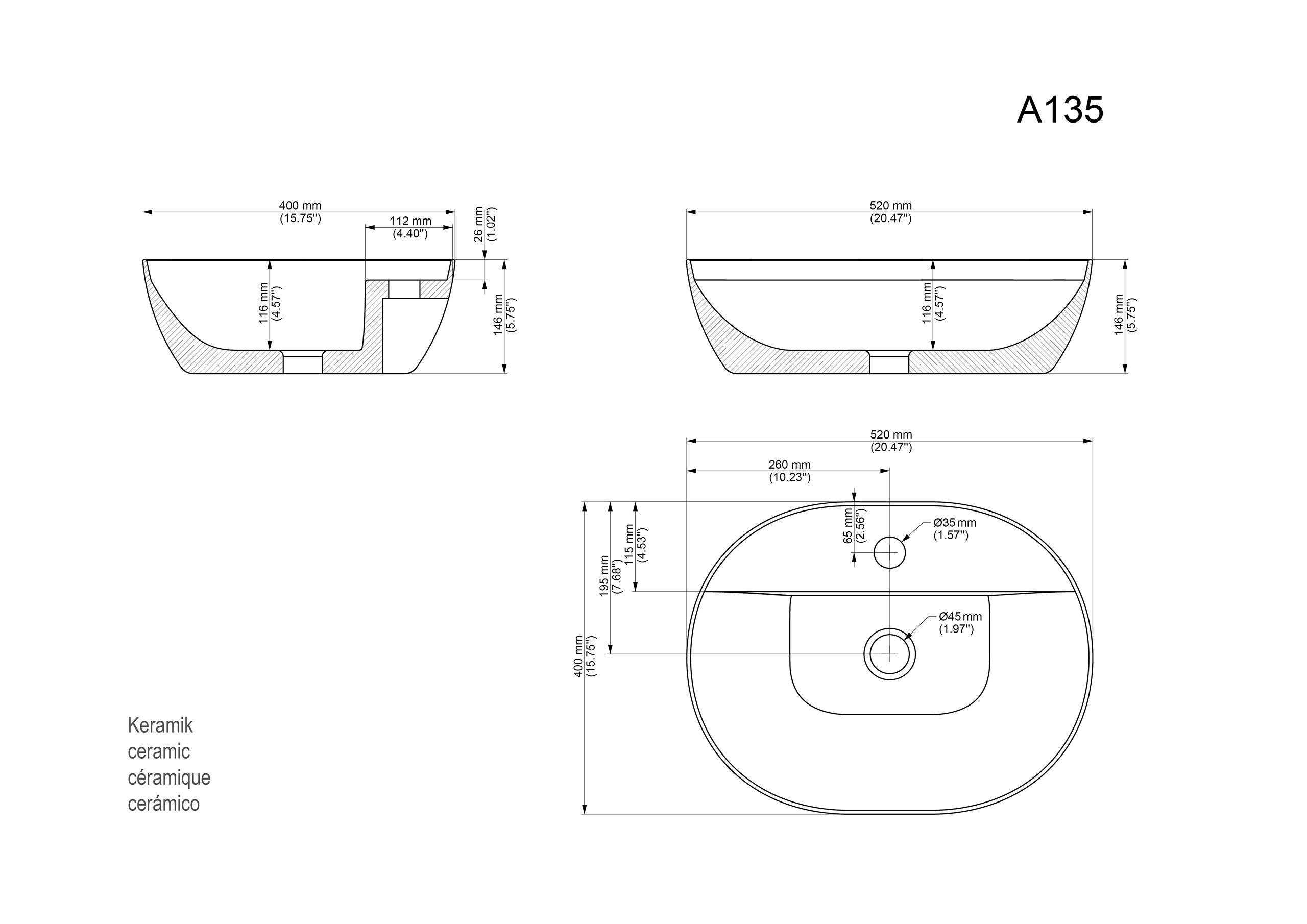 2x Keramik Aufsatzwaschbecken (B/H/T) 52 x 14,6 x 40 cm