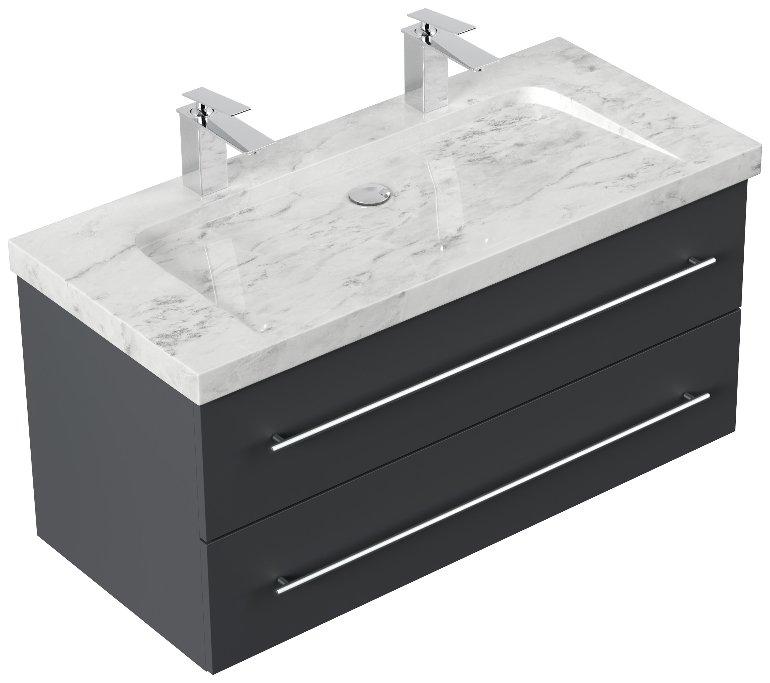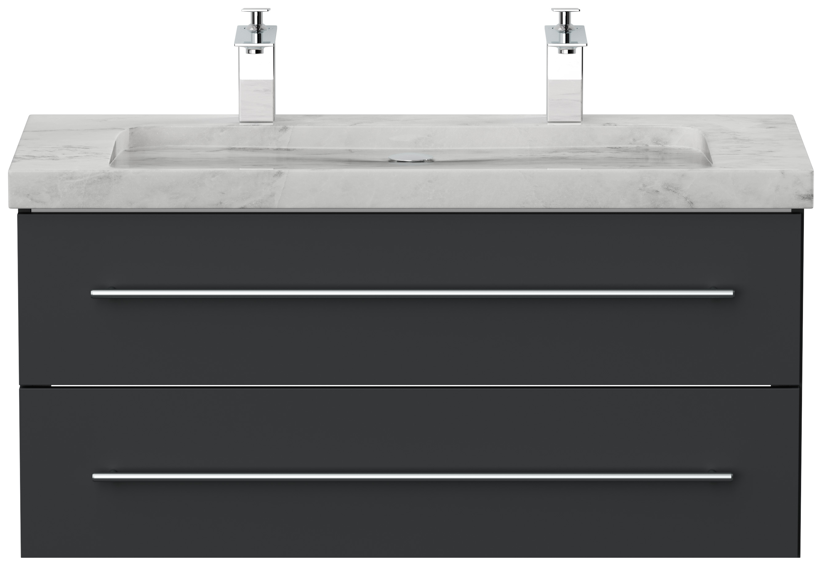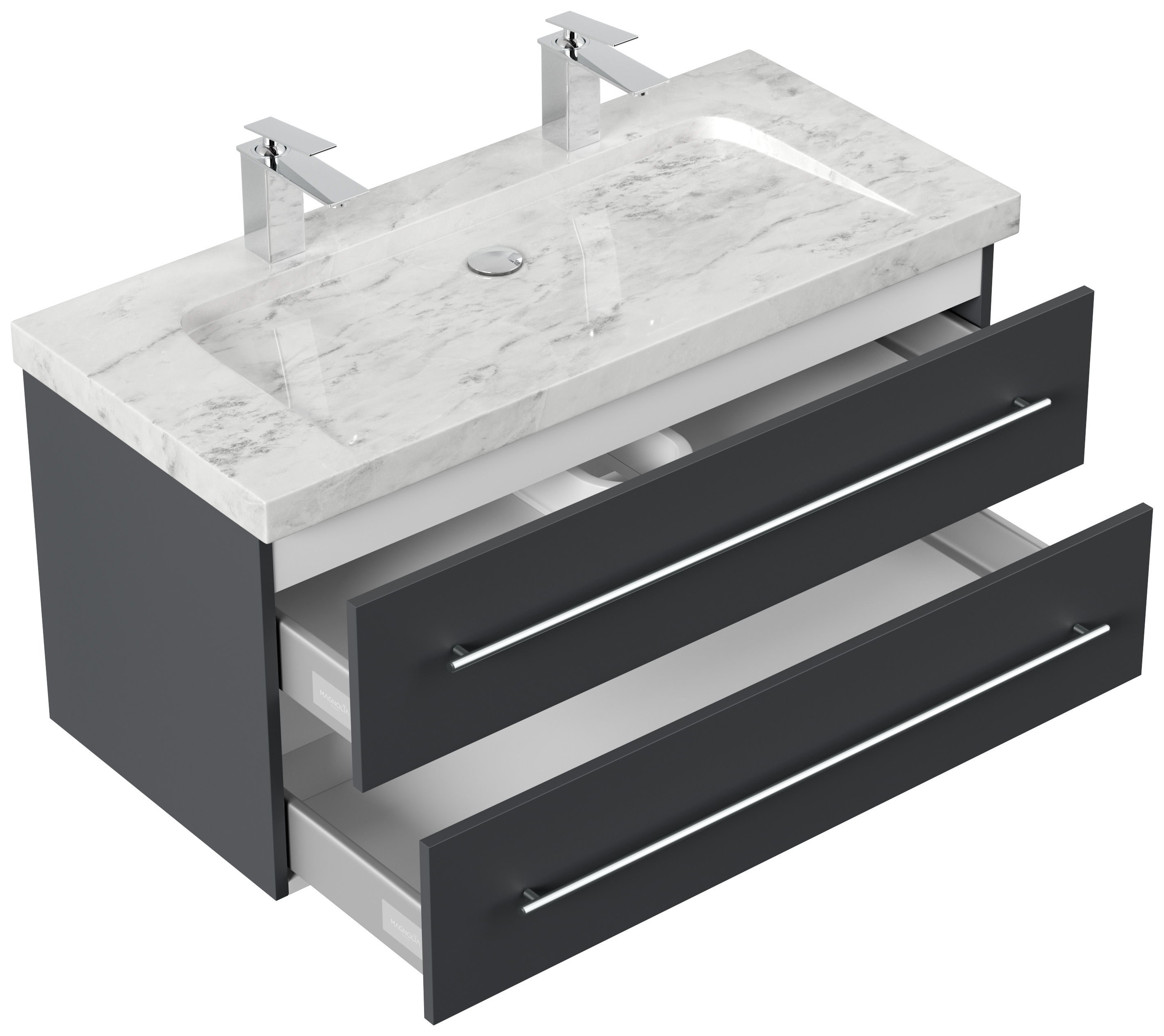 Badmöbel Marmor Carrara White Damo 100 cm 2 Hahnlöcher SoftClose grafit