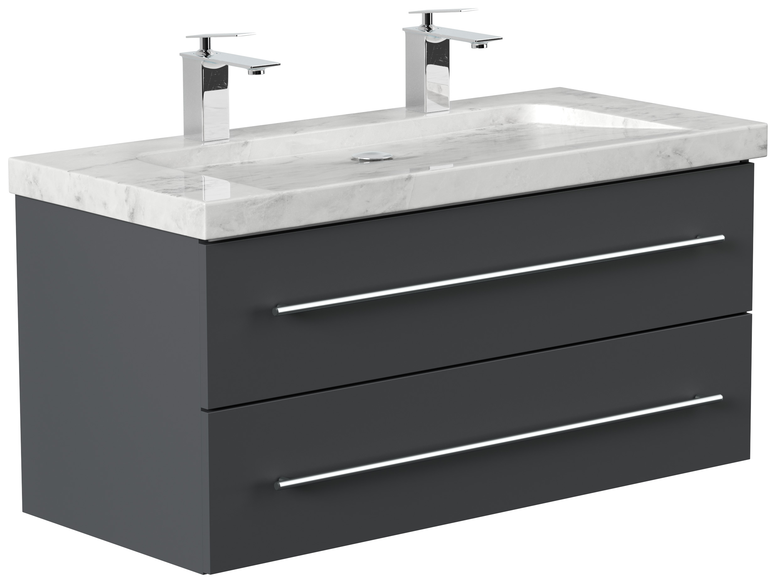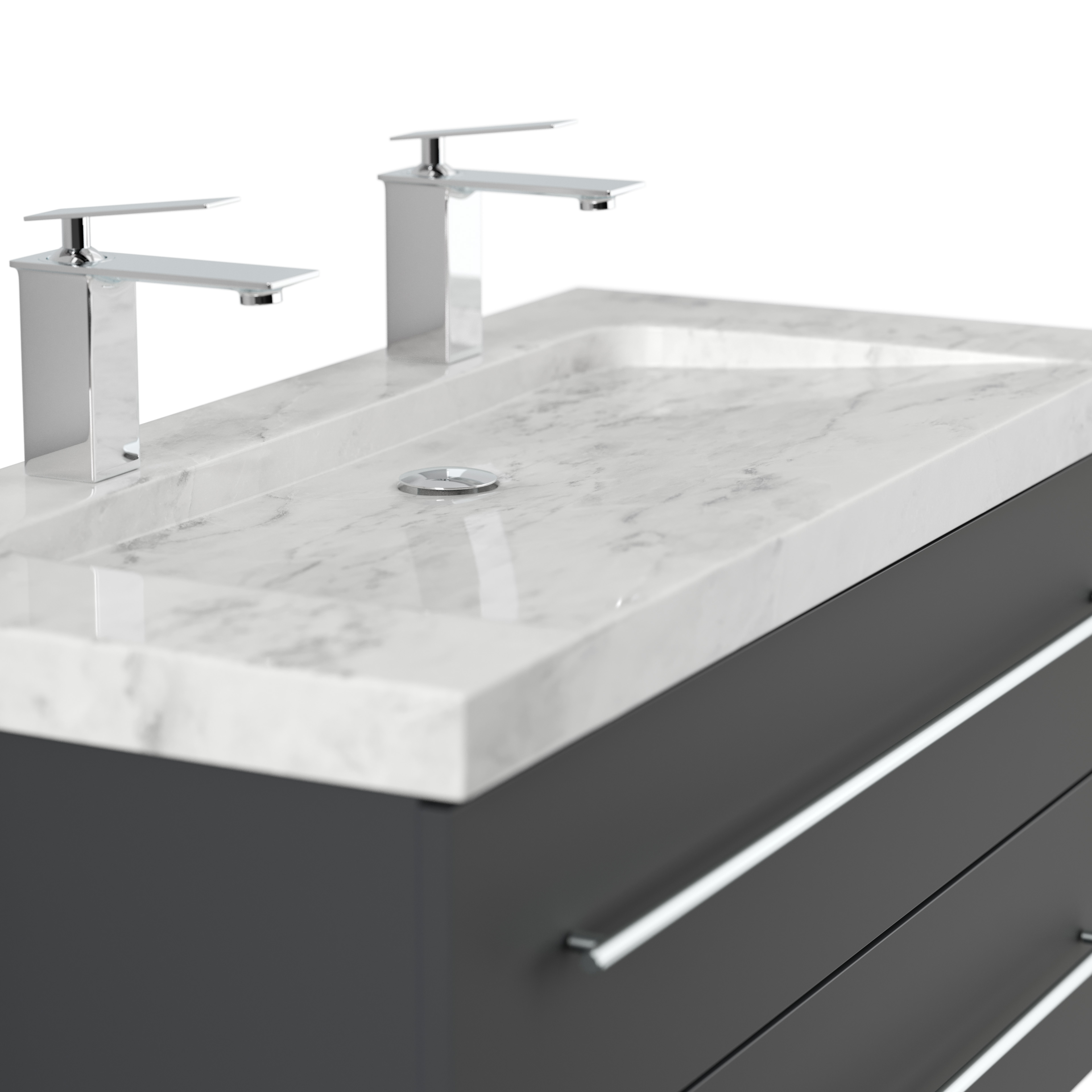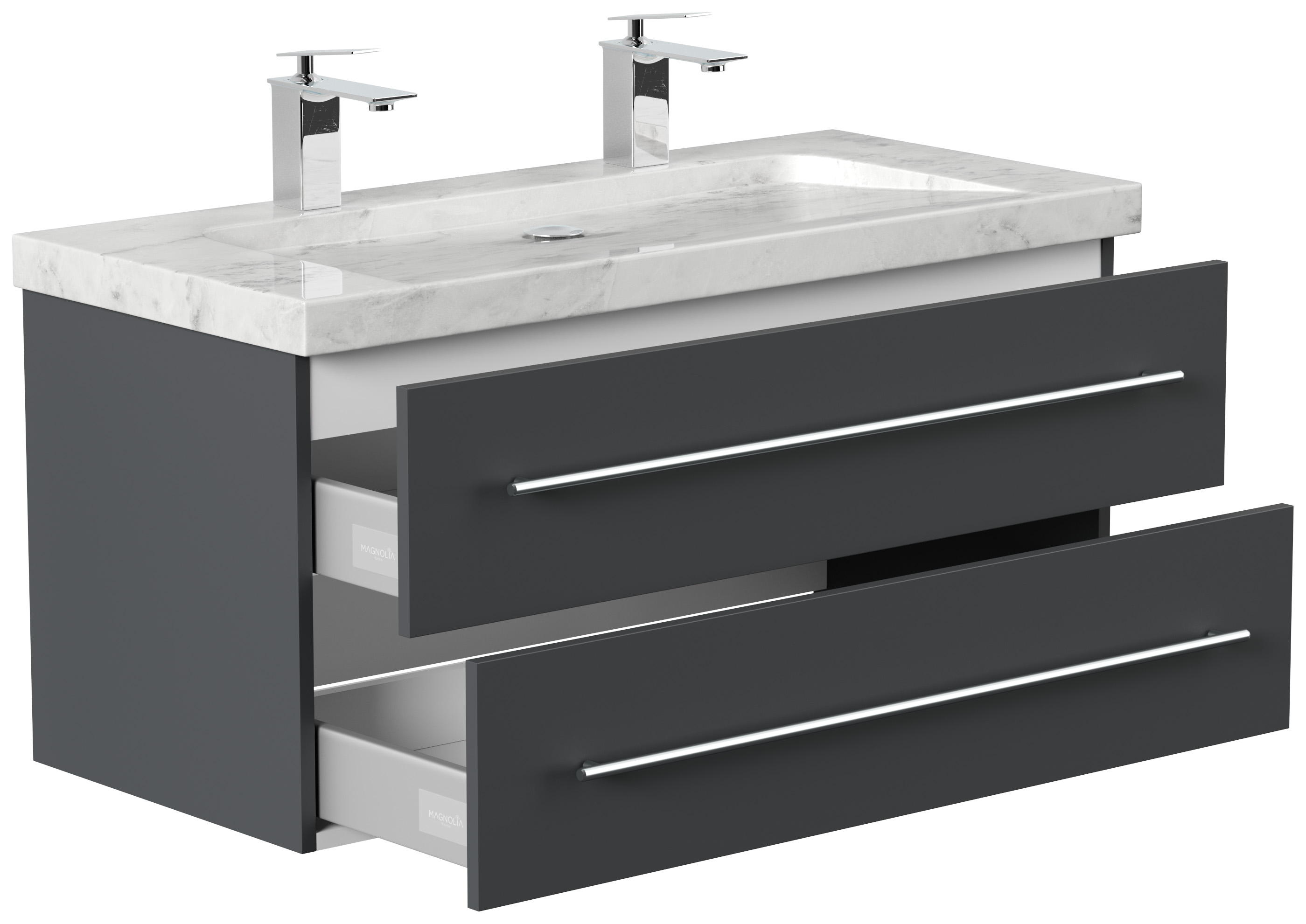 Badmöbel Marmor Carrara White Damo 100 cm 2 Hahnlöcher SoftClose grafit