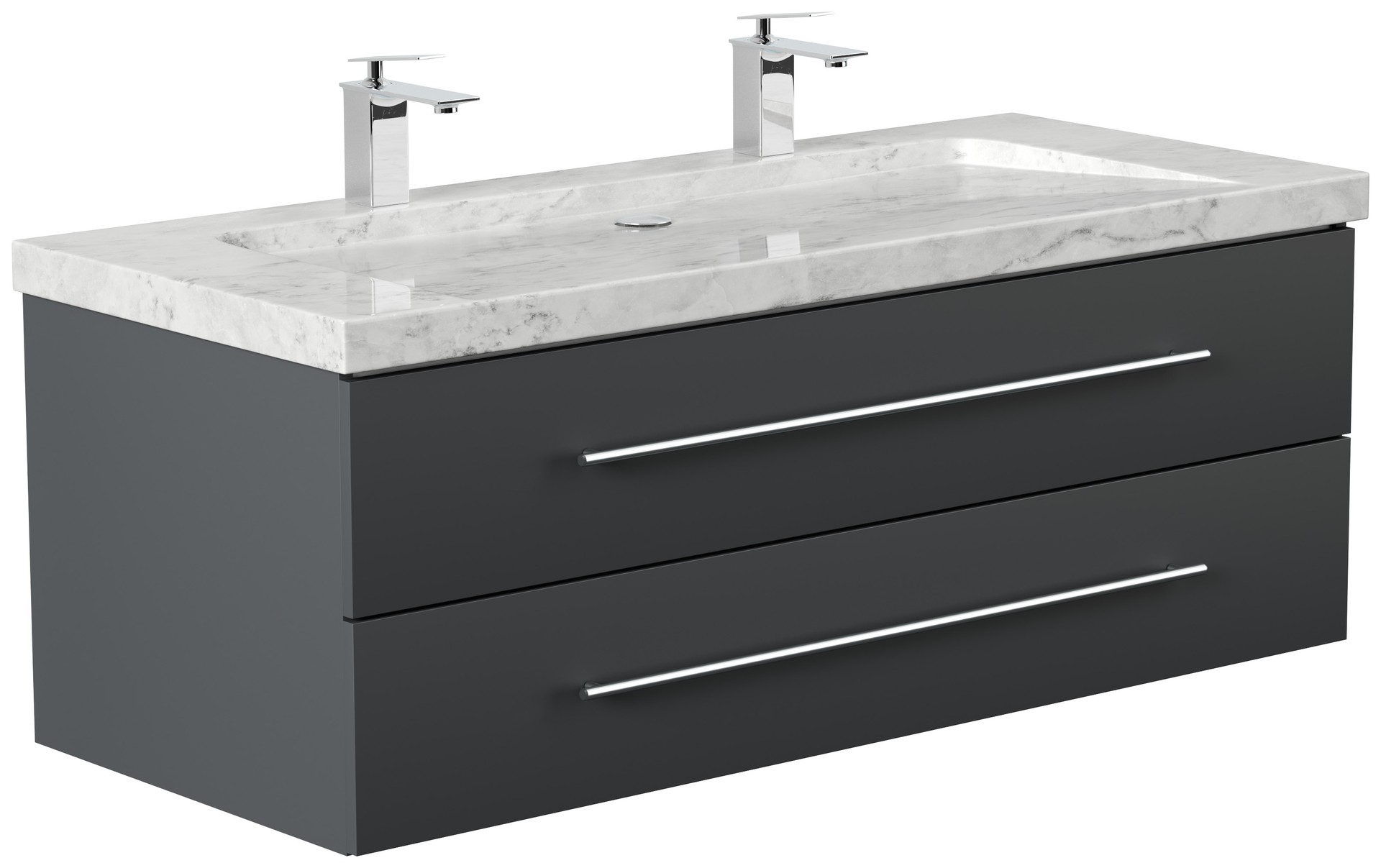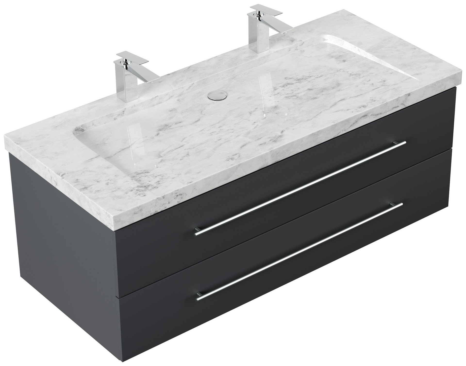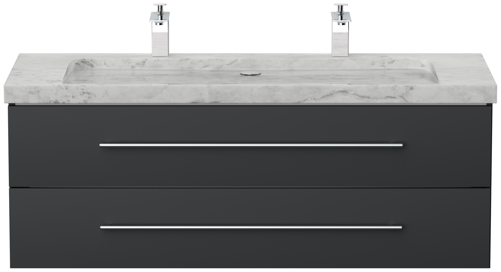 Badmöbel Marmor Carrara White Damo 130 cm 2 Hahnlöcher SoftClose grafit
