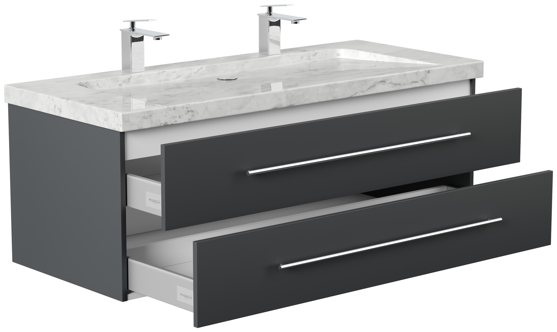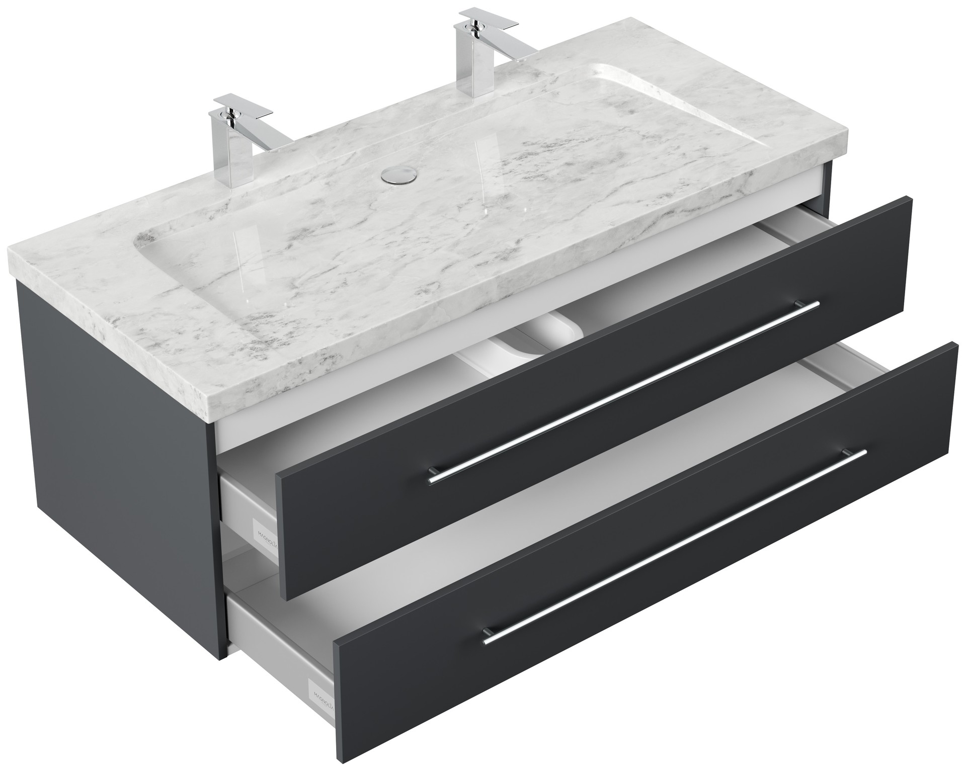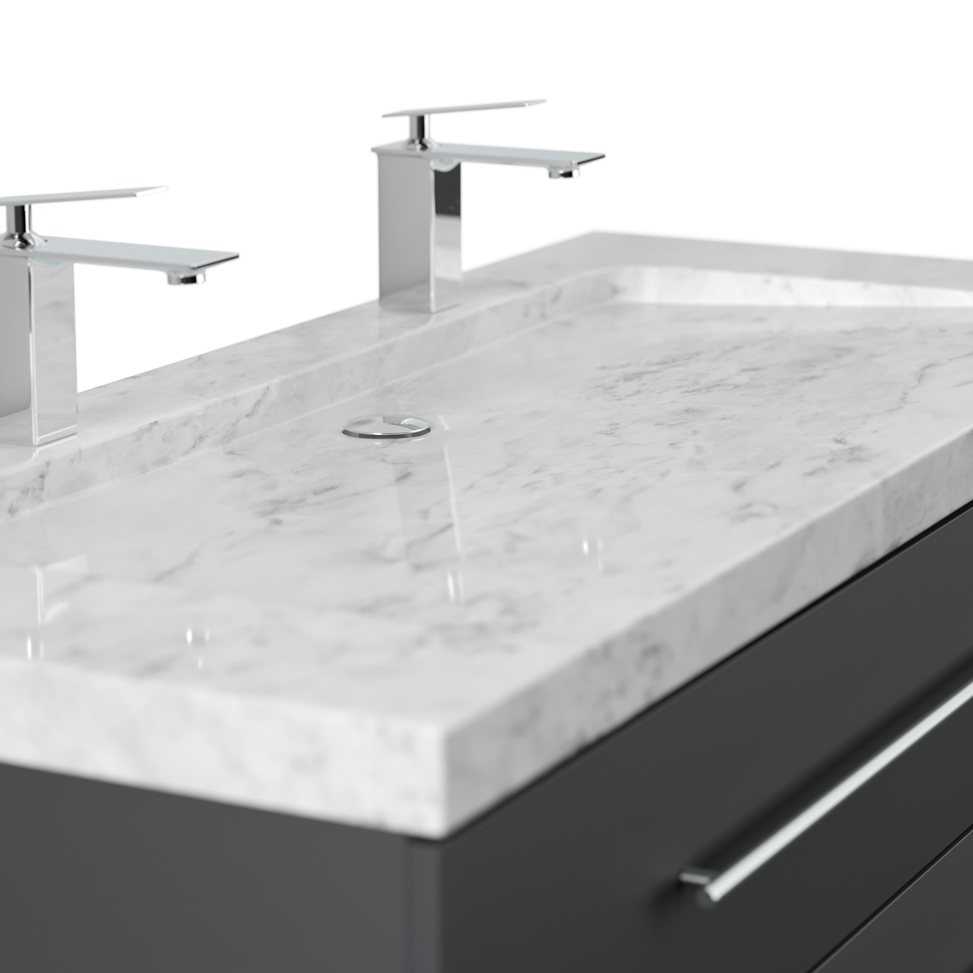 Badmöbel Marmor Carrara White Damo 130 cm 2 Hahnlöcher SoftClose grafit
