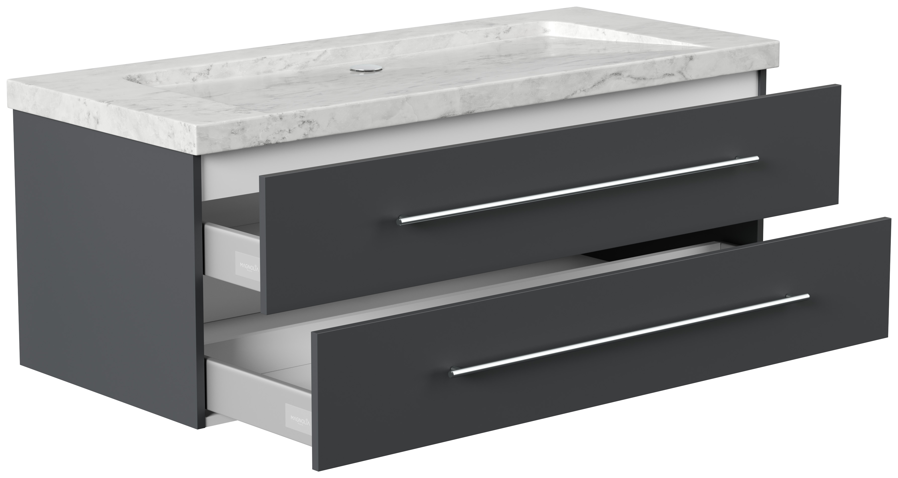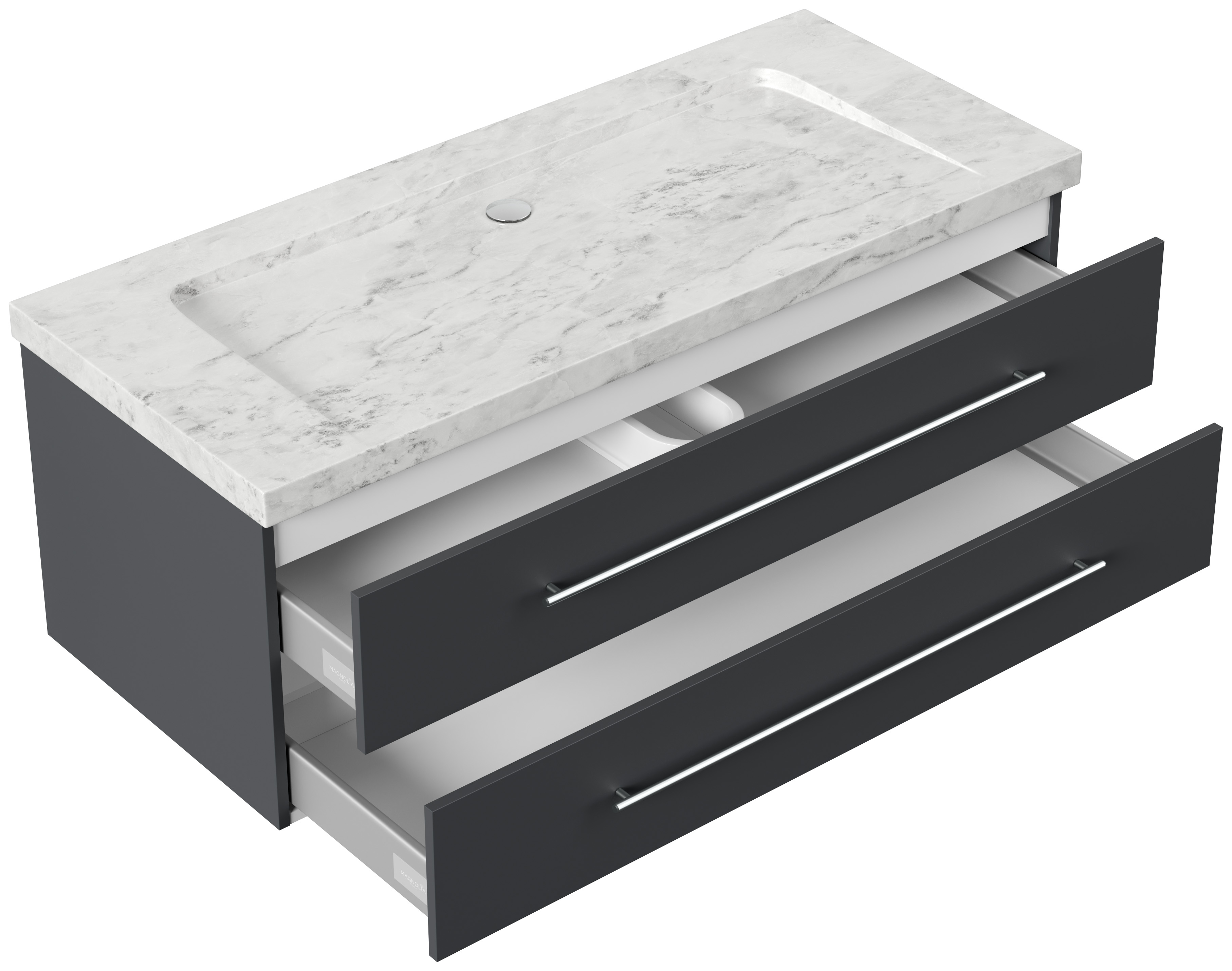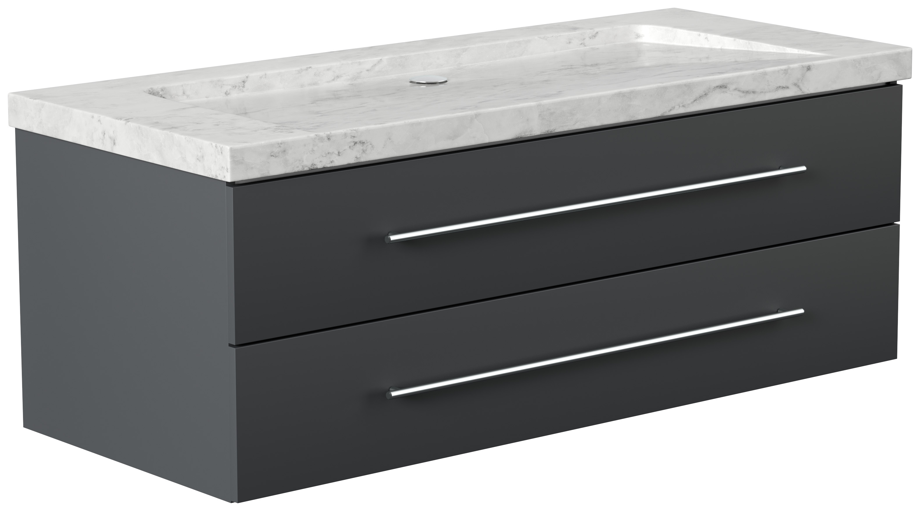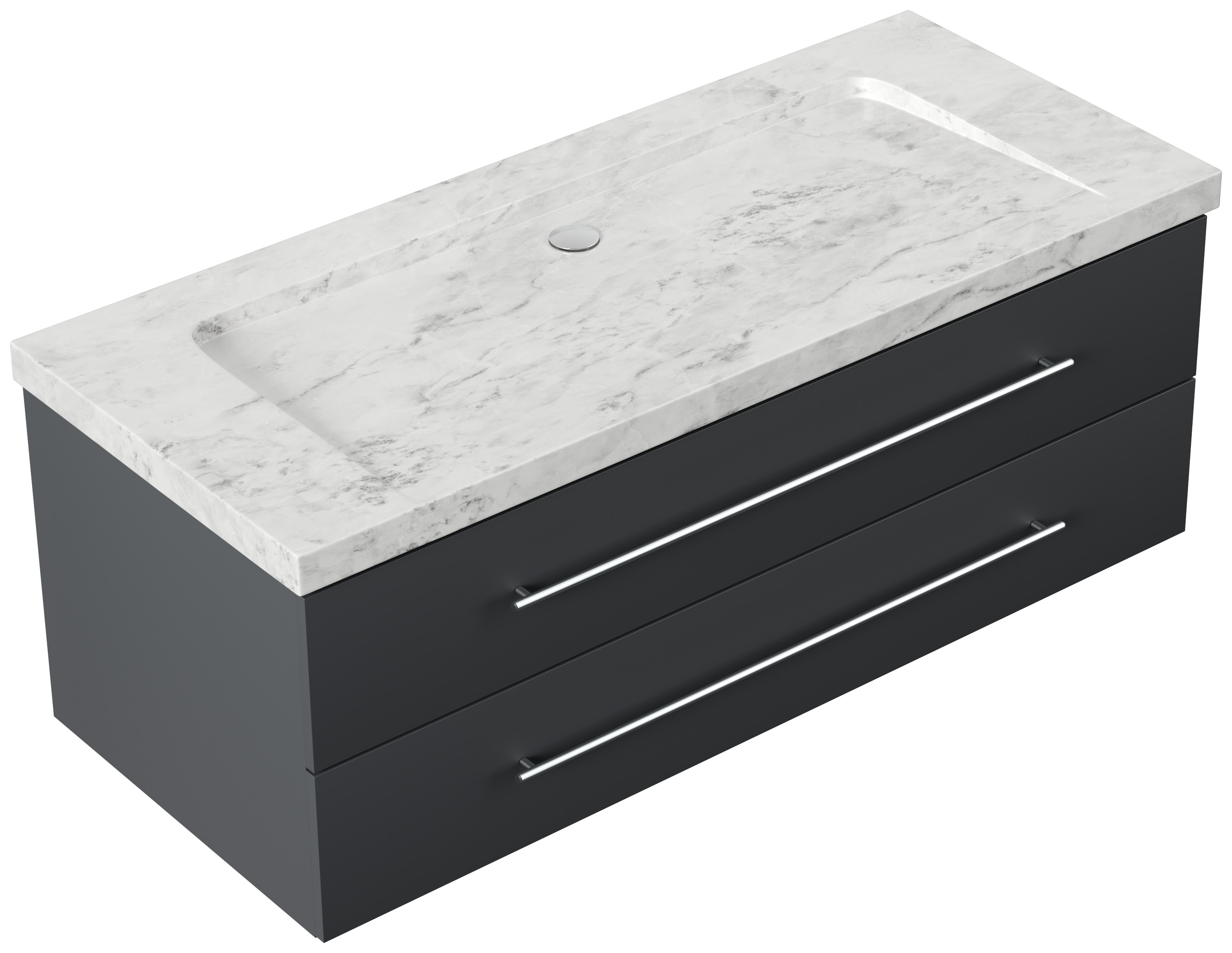 Badmöbel Marmor Carrara White Damo 130 cm ohne Hahnloch SoftClose grafit