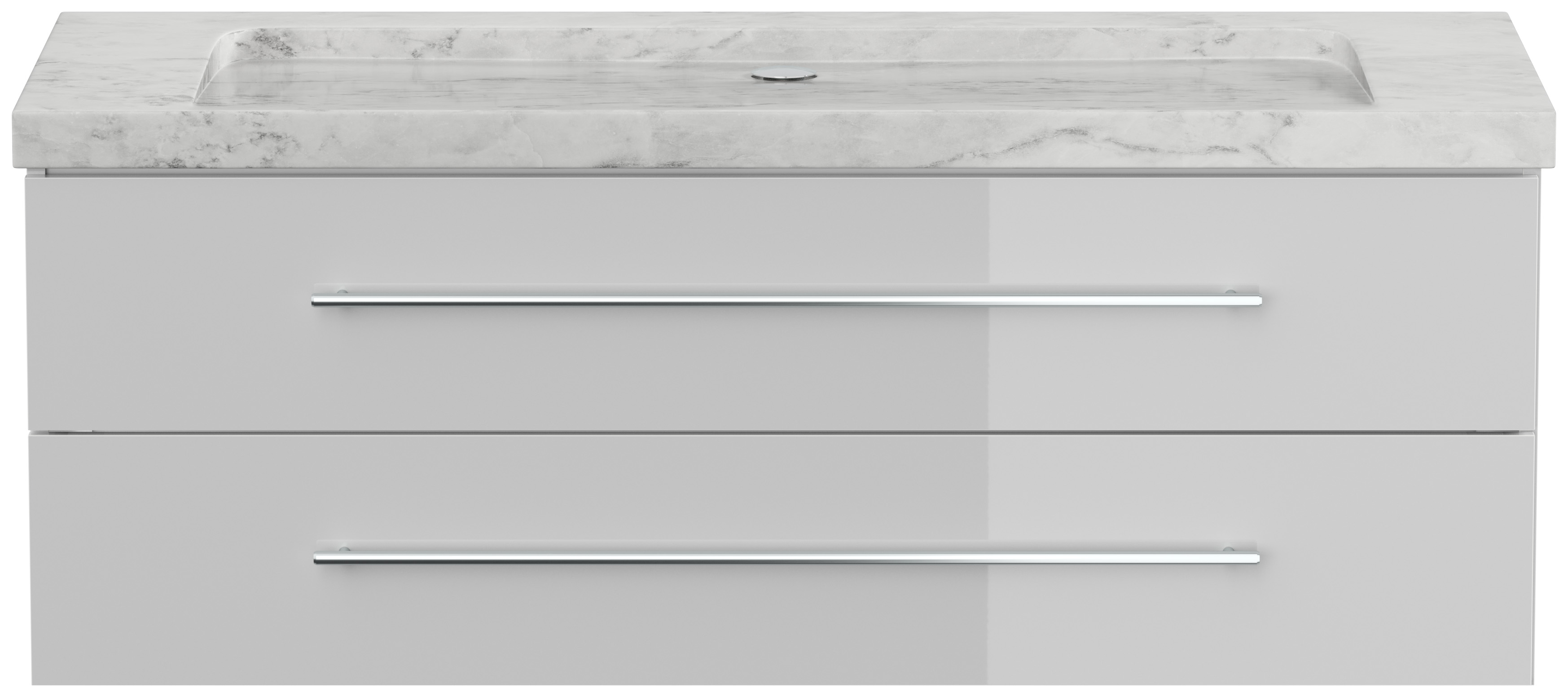 Badmöbel Marmor Carrara White Damo 130 cm ohne Hahnloch SoftClose weiß hochglanz