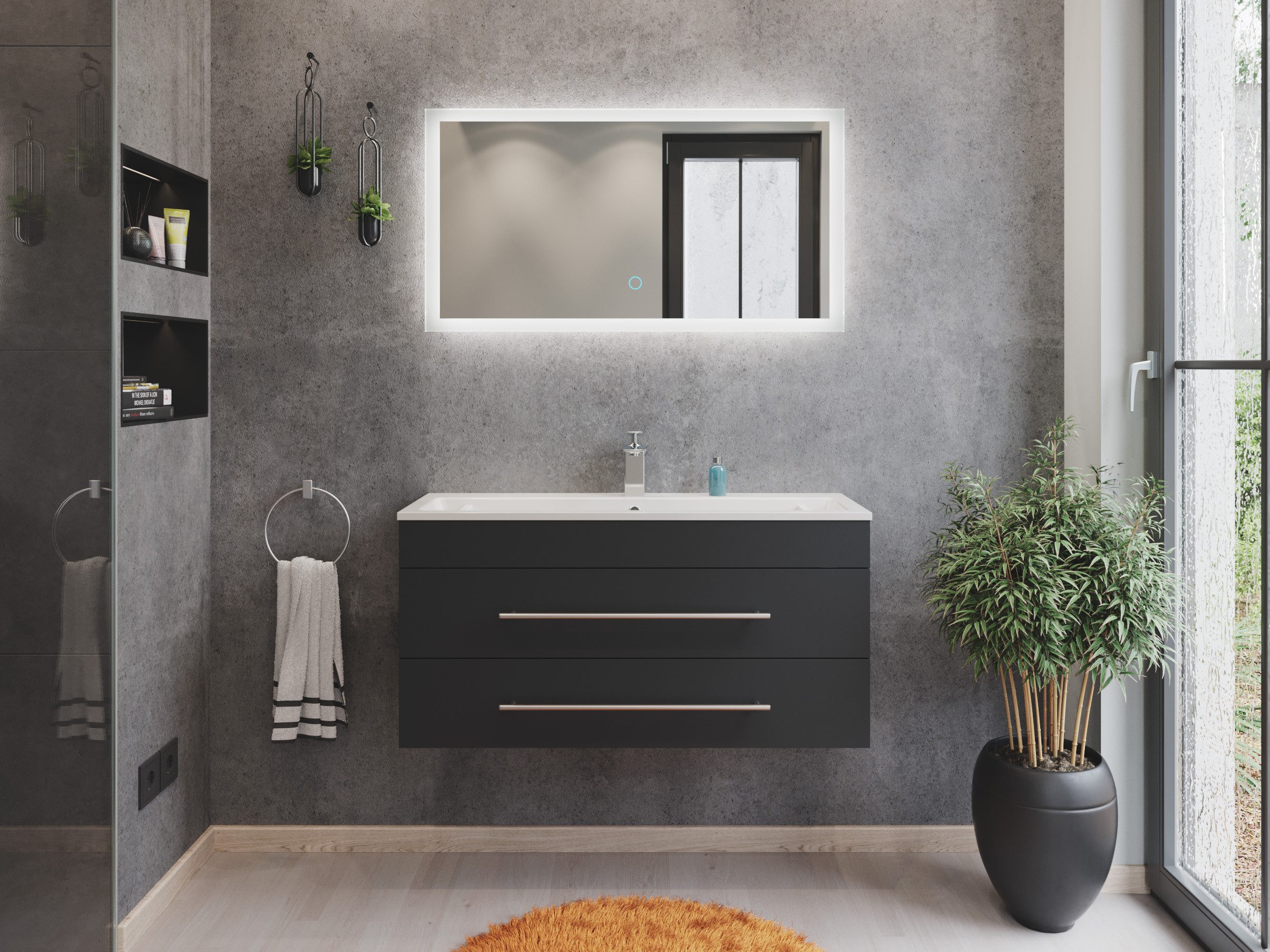 Badmöbel Mars 1000 2-teilig mit LED Spiegel SlimLine grafit