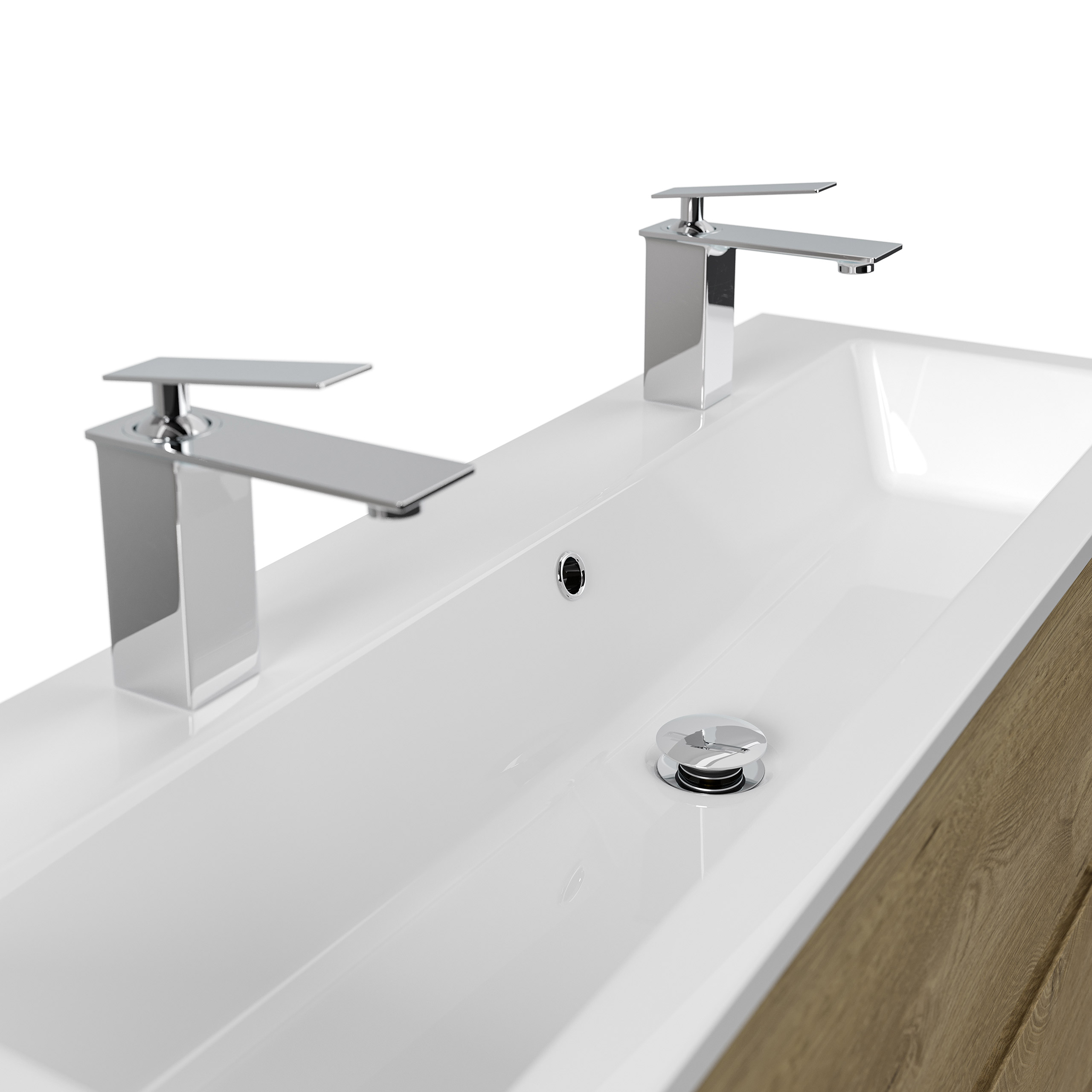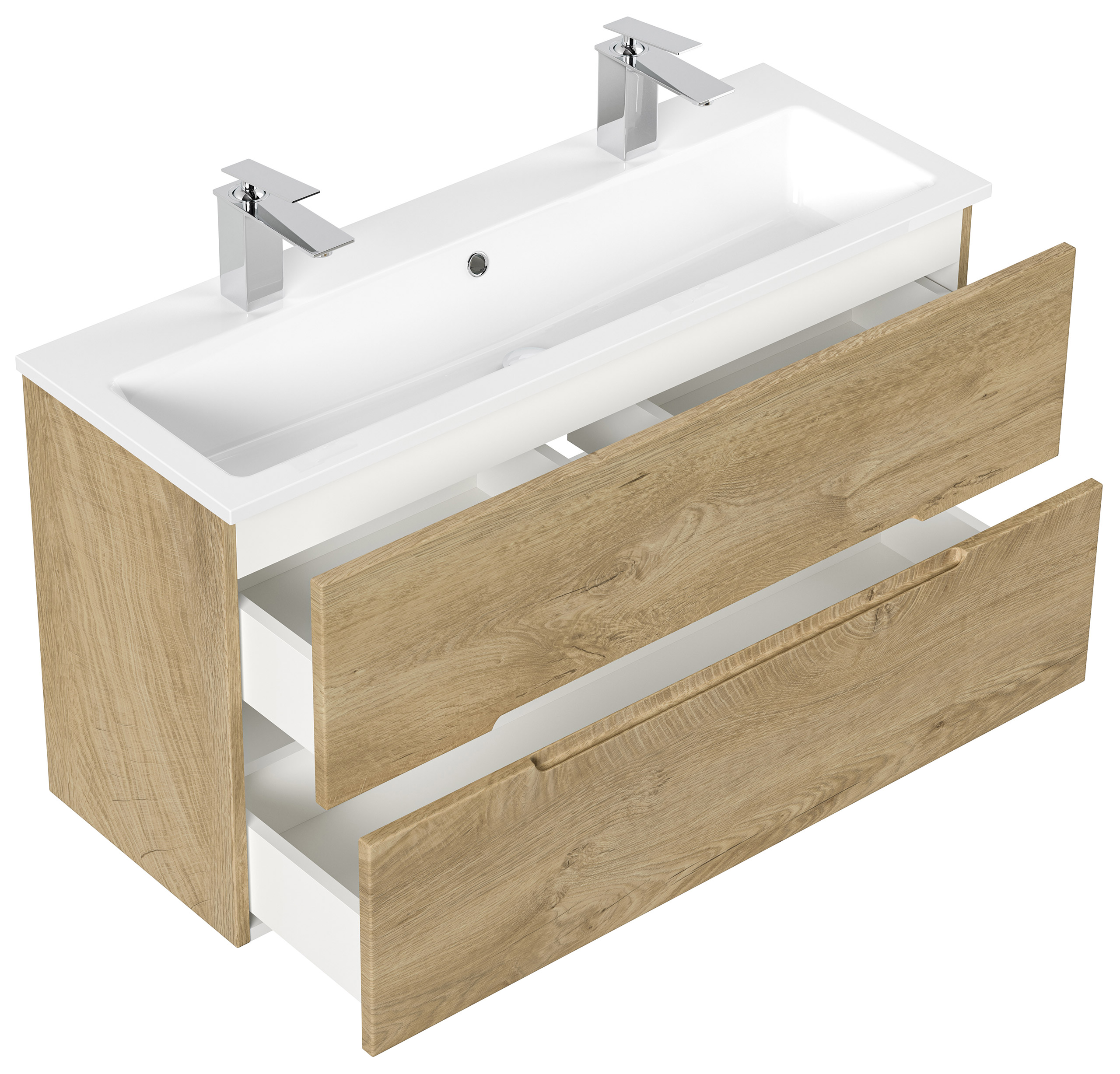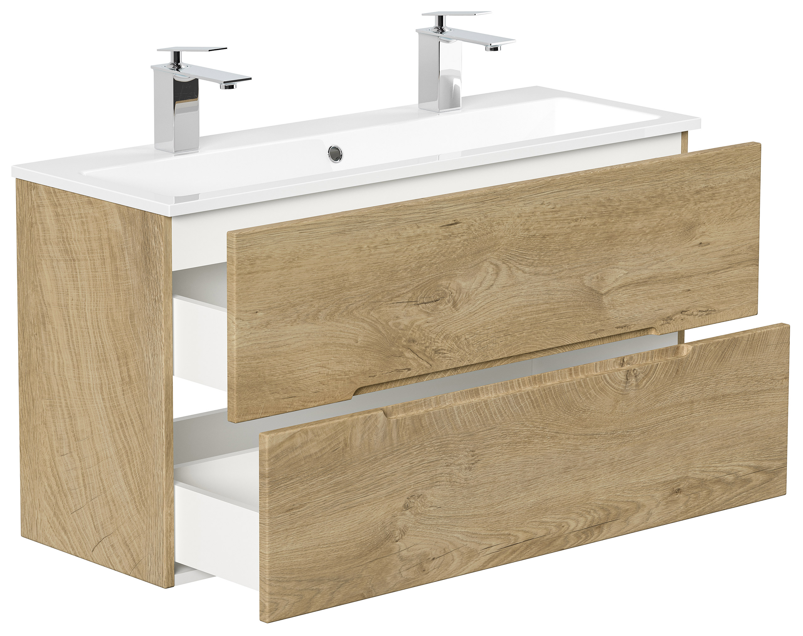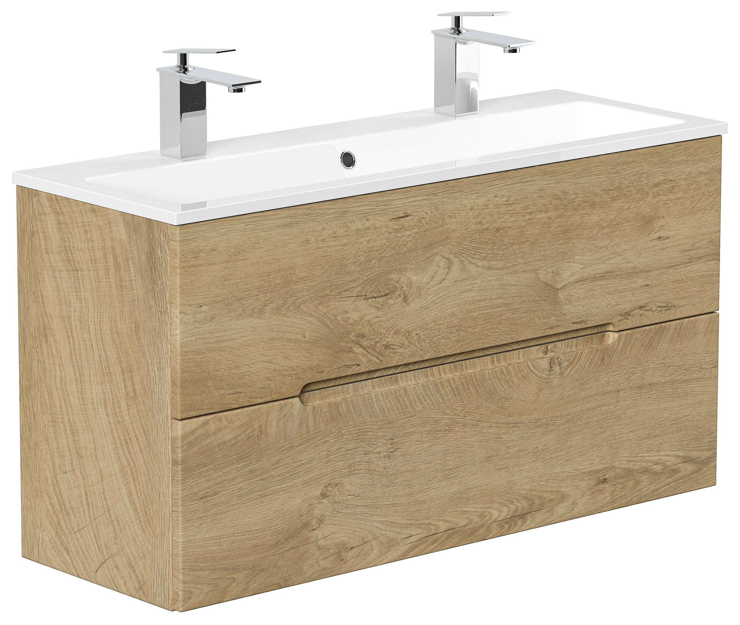 Badmöbel Mars 1000 SlimLine, 2-Hahnloch SoftClose Schubladen eiche klassik