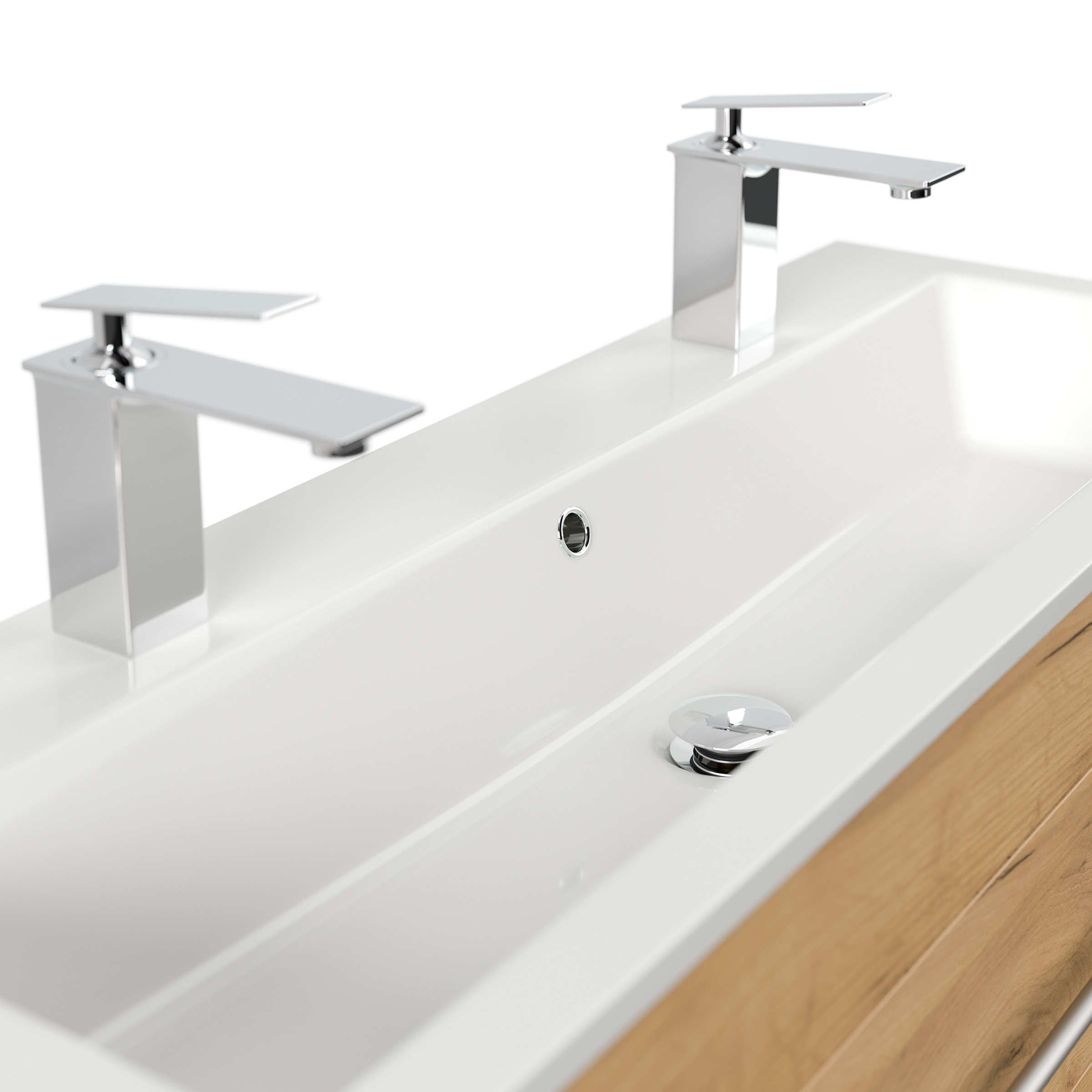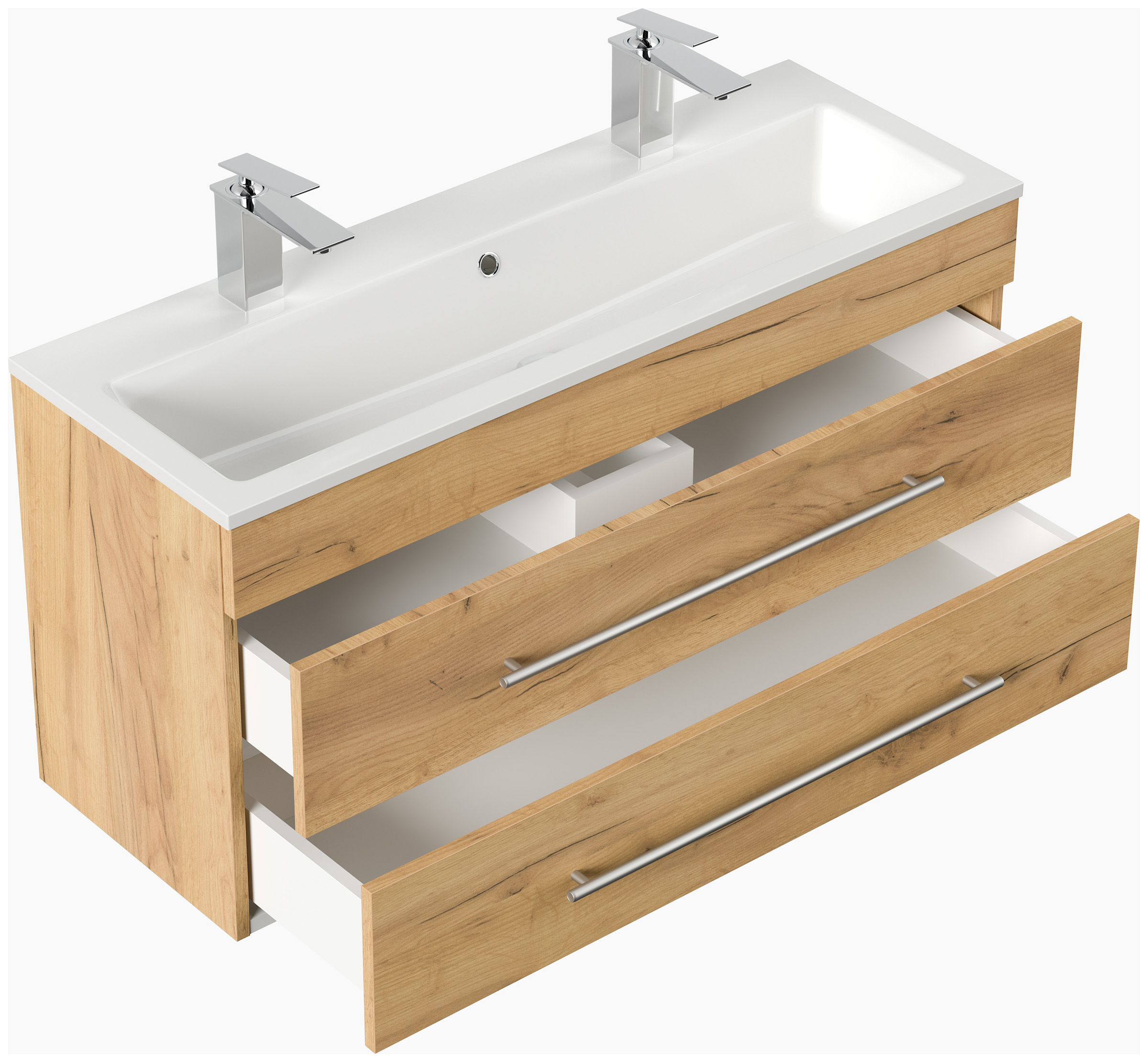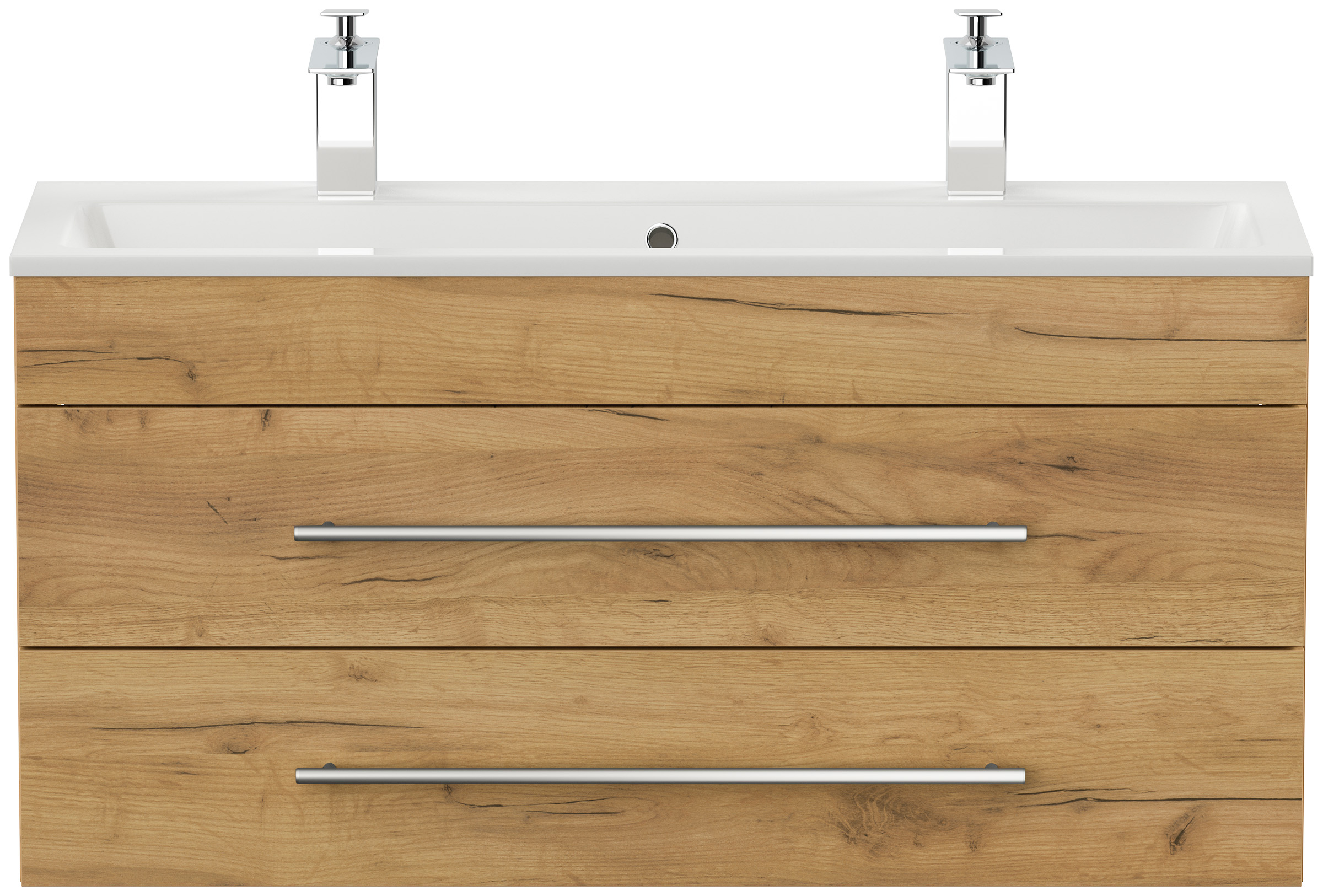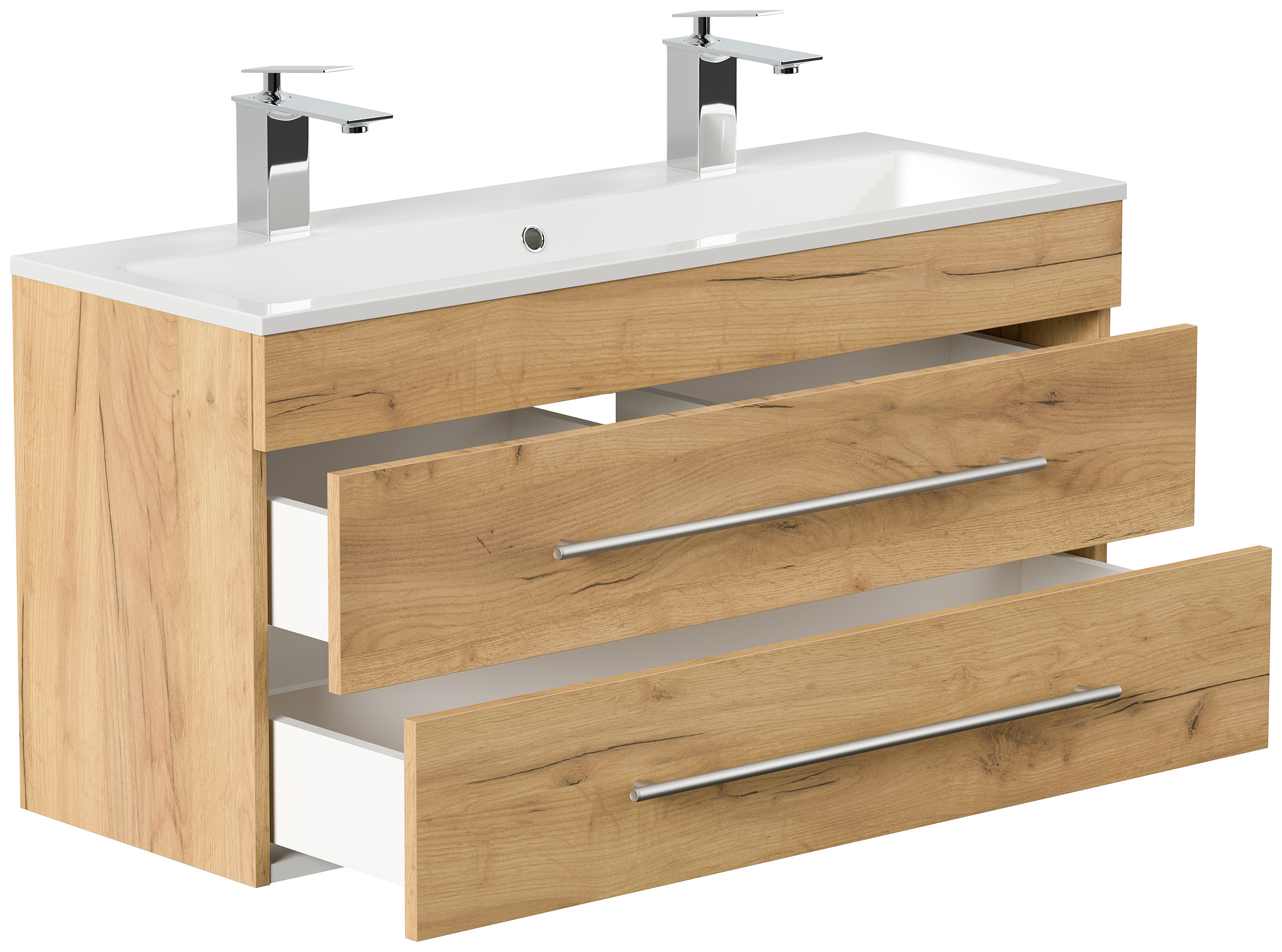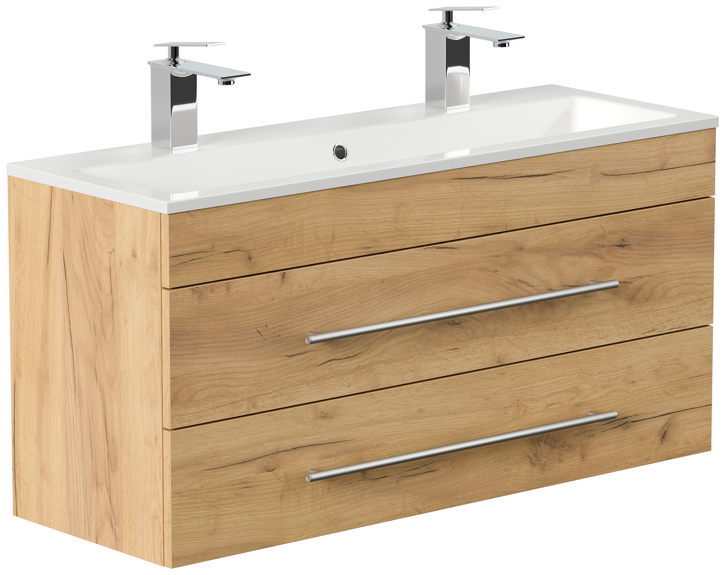 Badmöbel Mars 1000 für 2 Hähne 100x36cm mit 2 SoftClose Schubladen eiche gold