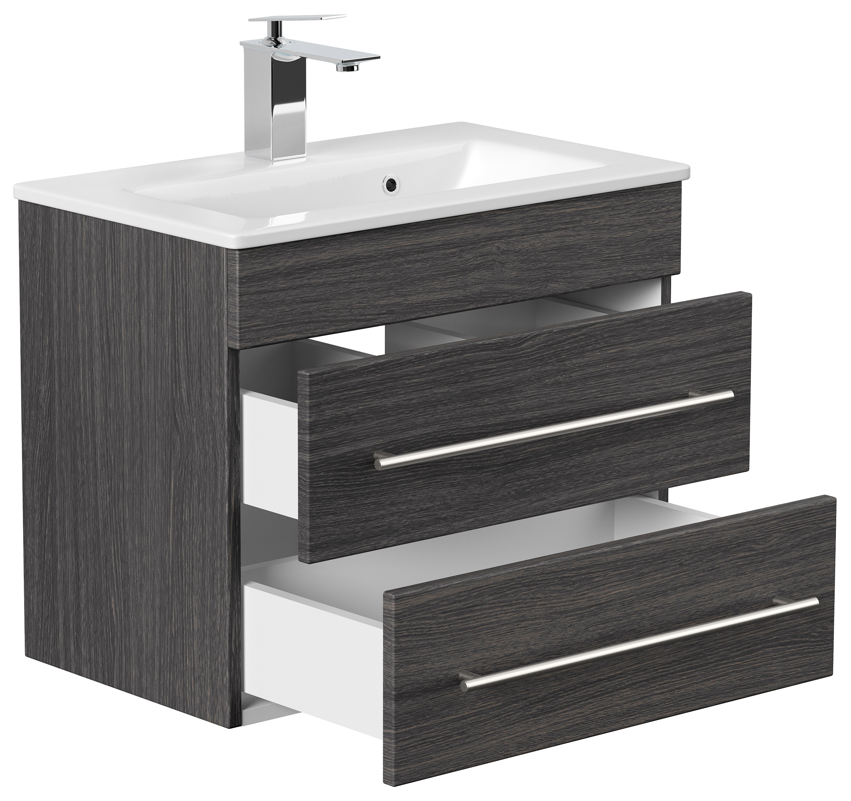 Badmöbel Mars 600 SlimLine 60x36cm mit 2 SoftClose Schubladen anthrazit gemasert