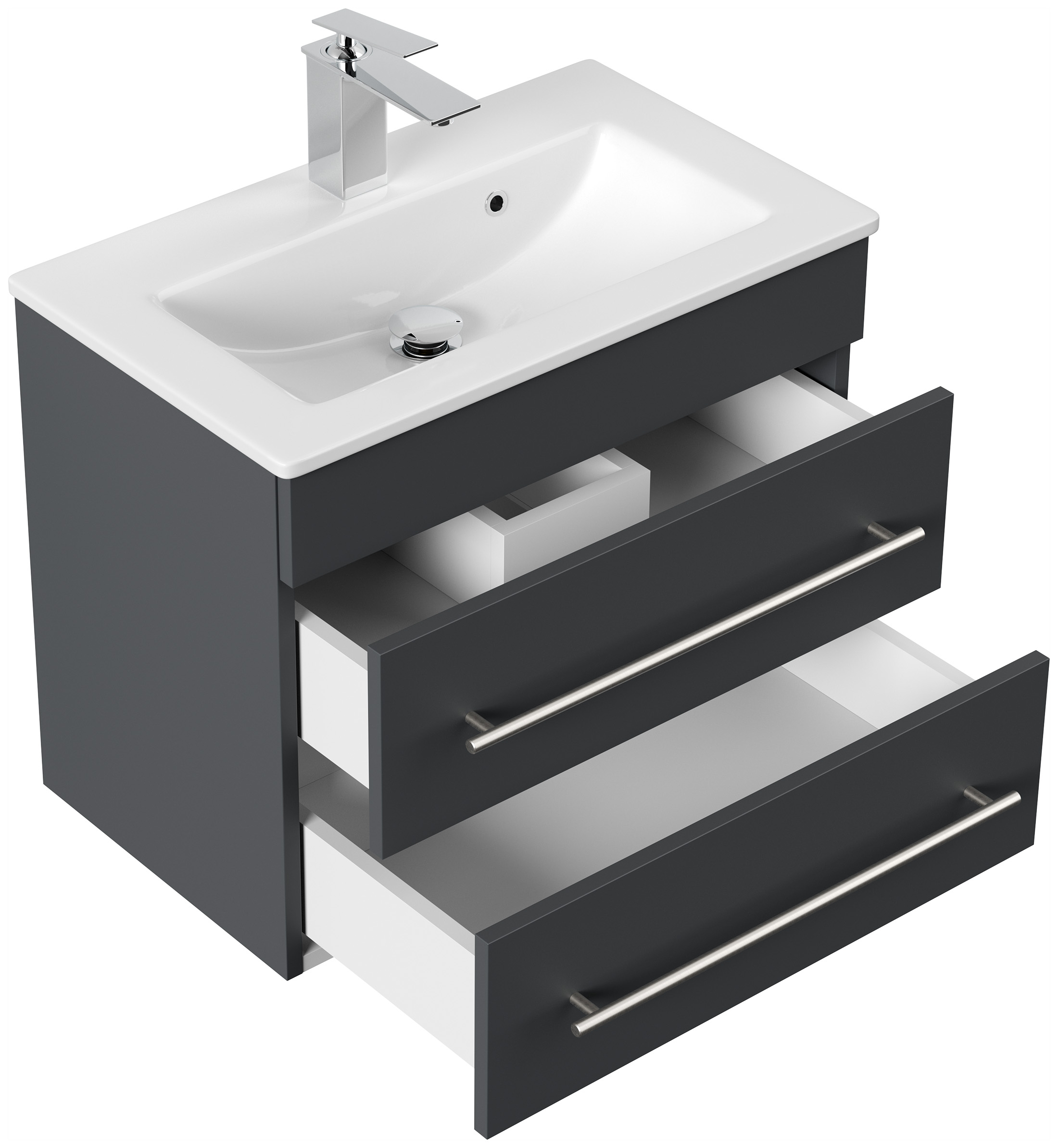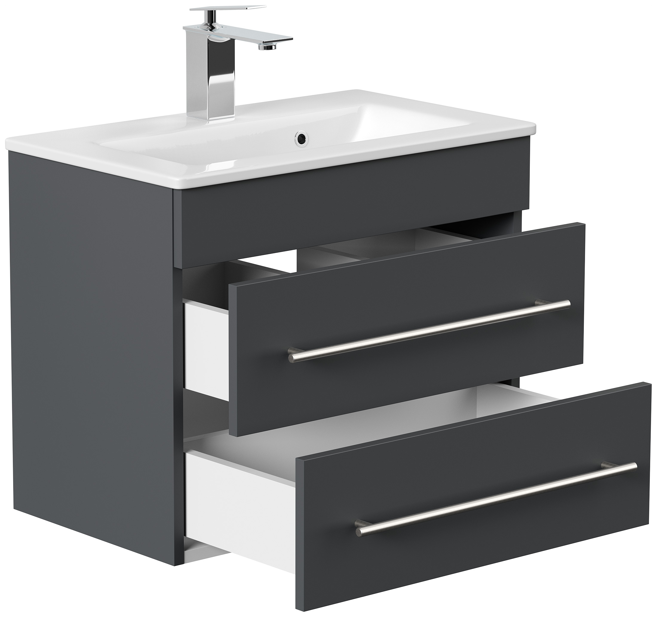 Badmöbel Mars 600 SlimLine 60x36cm mit 2 SoftClose Schubladen grafit