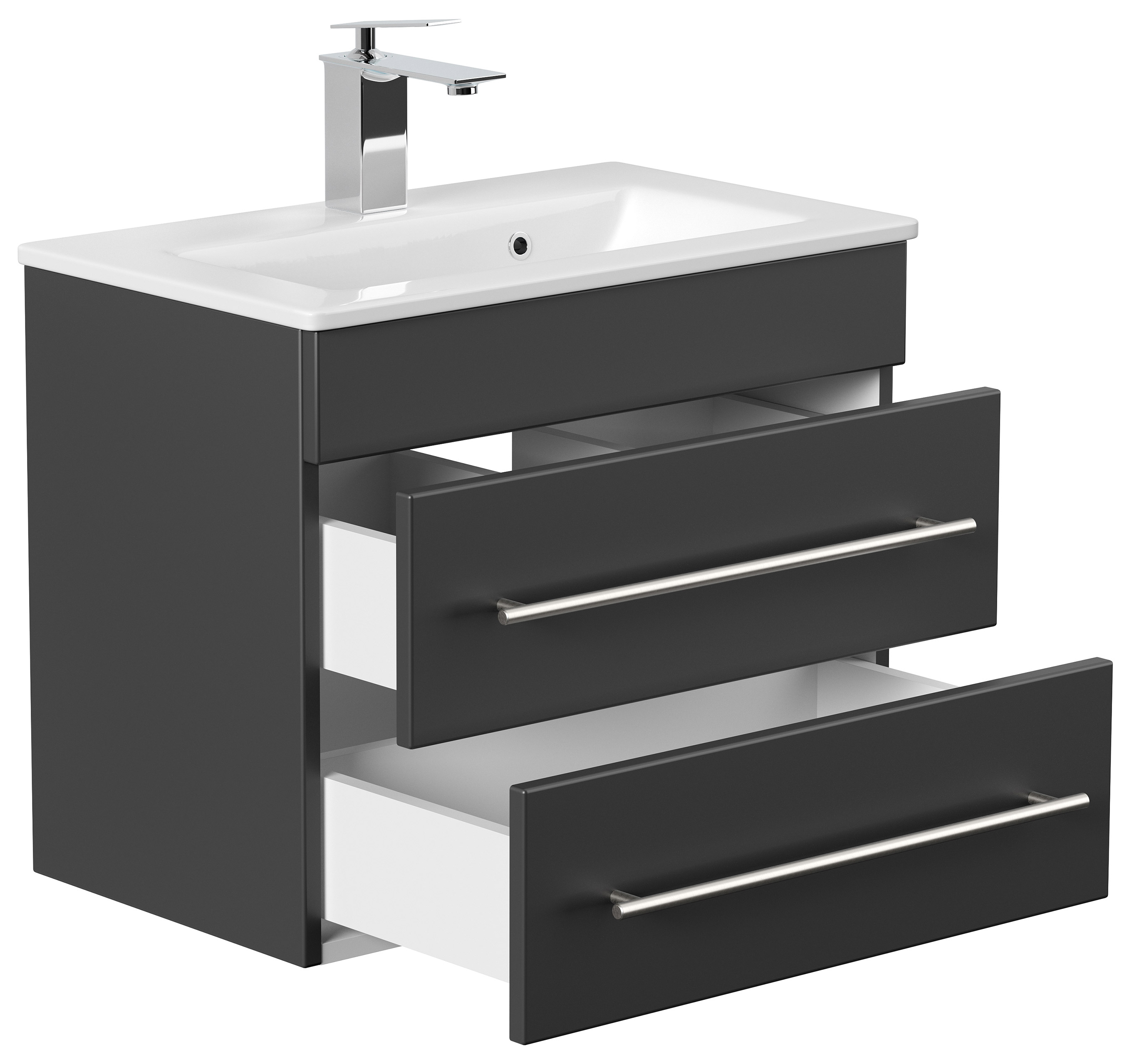 Badmöbel Mars 600 SlimLine 60x36cm mit 2 SoftClose Schubladen schwarz