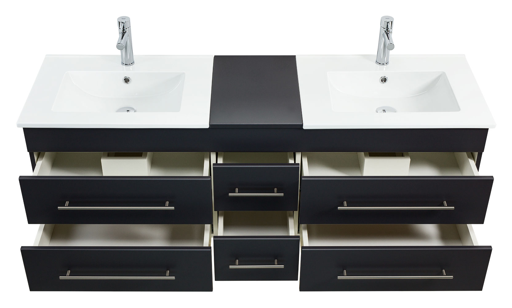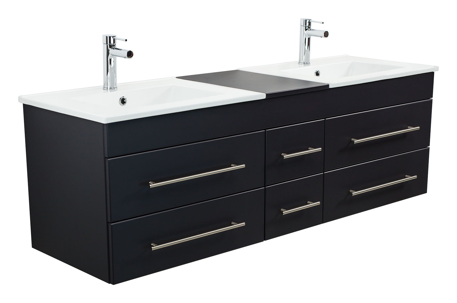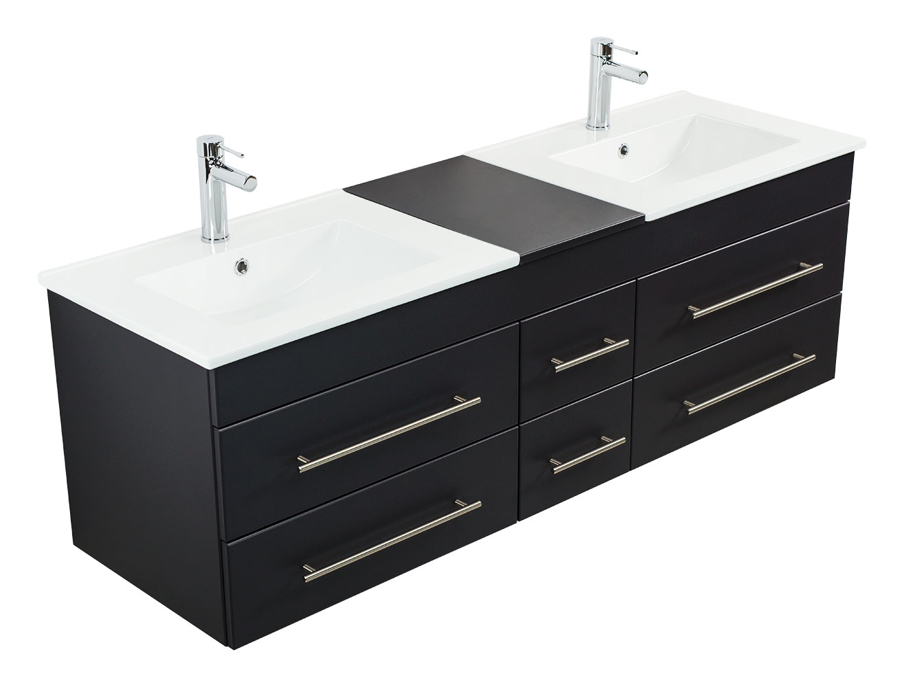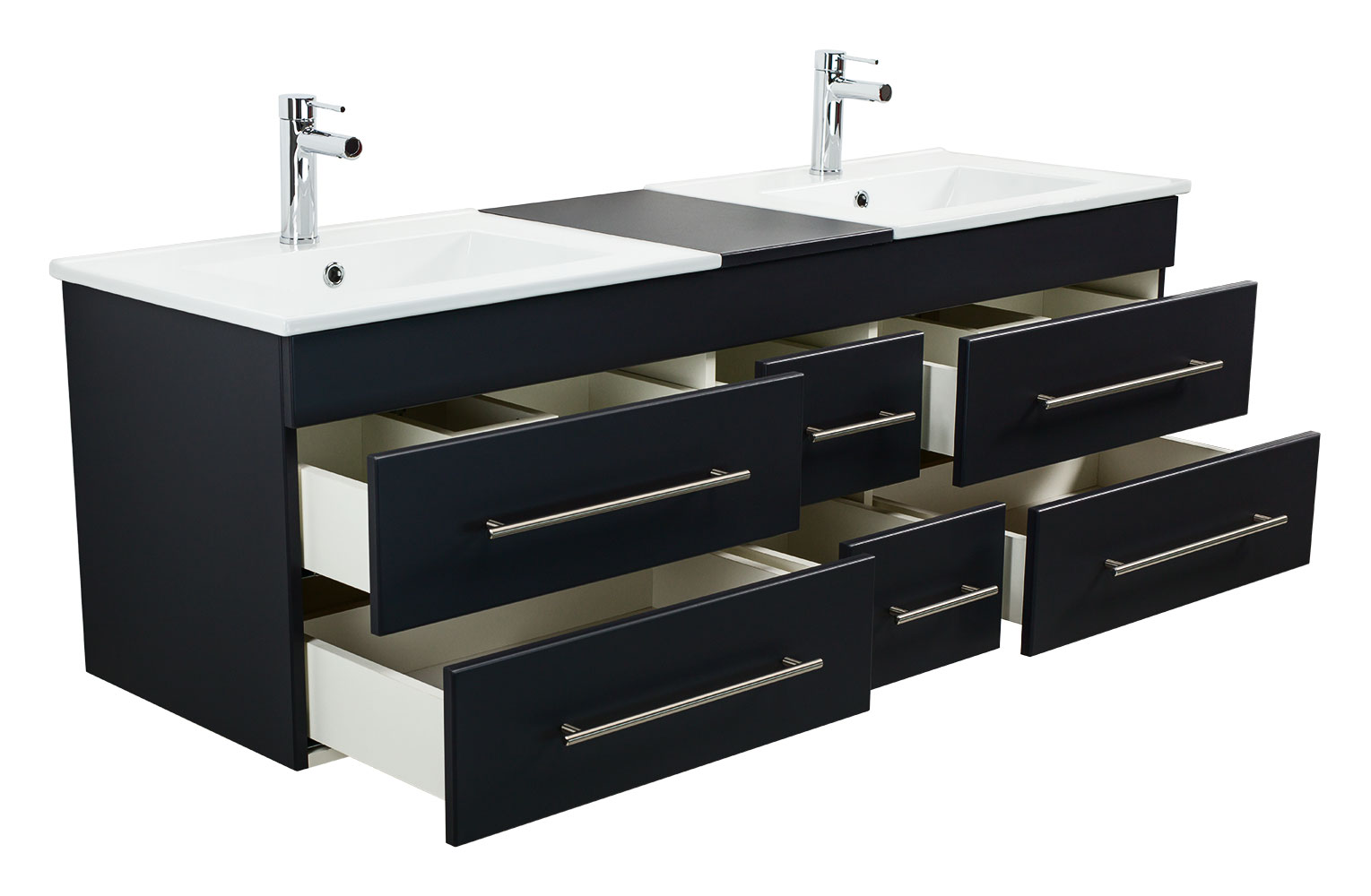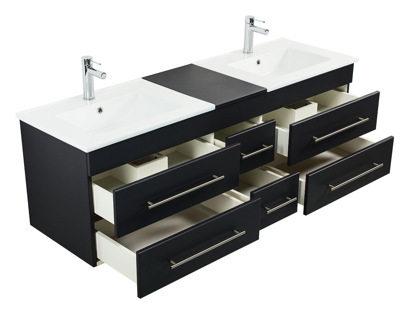 Badmöbel Milano XL 172cm Doppel- Waschtisch SoftClose schwarz