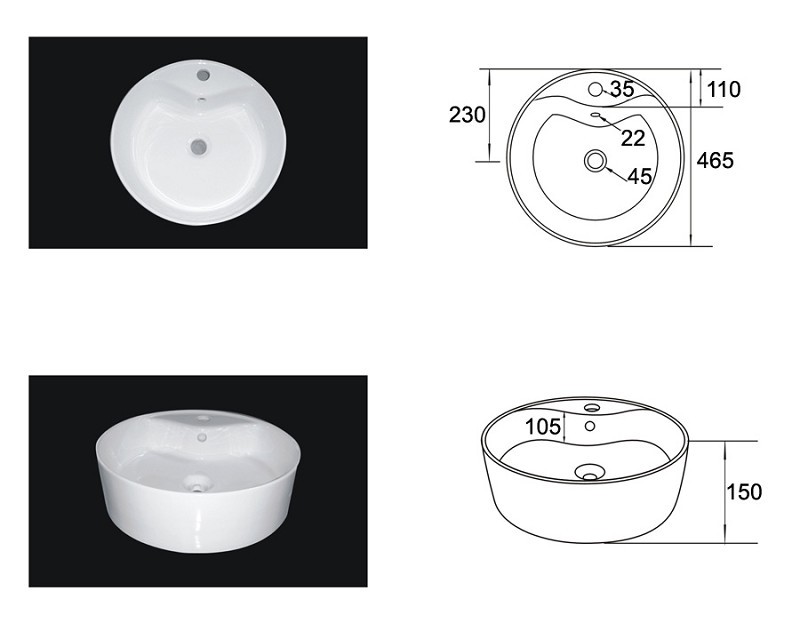 Durchmesser Waschbecken: 45 cm.