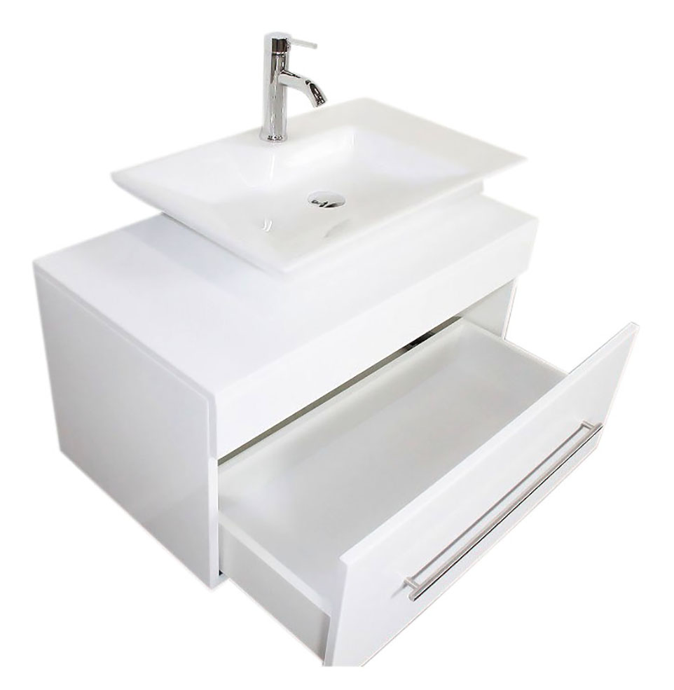 Badmöbel Pegasus 80cm weiss hochglanz mit Aufsatzwaschbecken