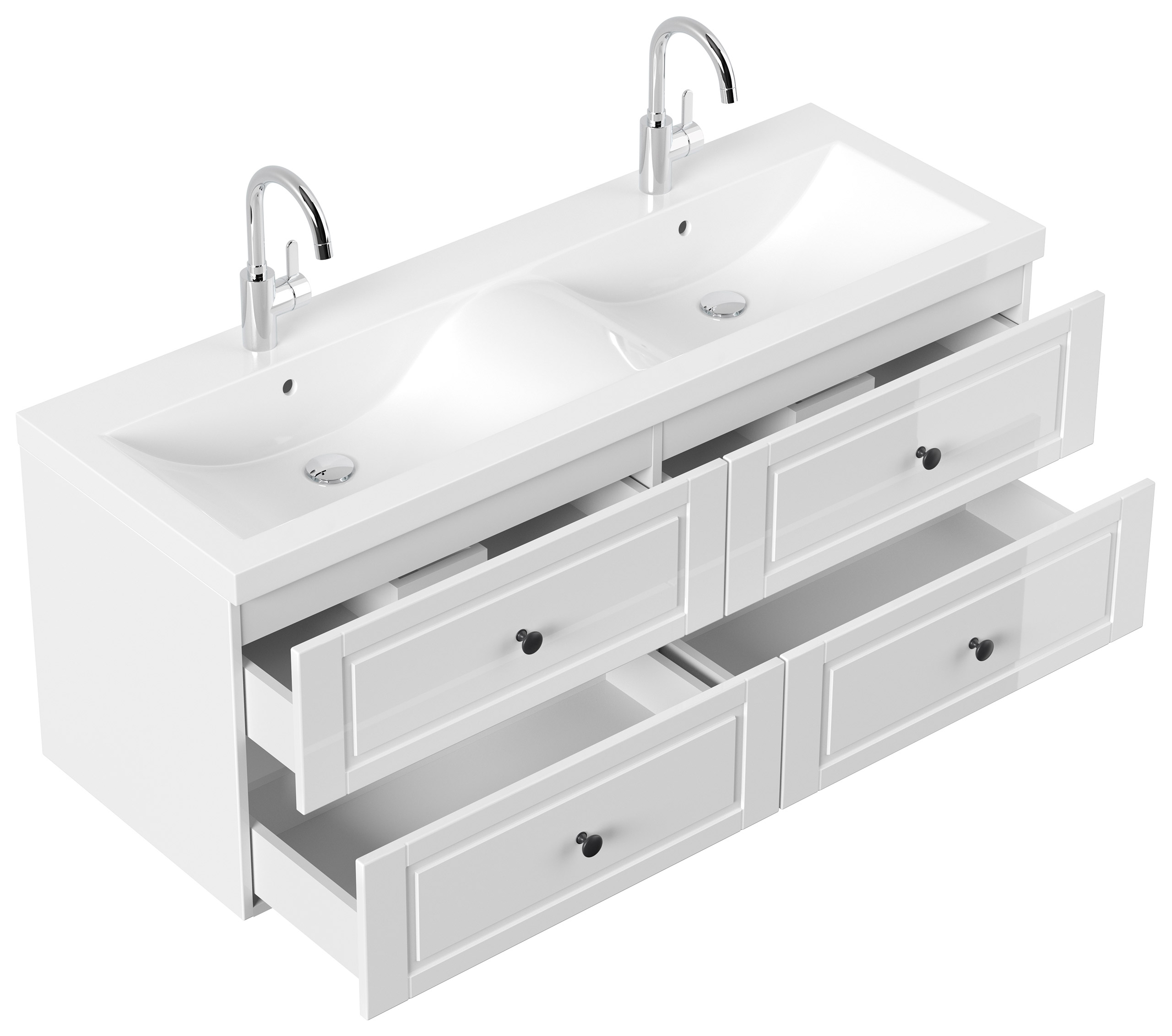 Badmöbel Persepolis XL Cottage Doppel-Waschbecken SoftClose weiss hochglanz