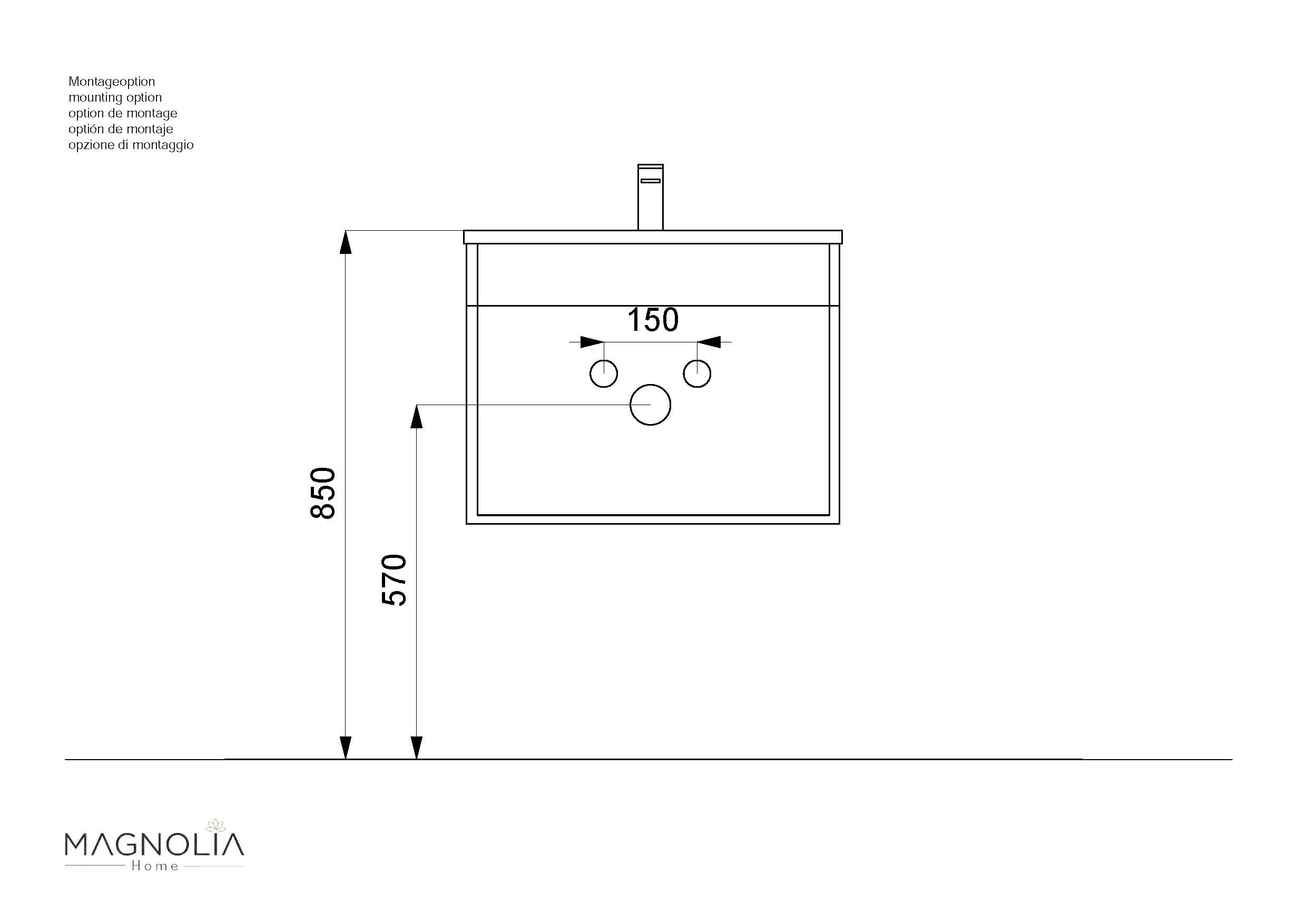 Höhe des Waschbeckenschranks inkl. Waschbecken 49,7 cm,
