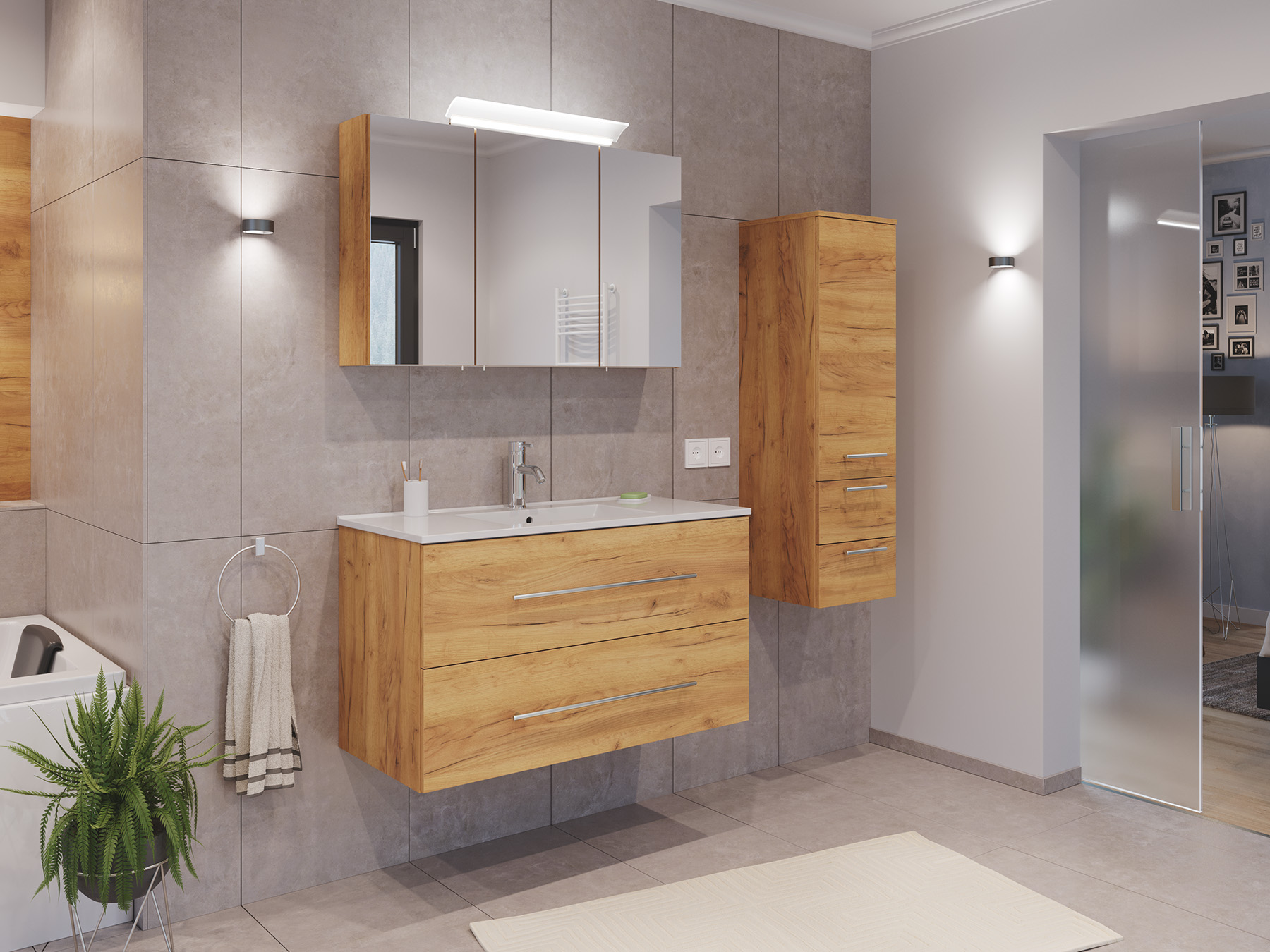 Badmöbel Set Firenze 100 3tlg. Spiegelschrank & Seitenschrank eiche gold