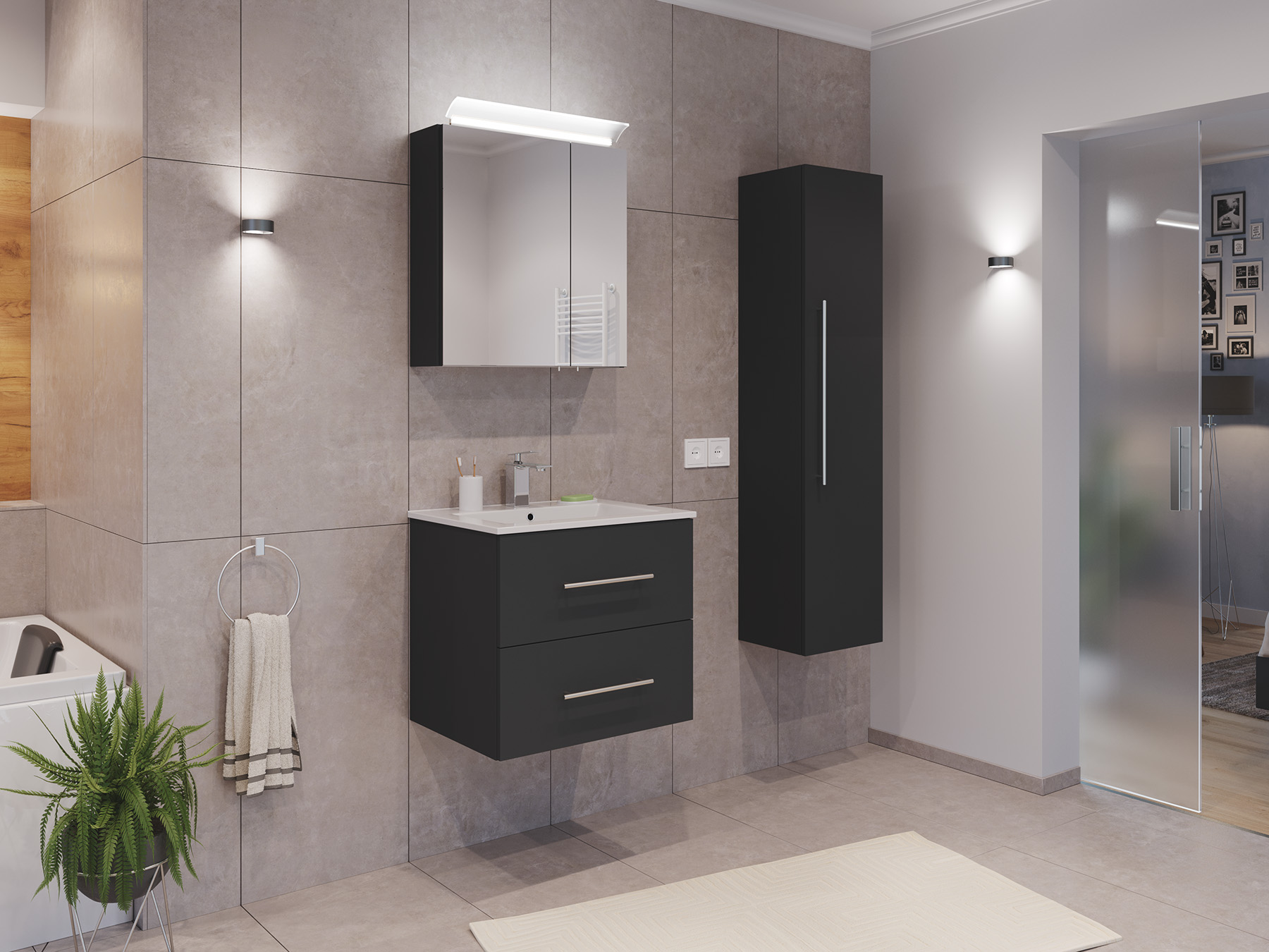 Badmöbel Set Firenze 60 3tlg. Spiegelschrank & Hochschrank grafit