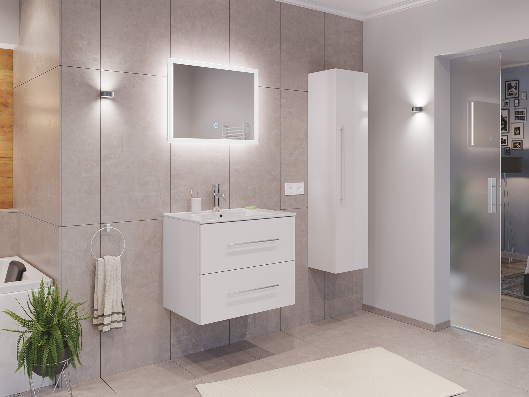 Badmöbel Set Firenze 70 3tlg. LED Spiegel und Hochschrank weiß hochglanz