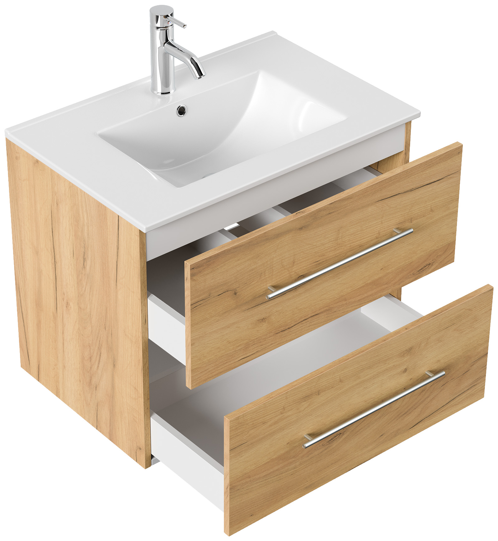 | Lieferumfang | Waschtischunterschrank, Spiegelschrank, Seitenschrank, Waschbecken, Montageanleitung |