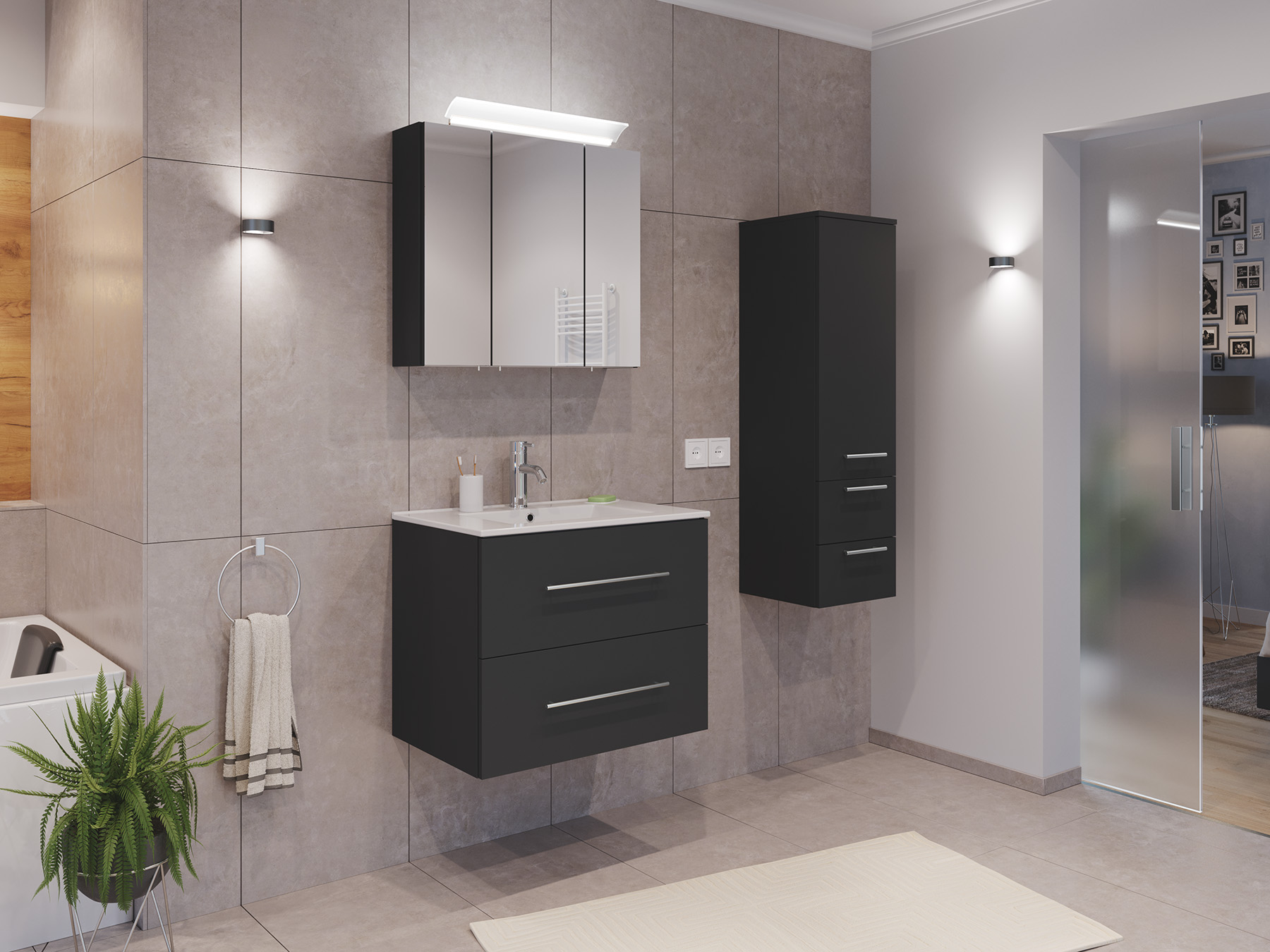 Badmöbel Set Firenze 70 3tlg. Spiegelschrank & Seitenschrank grafit