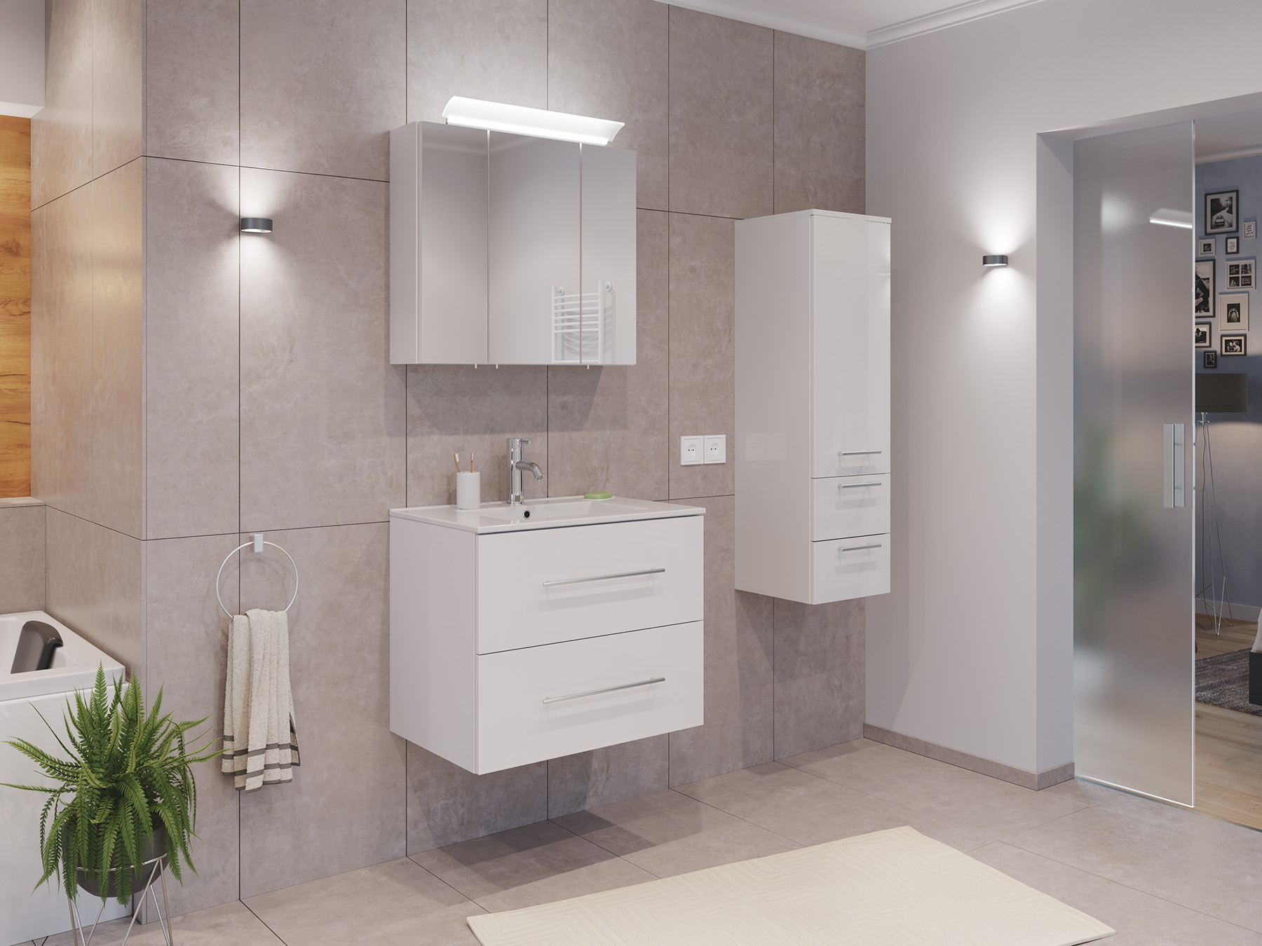 Badmöbel Set Firenze 70 3tlg. Spiegelschrank & Seitenschrank weiß hochglanz