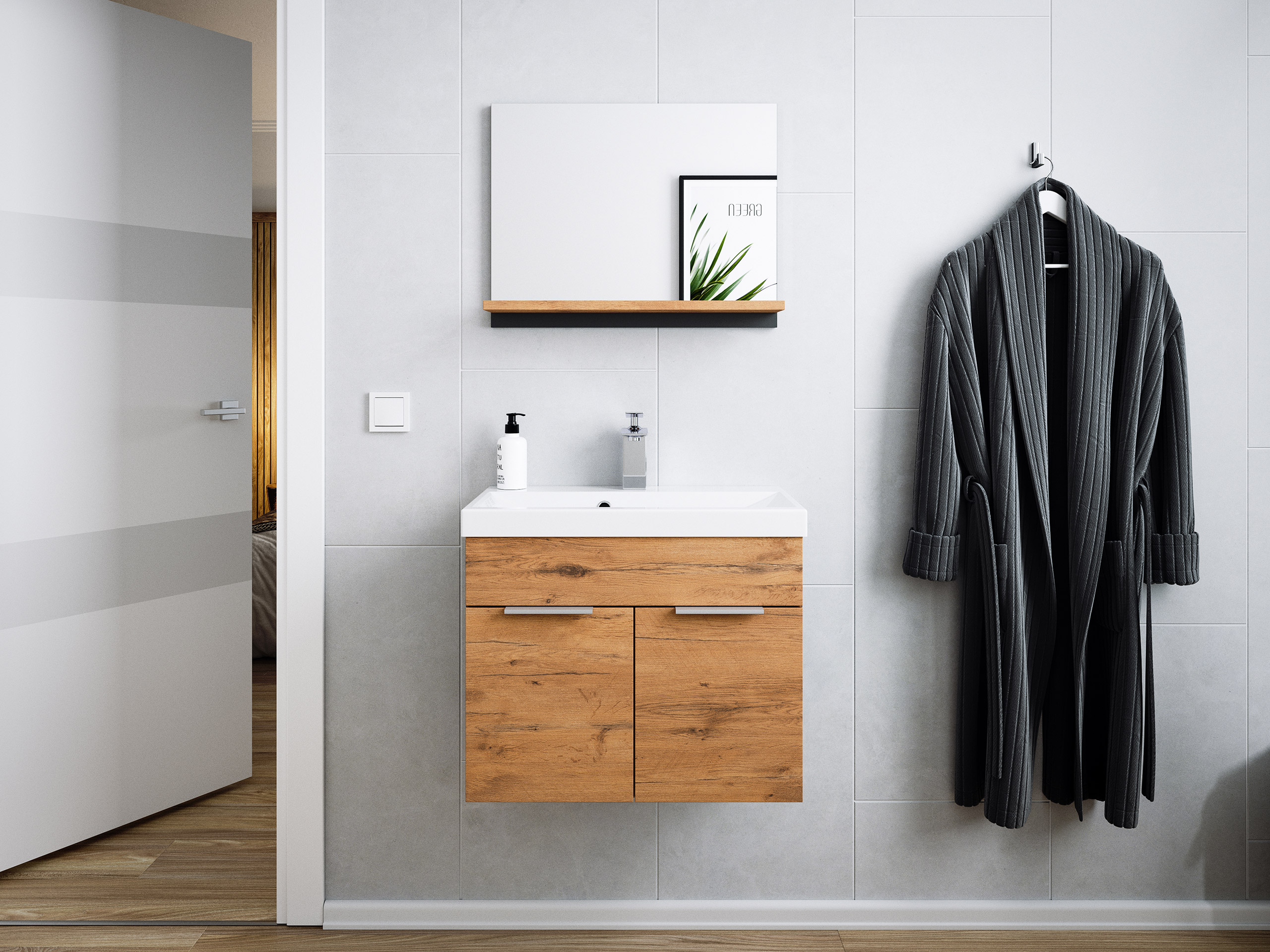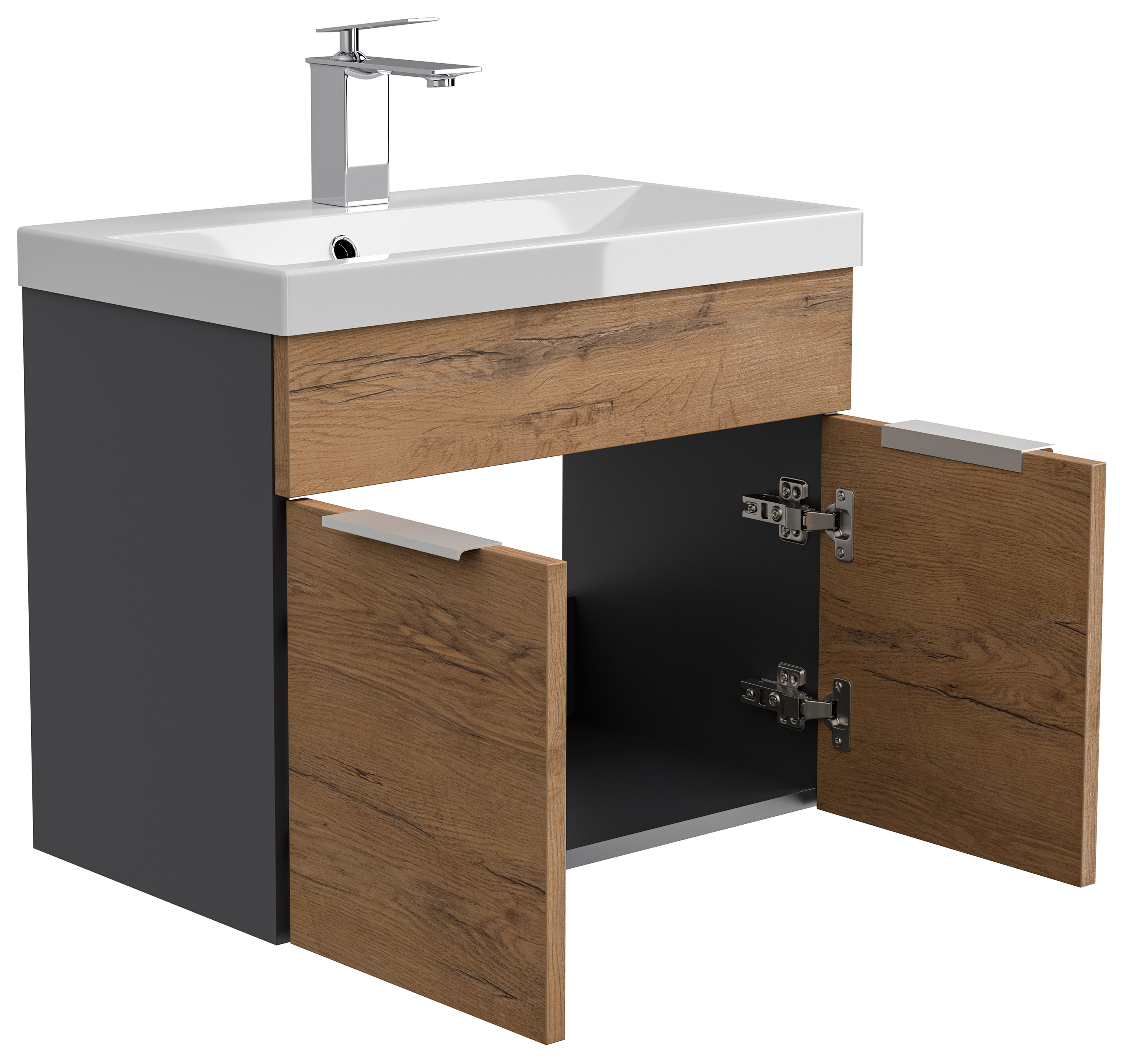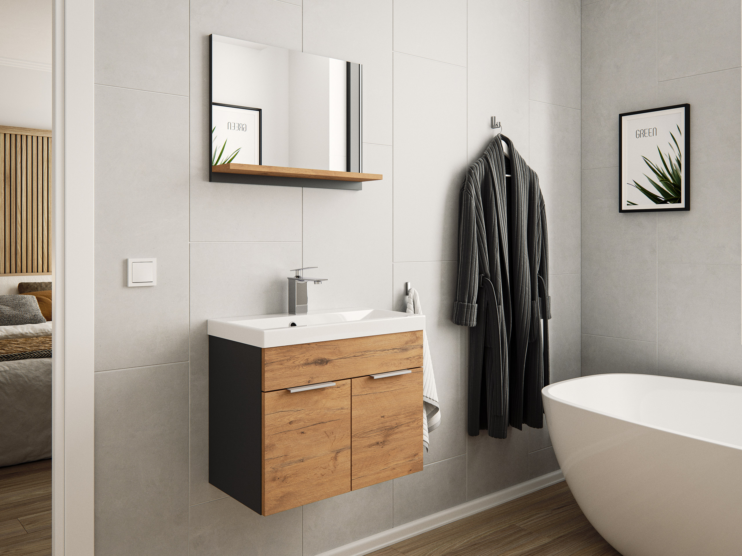 Badmöbel-Set Slimline Vega 2tlg mit Spiegel SoftClose Oak / grafit matt