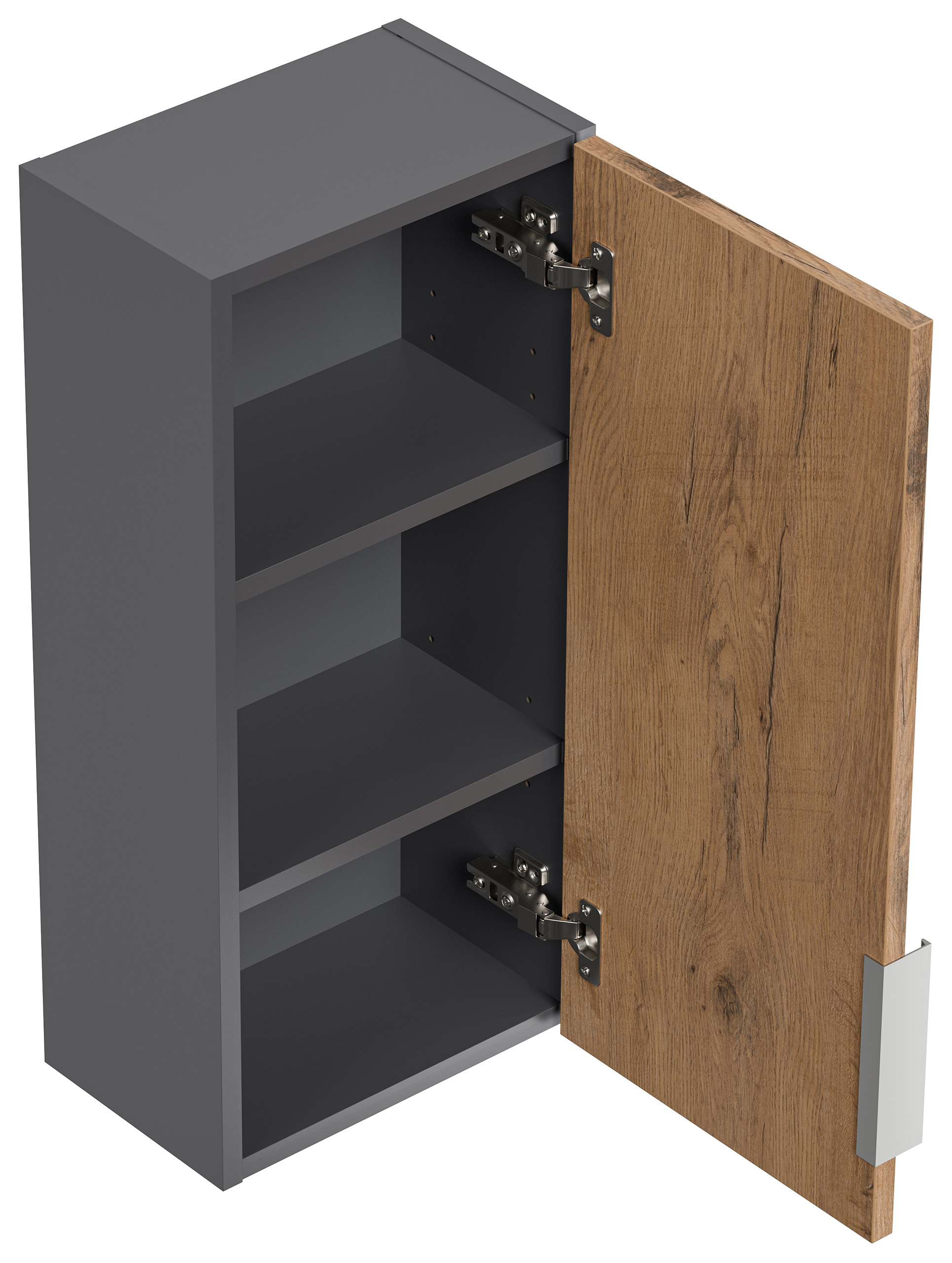 Badmöbel-Set Slimline Vega 4tlg mit Spiegel & Midischränke Oak/ grafit matt