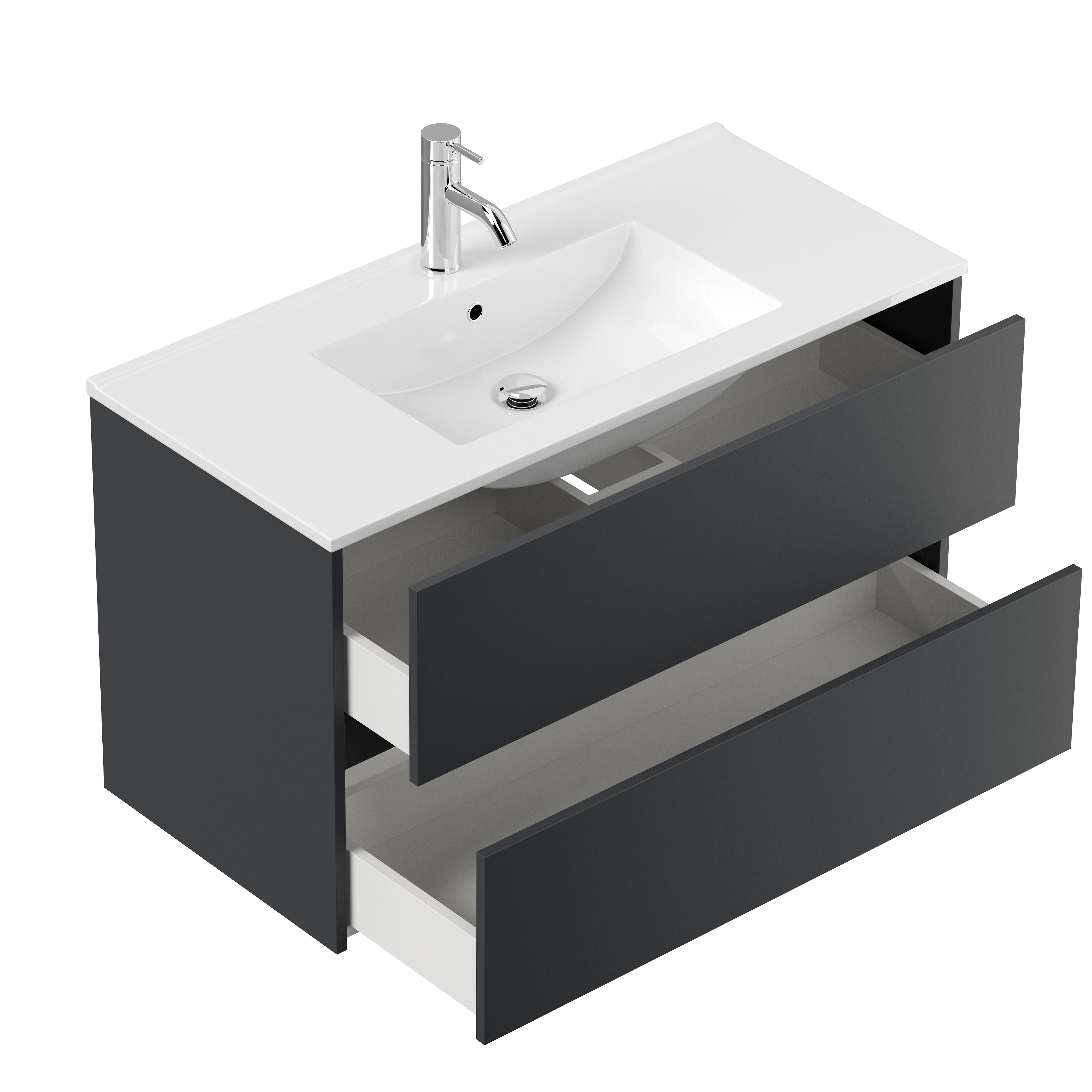 Badmöbel Set Taifun 3tlg. 100 cm mit Spiegelschrank & 3er Boxen Grafit