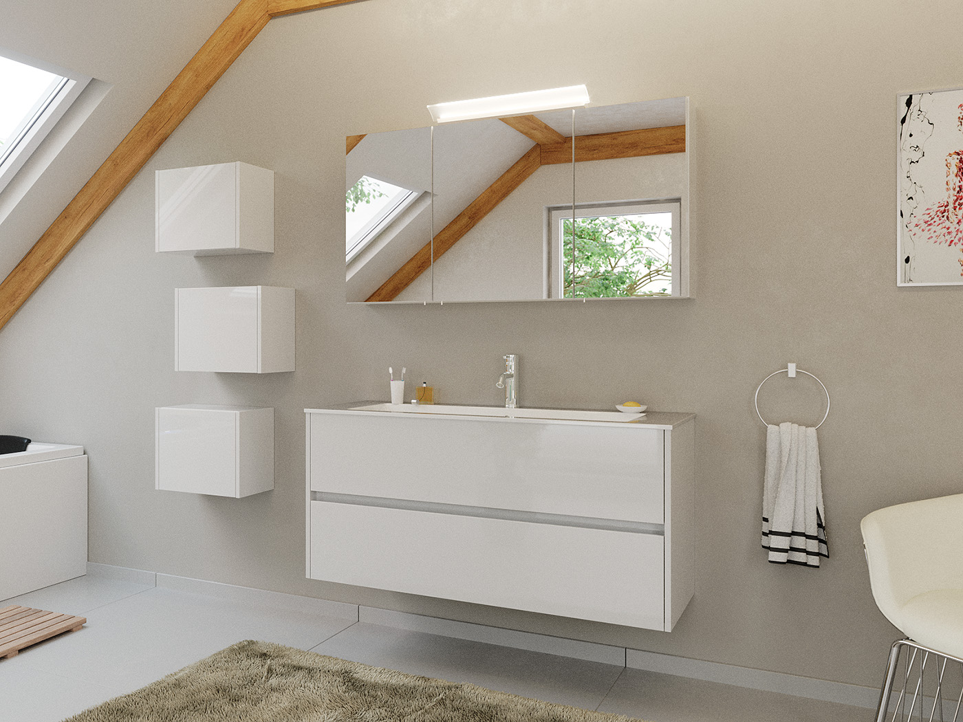 Badmöbel Set Taifun 3tlg. 120 cm mit Spiegelschrank & 3er Boxen weiß Hgl