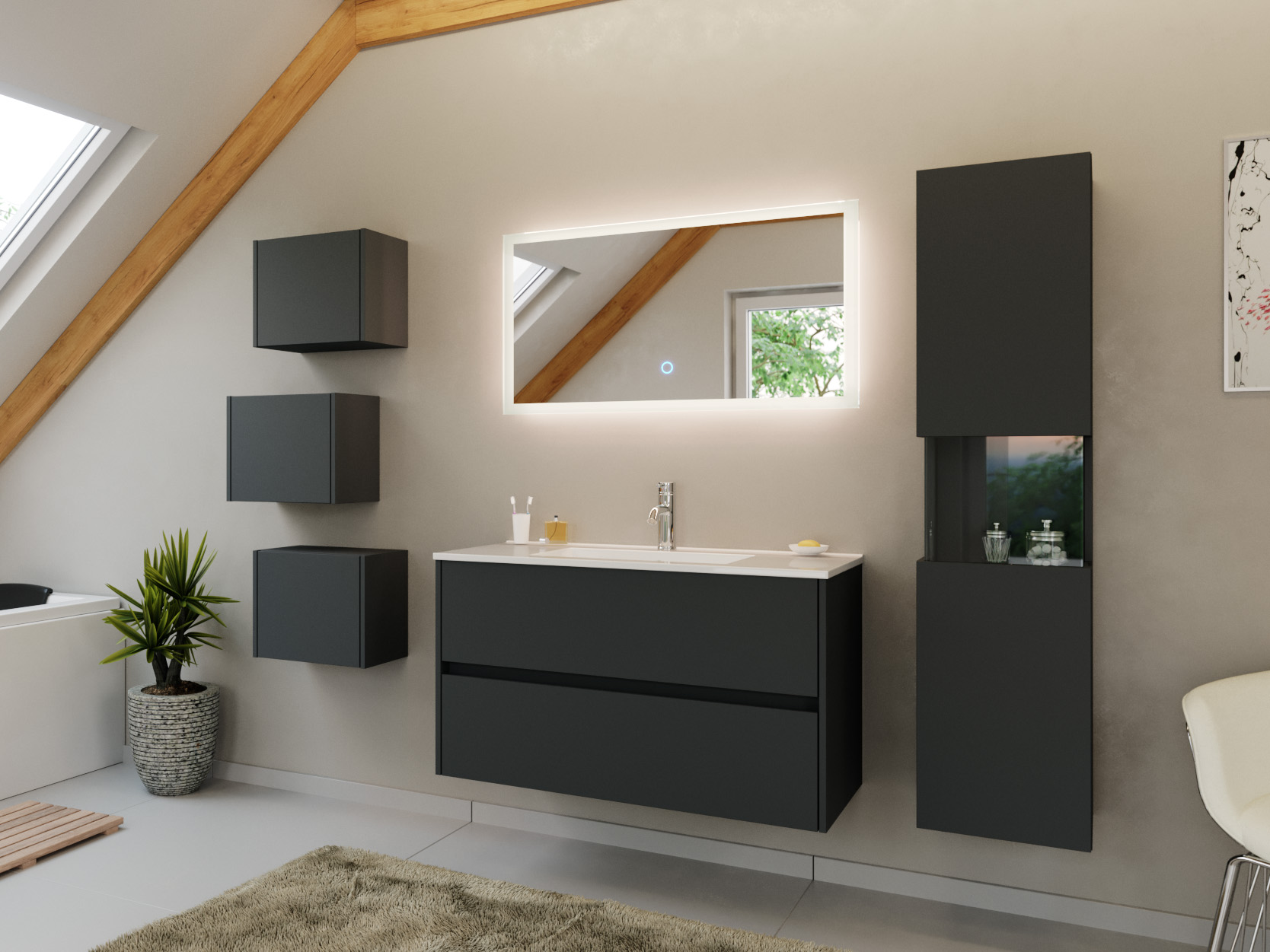Badmöbel Set Taifun 4tlg. 100 cm mit LED Spiegel, 3er Boxen & Hochschrank Grafit
