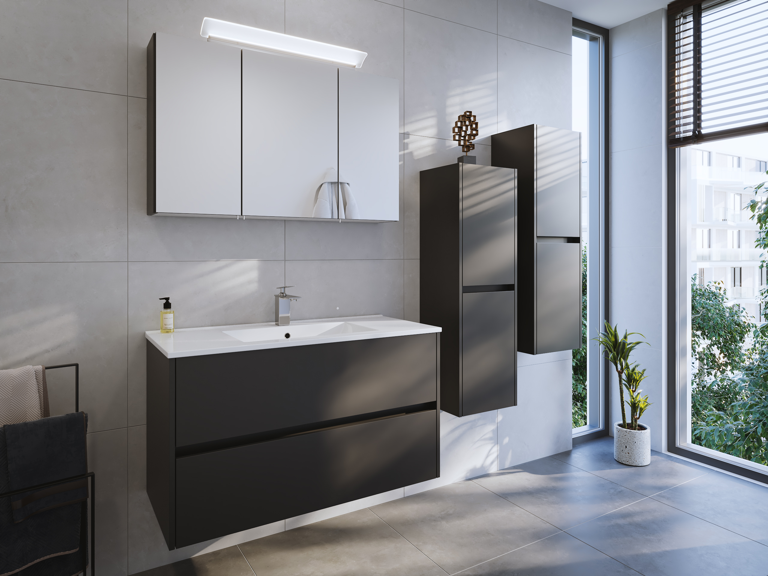 Badmöbel Set Taifun 4tlg. 100 cm mit Spiegelschrank & 2x Seitenschrank Grafit