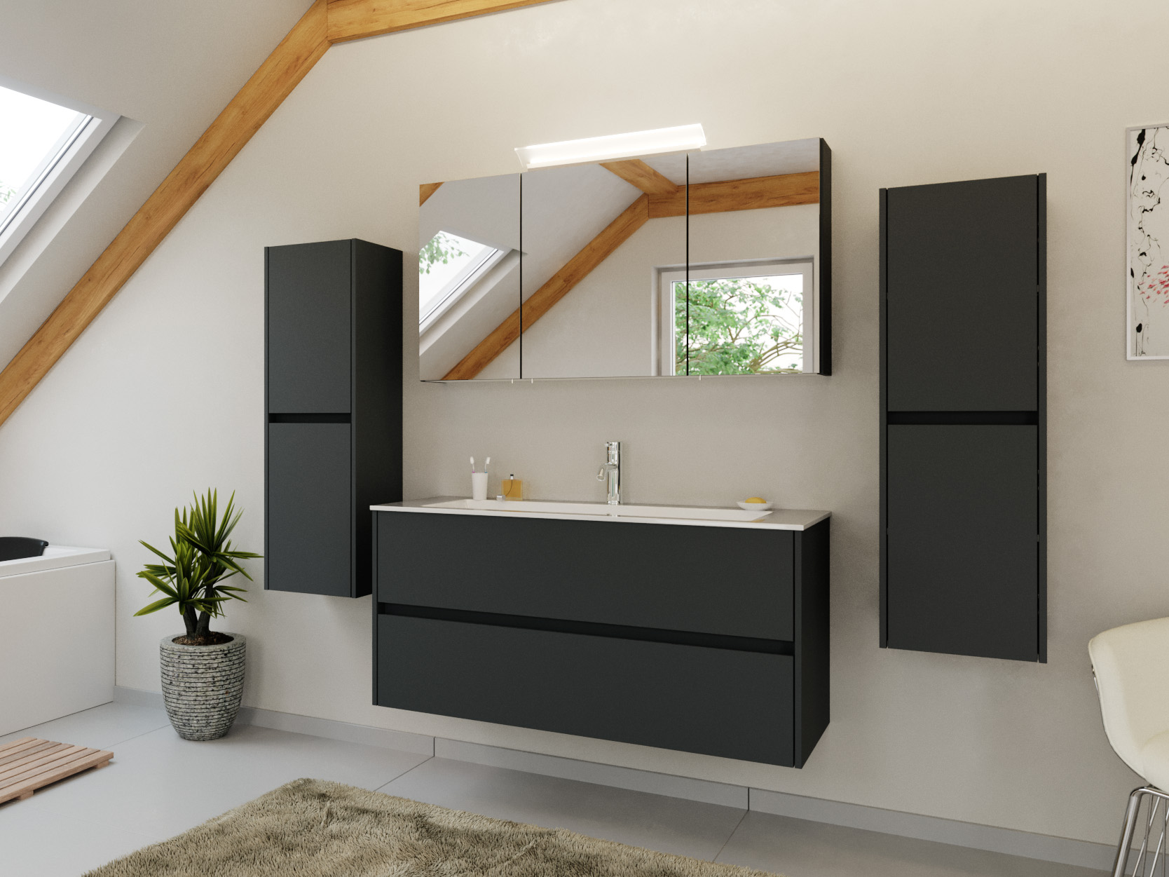 Badmöbel Set Taifun 4tlg. 120 cm mit Spiegelschrank & 2x Seitenschrank Grafit